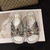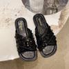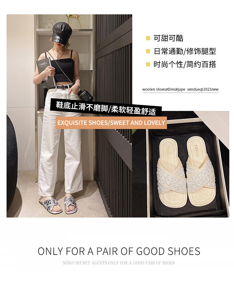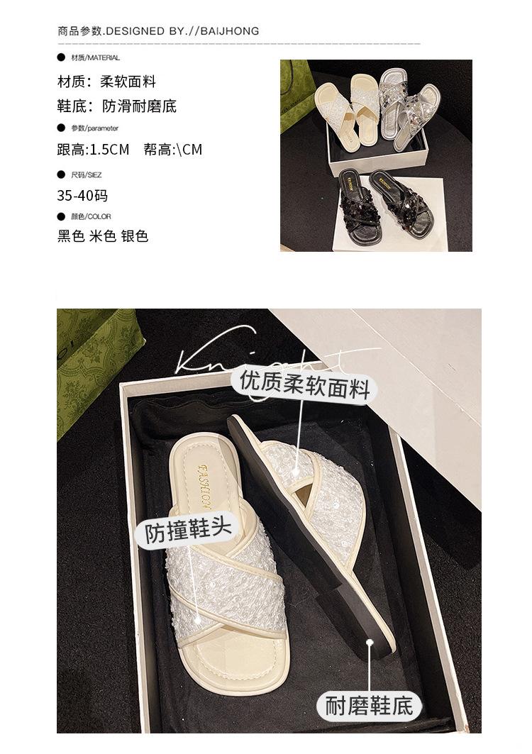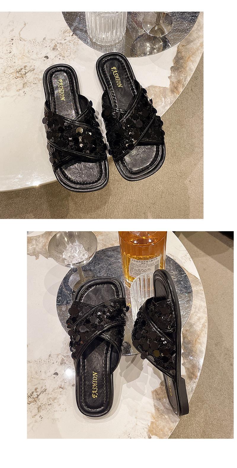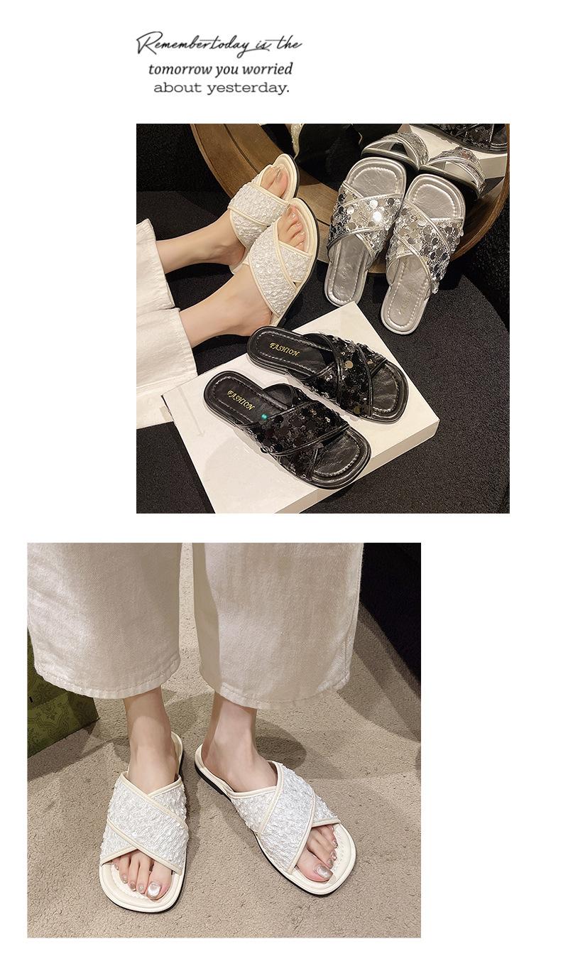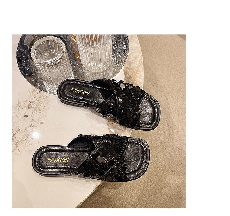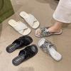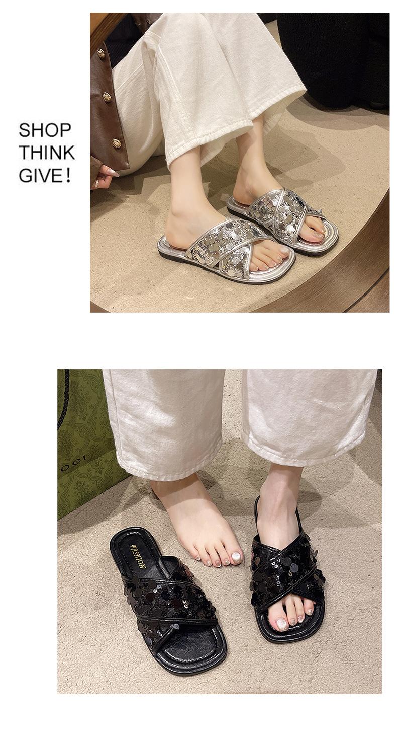 Hermosas Sandalias Planas con Lentejuelas para Verano para Mujer 2025 Nuevo Estilo con Falda, Zapatillas de Playa Modernas y Súper Populares