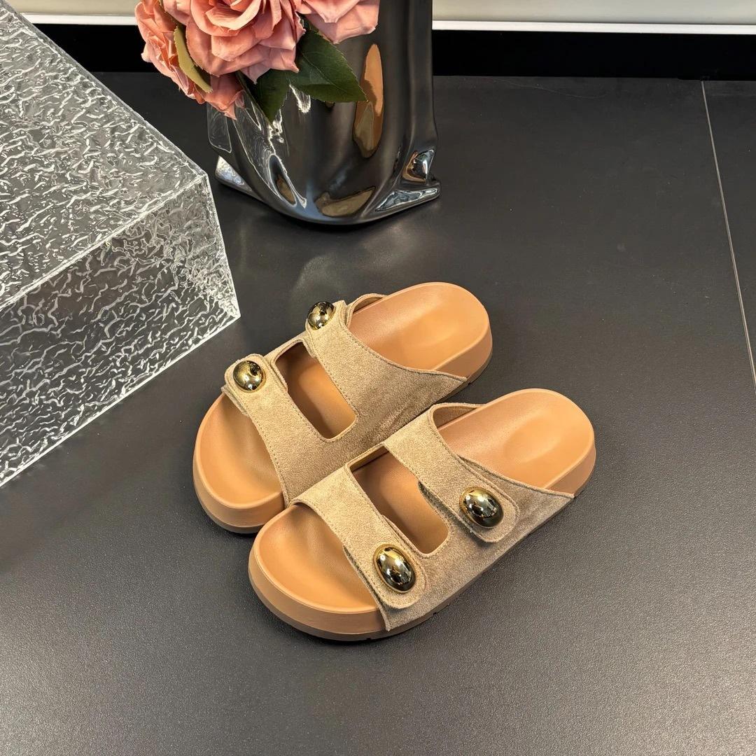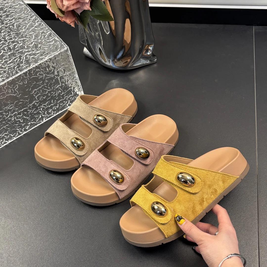 Sandalias Retro de Una Línea para Ropa Exterior de Mujer 2025 Nuevo Verano Altas de Suela Gruesa Zapatillas Boken Zapatos de Playa