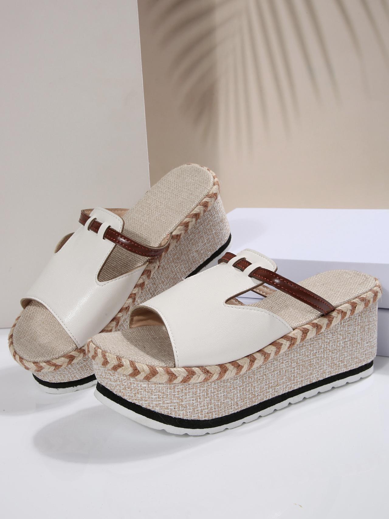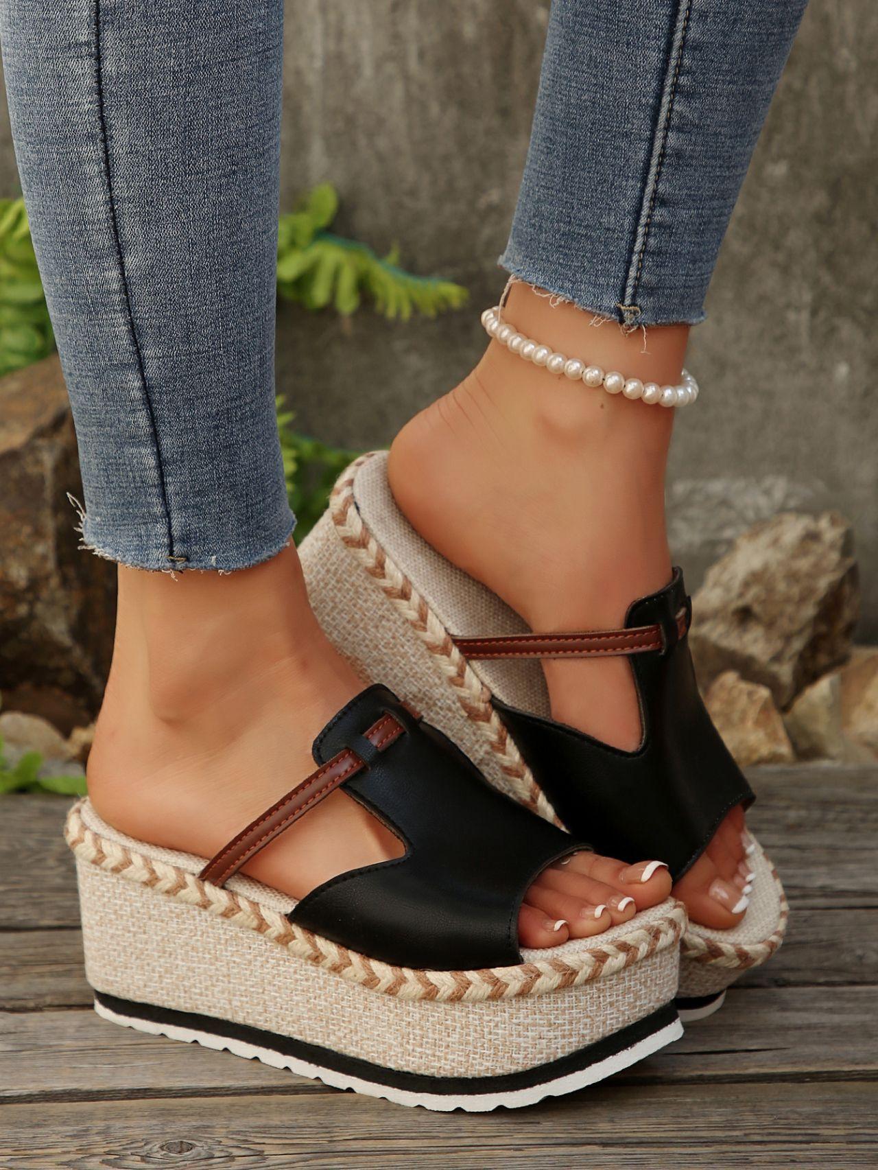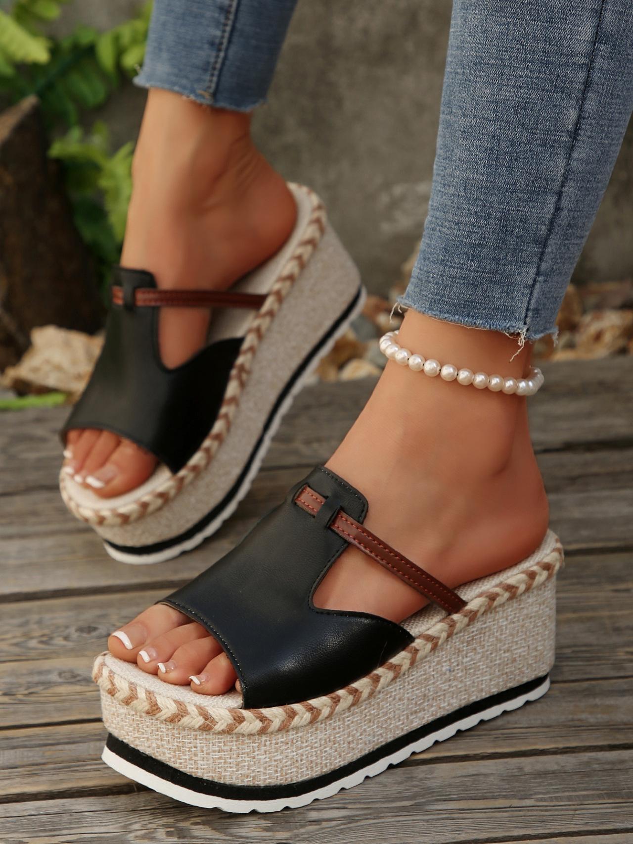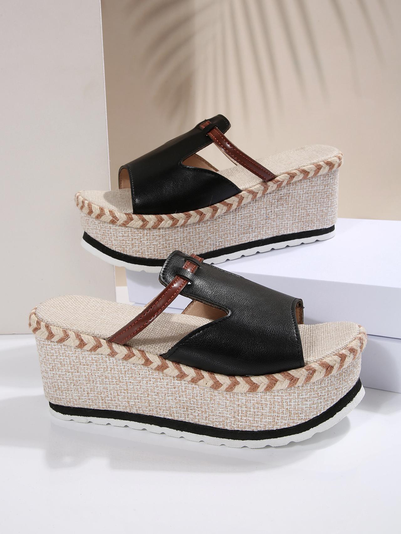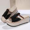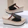 Sandalias y pantuflas tejidas europeas y americanas de plataforma cruzada para mujer pequeña verano 2025