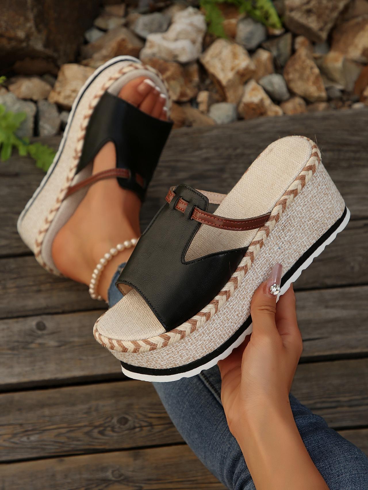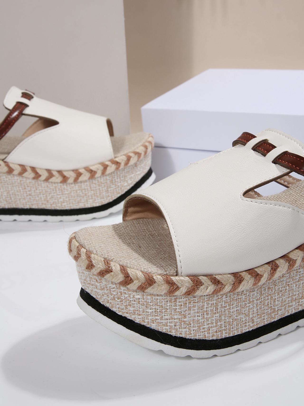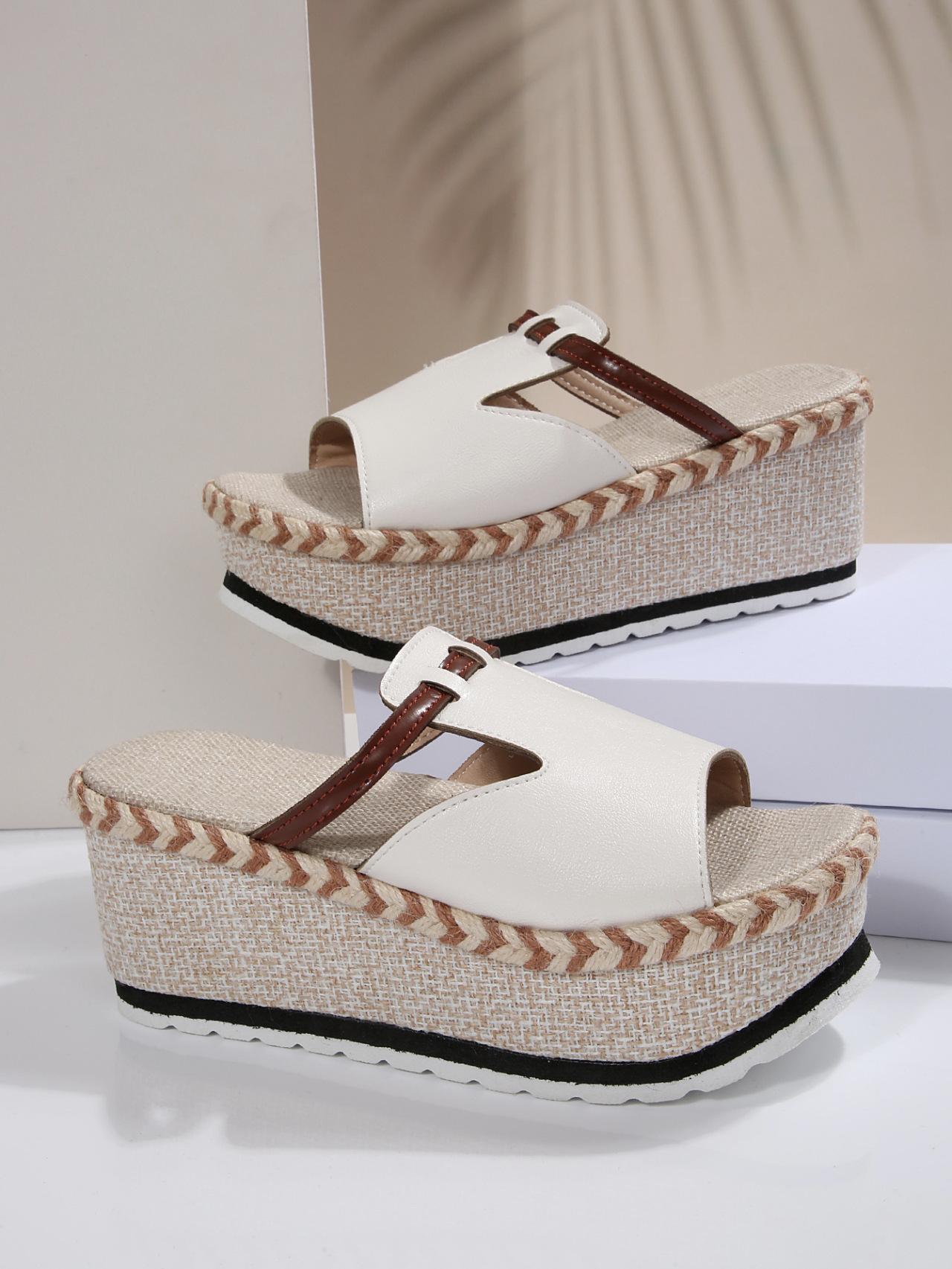 Sandalias y pantuflas tejidas europeas y americanas de plataforma cruzada para mujer pequeña verano 2025