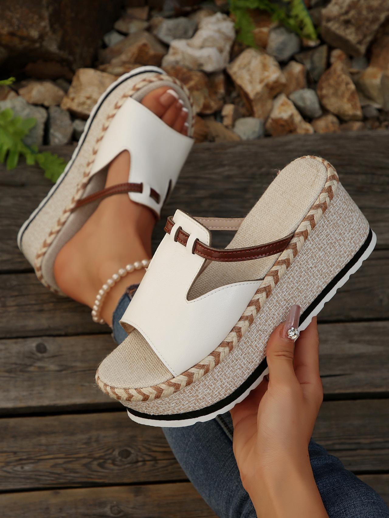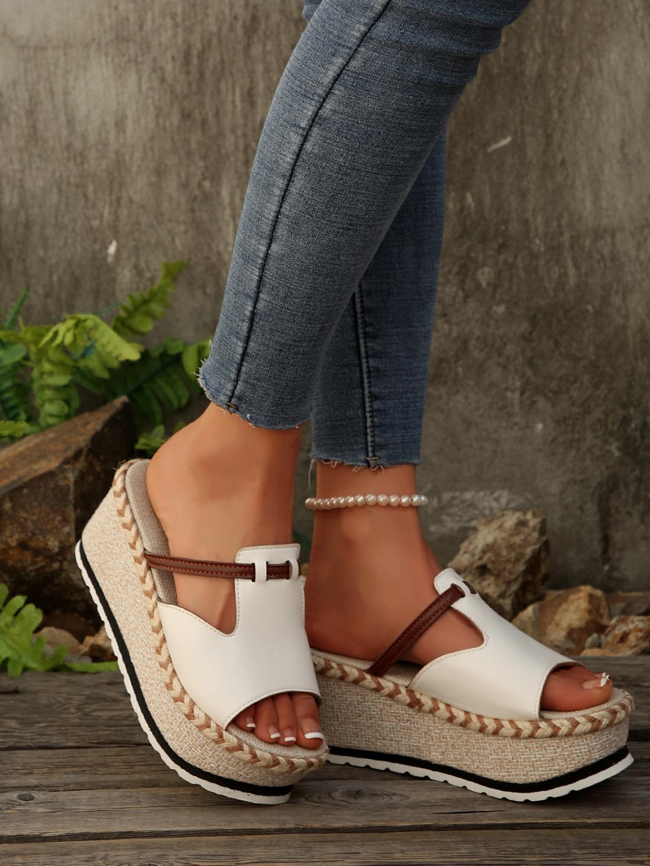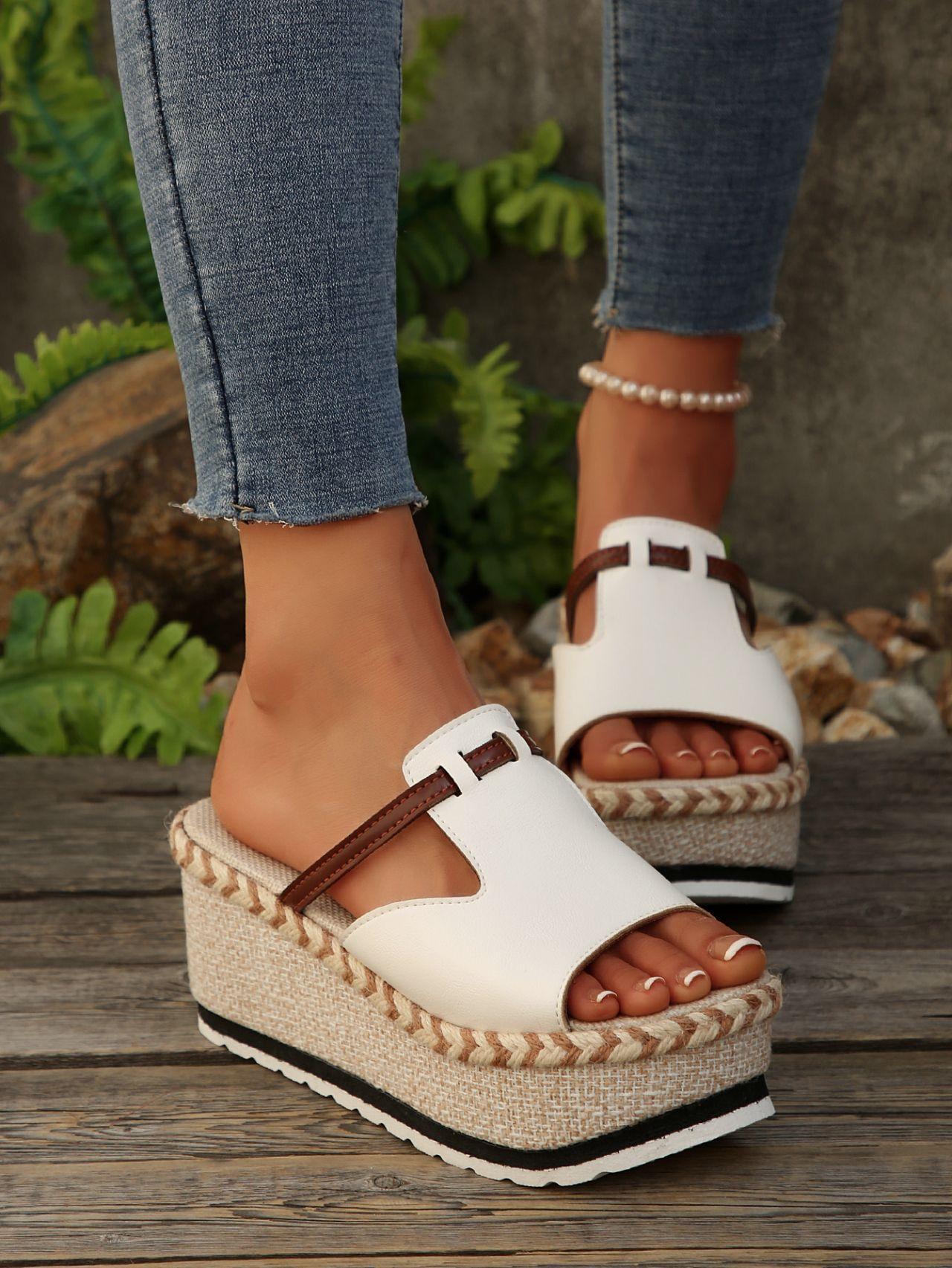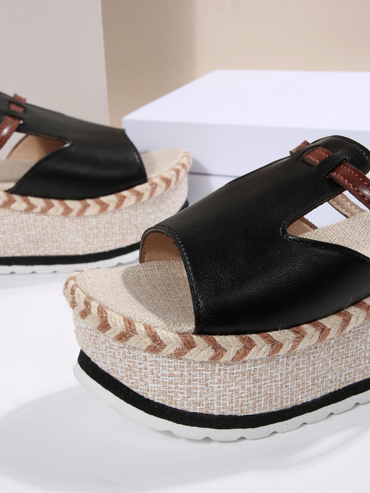 Sandalias y pantuflas tejidas europeas y americanas de plataforma cruzada para mujer pequeña verano 2025