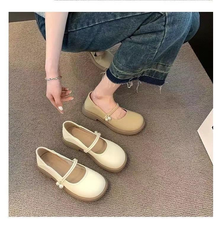 Zapatos Mary Jane de Tacón Bajo, Mocasines Cómodos, Zapatos de Boca Baja para Mujer, Zapatos Pequeños de Cuero Versátiles Nuevos de Verano 2024