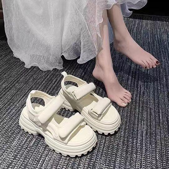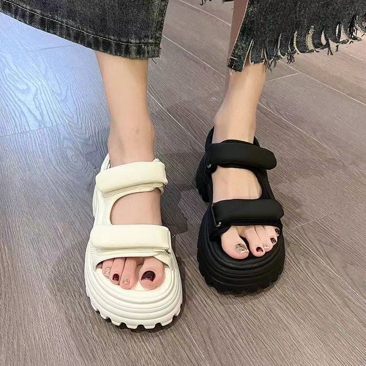 Sandalias de Moda para Mujer 2024 Nuevas de Verano Suela Suave Aumento de Altura Versátiles Plataforma Velcro Casual Zapatos de Playa