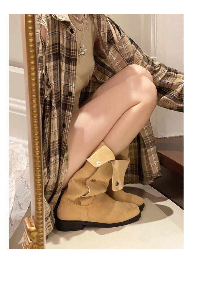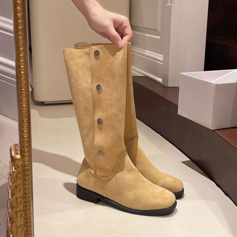 Botas Temperamento Botas Slim 2025 Otoño e Invierno Nuevo Tacón Grueso Color Puro Slip-On Botas Antideslizantes Ropa Exterior No Más Que Botas Hasta la Rodilla