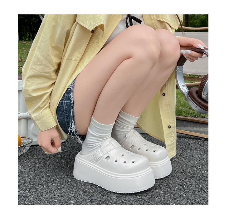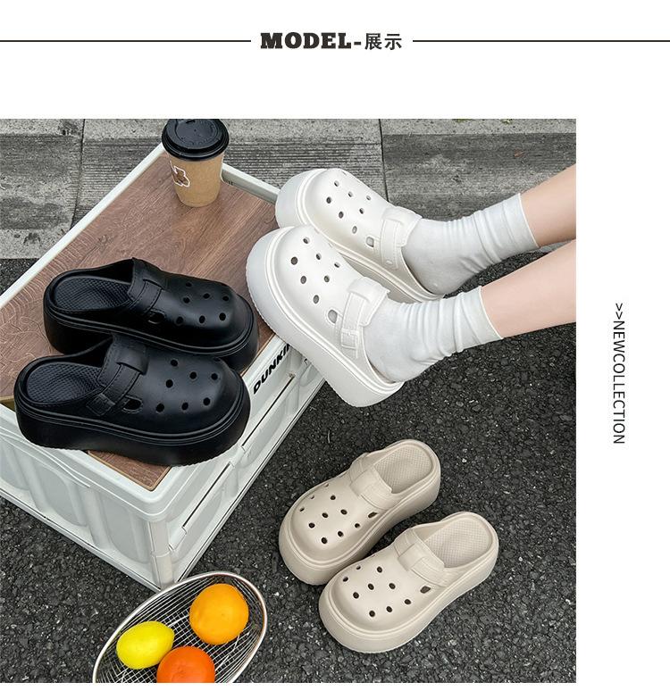 Zapatos Croc de Suela Gruesa para Mujer 2025 Nuevo Verano Eva Antideslizantes Tacón Altura Sandalias de Playa Pantuflas Ropa Exterior de Verano para Mujer