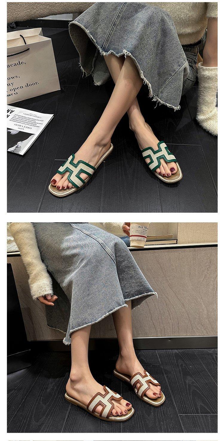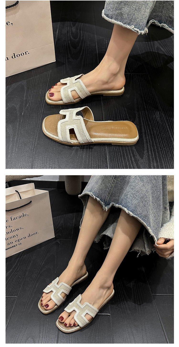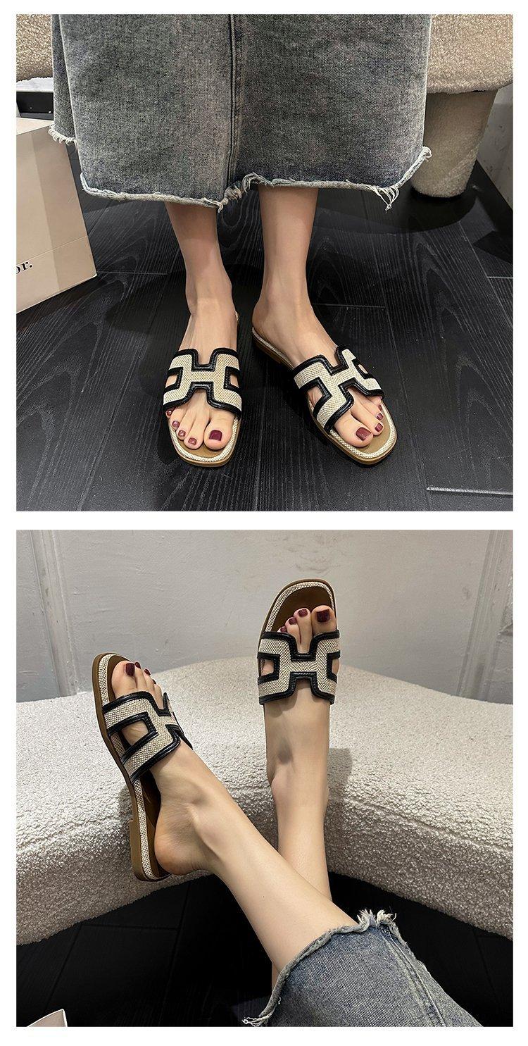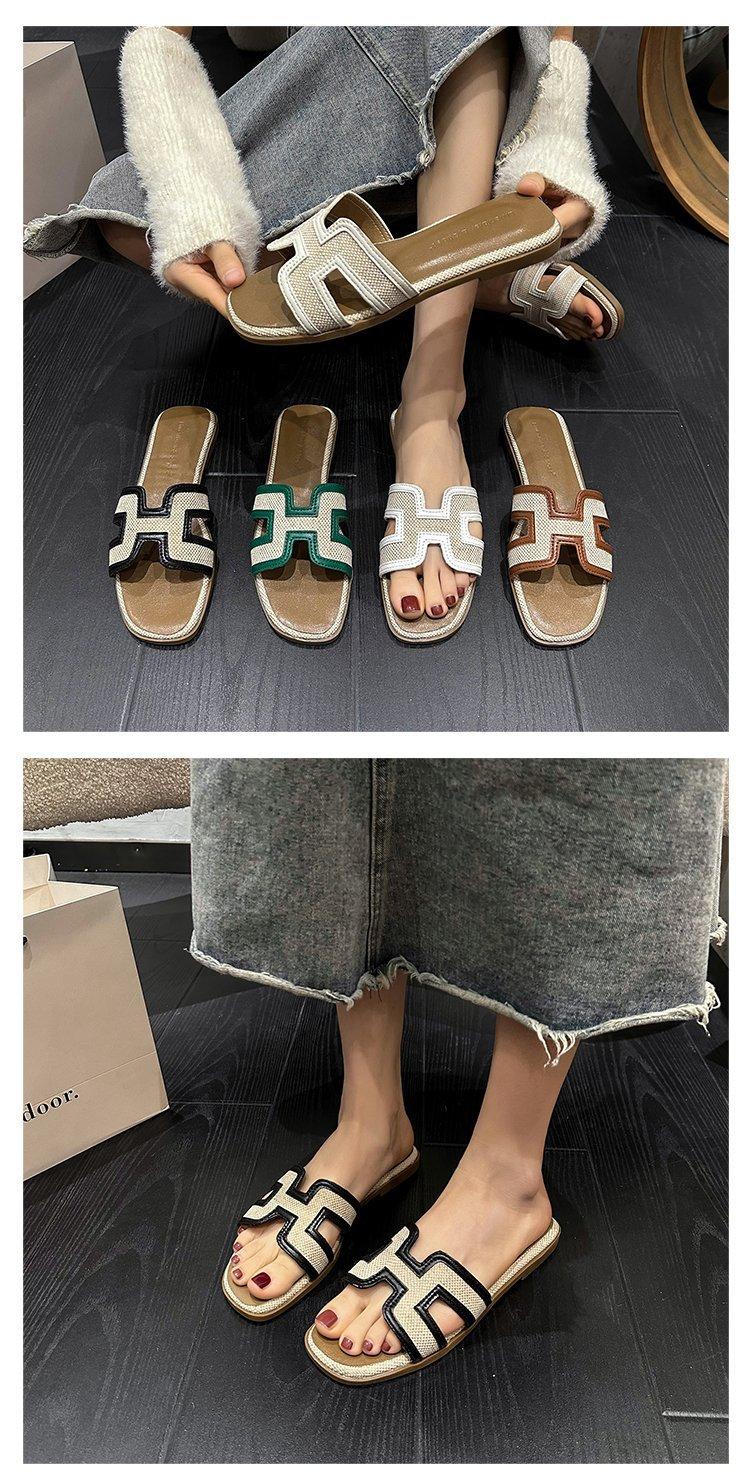 H Pantuflas para Ropa Exterior de Mujer 2025 Verano Nuevo Estilo Coreano Suela Plana Versátiles Zapatos de Playa Sandalias