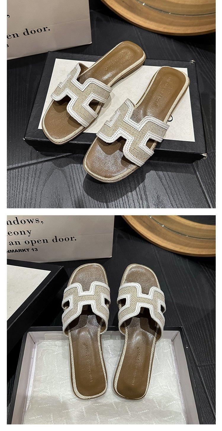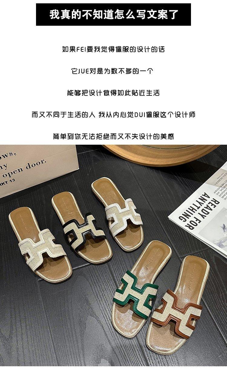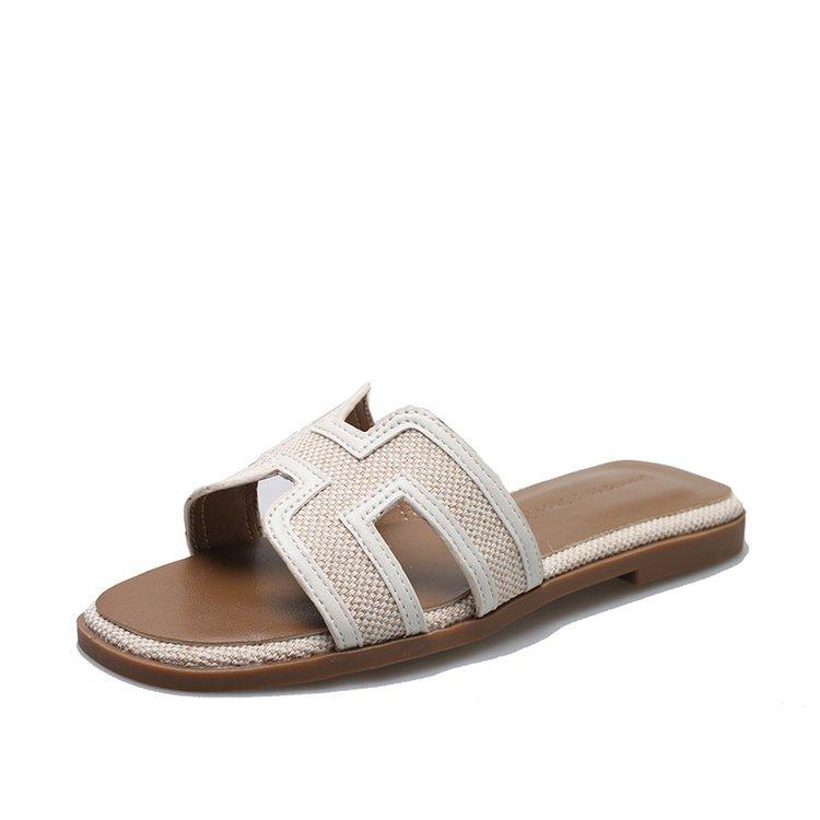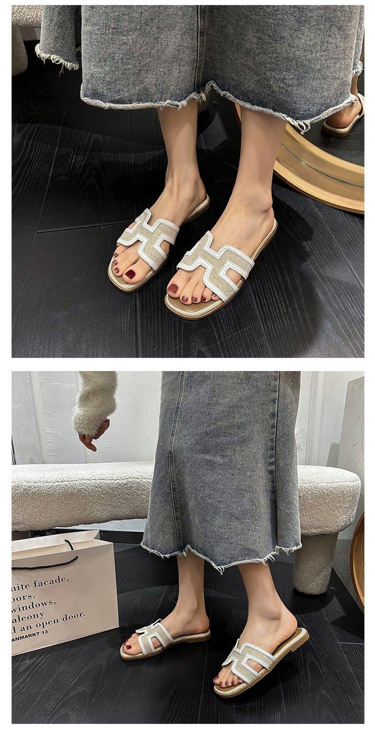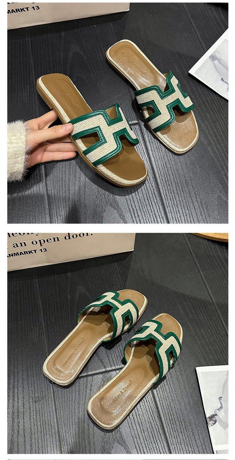 H Pantuflas para Ropa Exterior de Mujer 2025 Verano Nuevo Estilo Coreano Suela Plana Versátiles Zapatos de Playa Sandalias