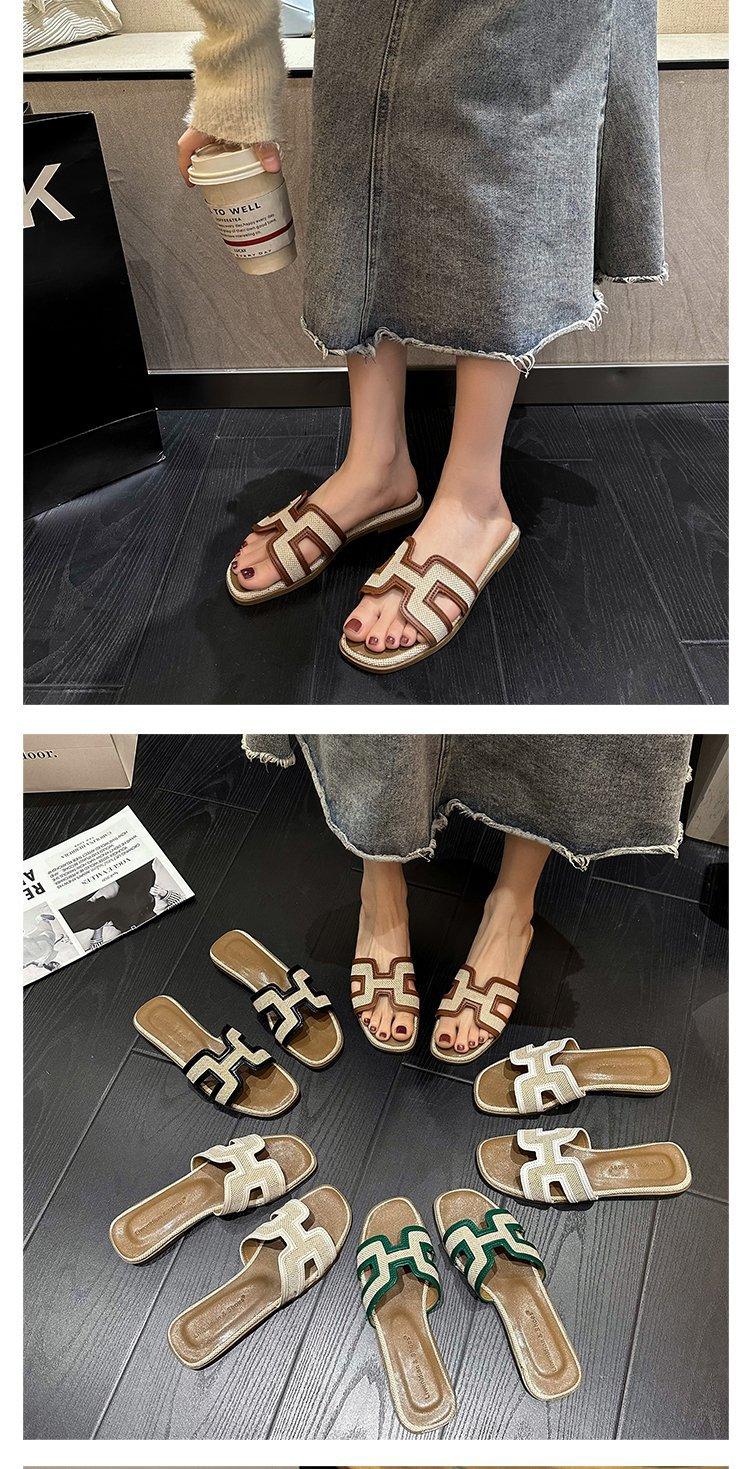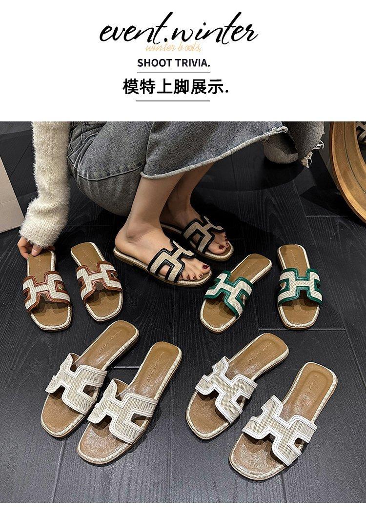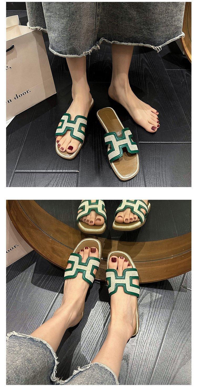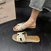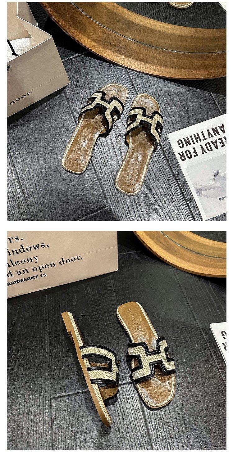H Pantuflas para Ropa Exterior de Mujer 2025 Verano Nuevo Estilo Coreano Suela Plana Versátiles Zapatos de Playa Sandalias