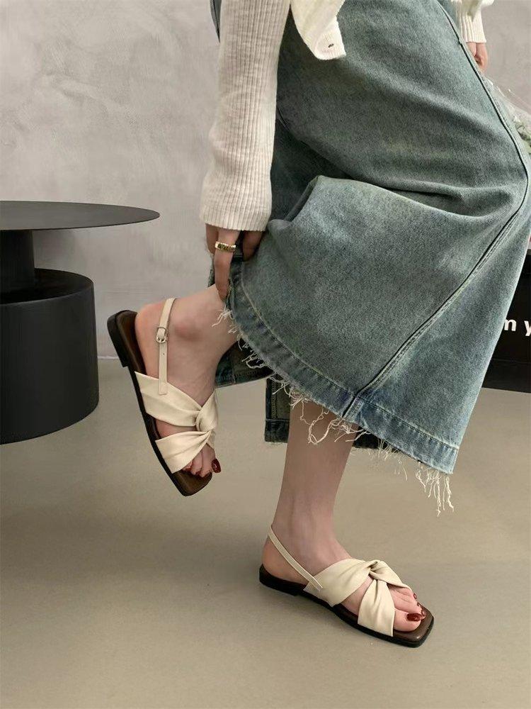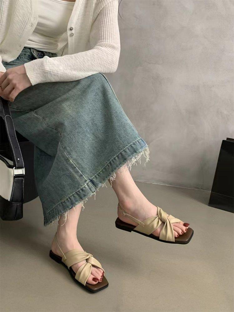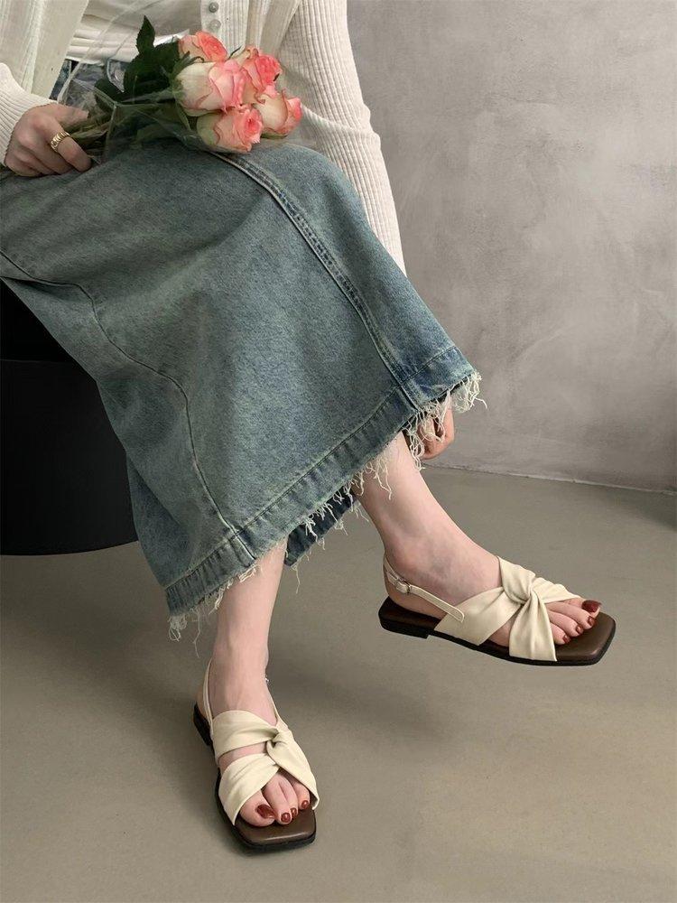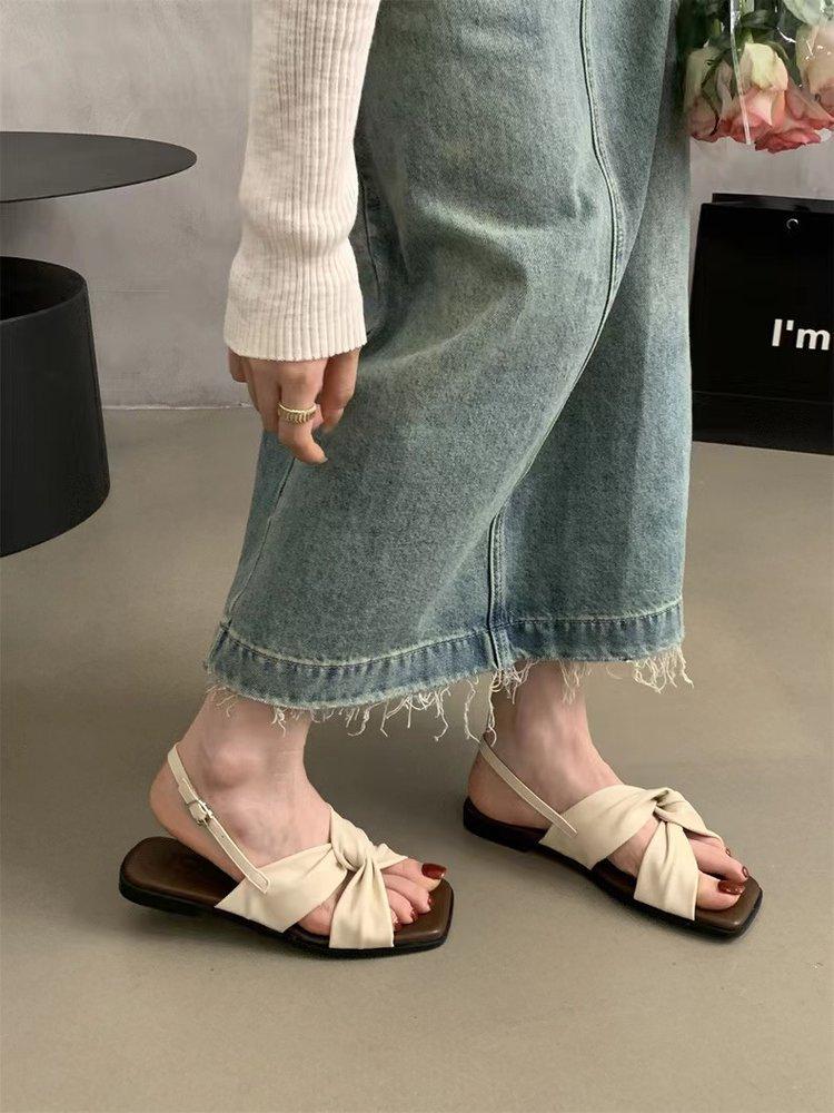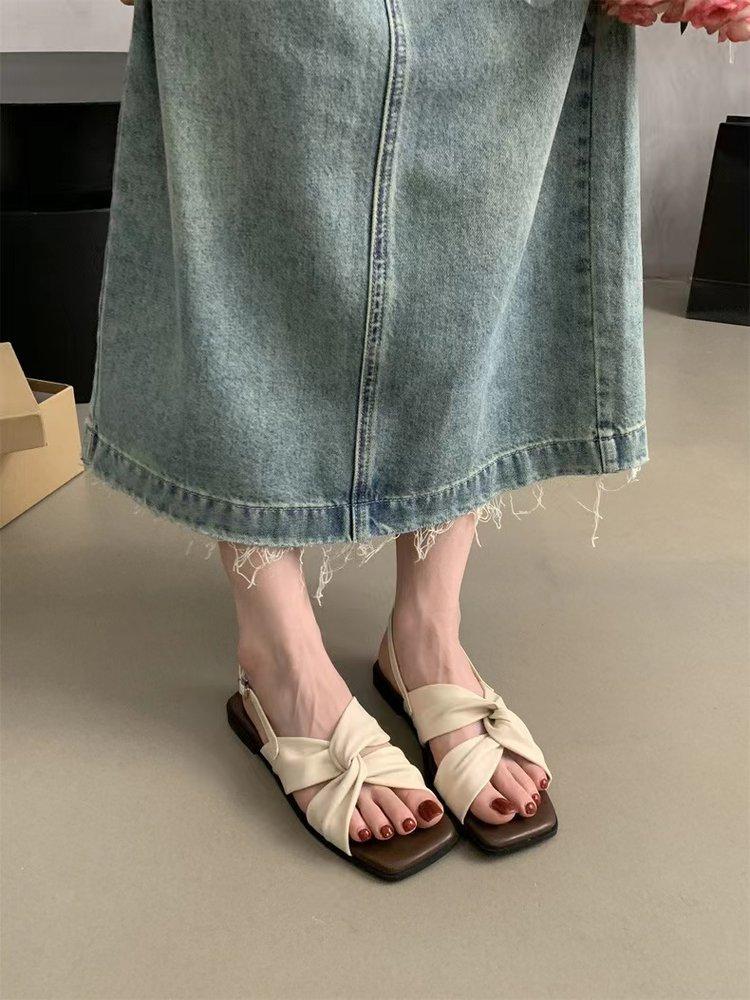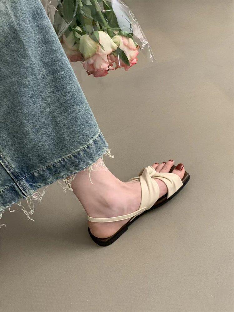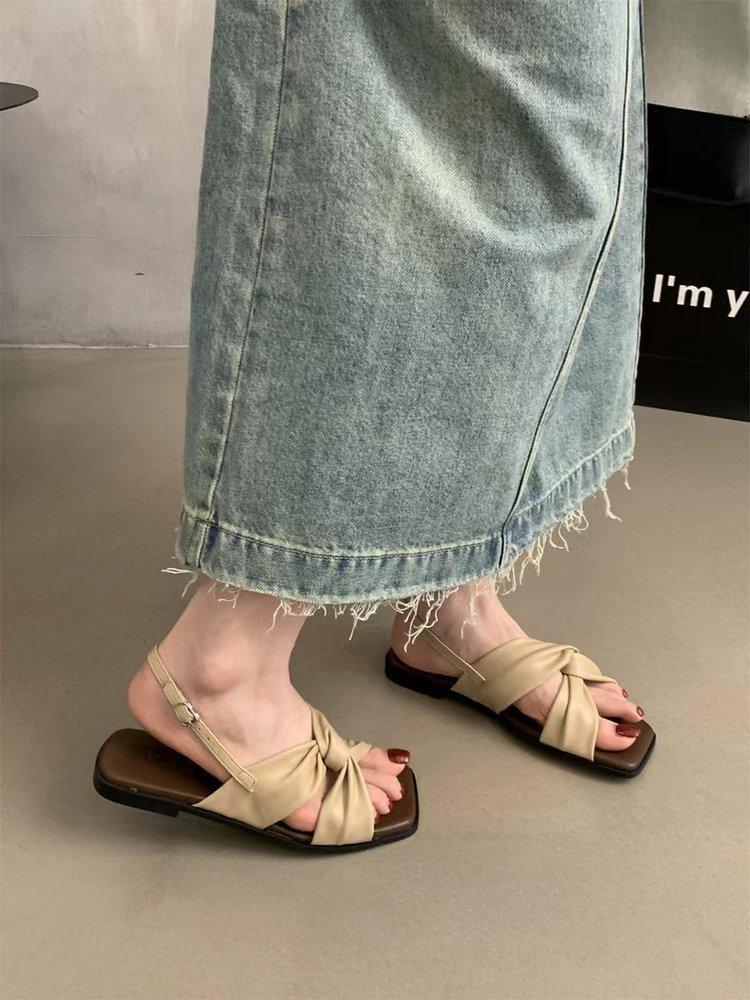 Sandalias planas Zapatos de mujer 2025 Verano Nuevo Hebilla Una línea Sandalias de playa Zapatos de mujer