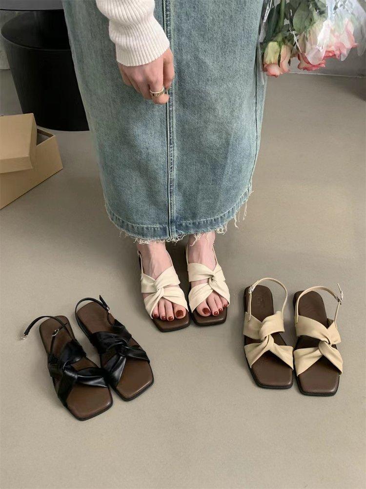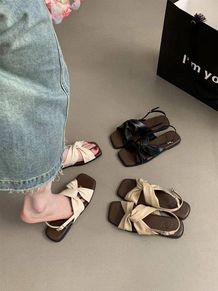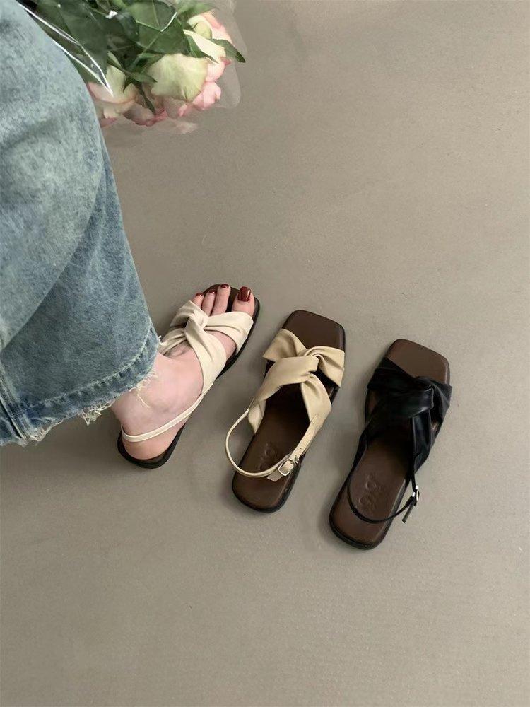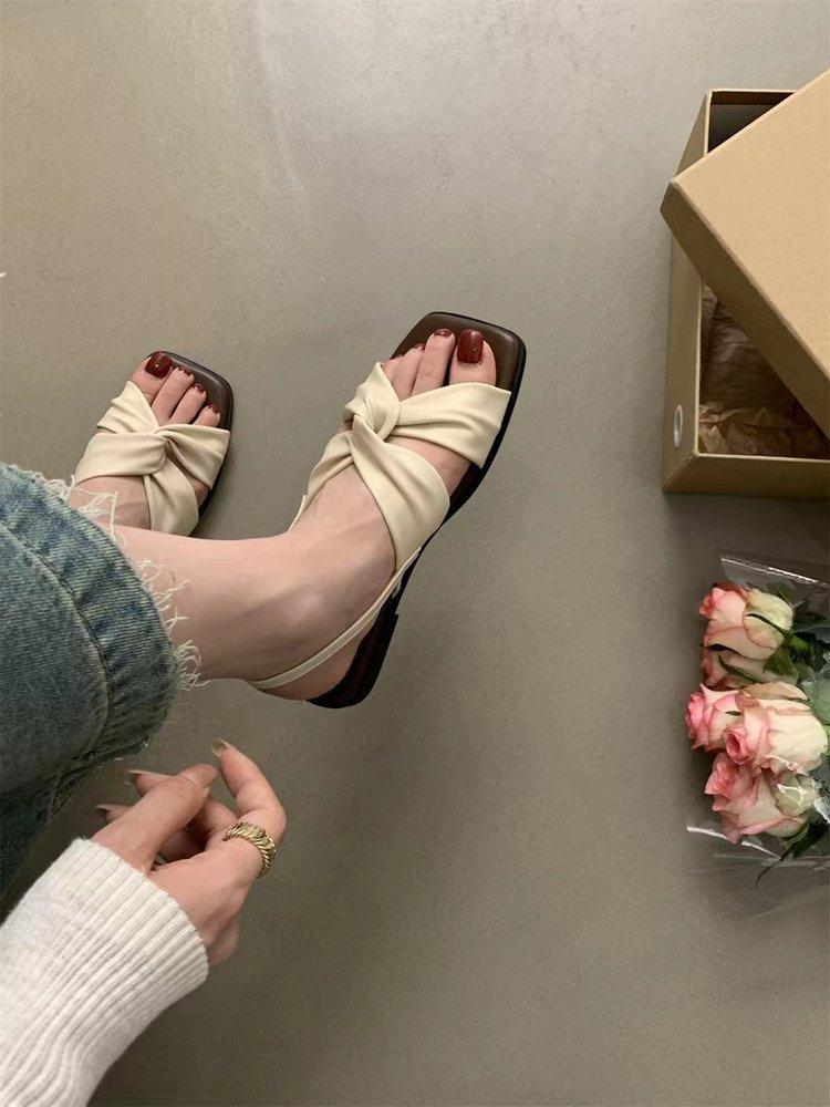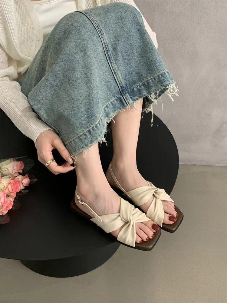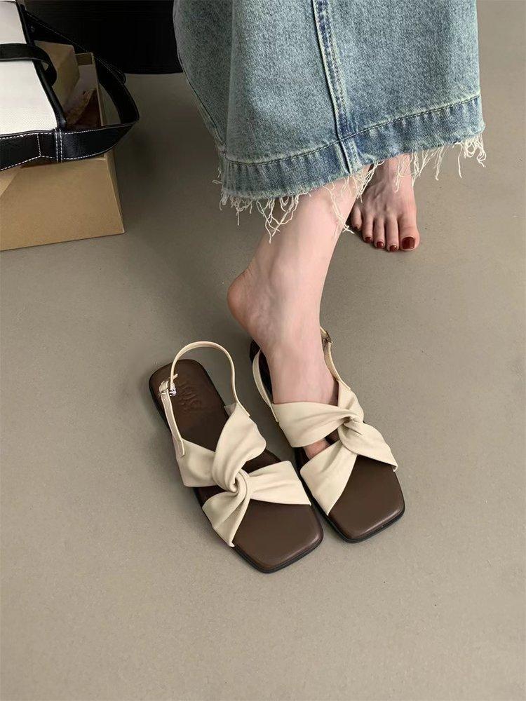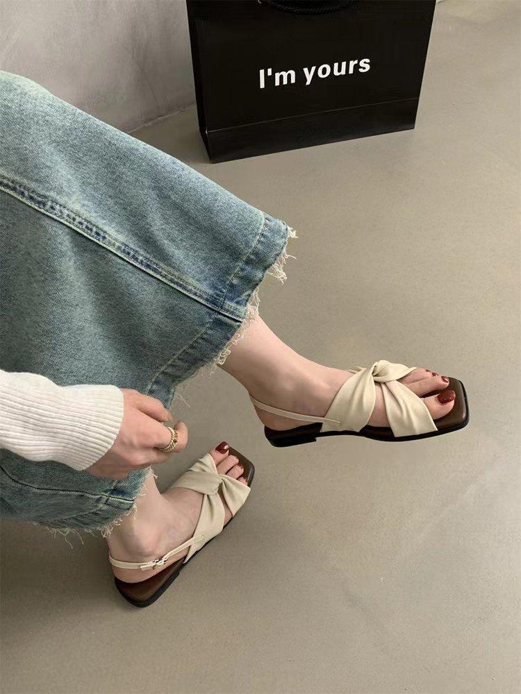 Sandalias planas Zapatos de mujer 2025 Verano Nuevo Hebilla Una línea Sandalias de playa Zapatos de mujer