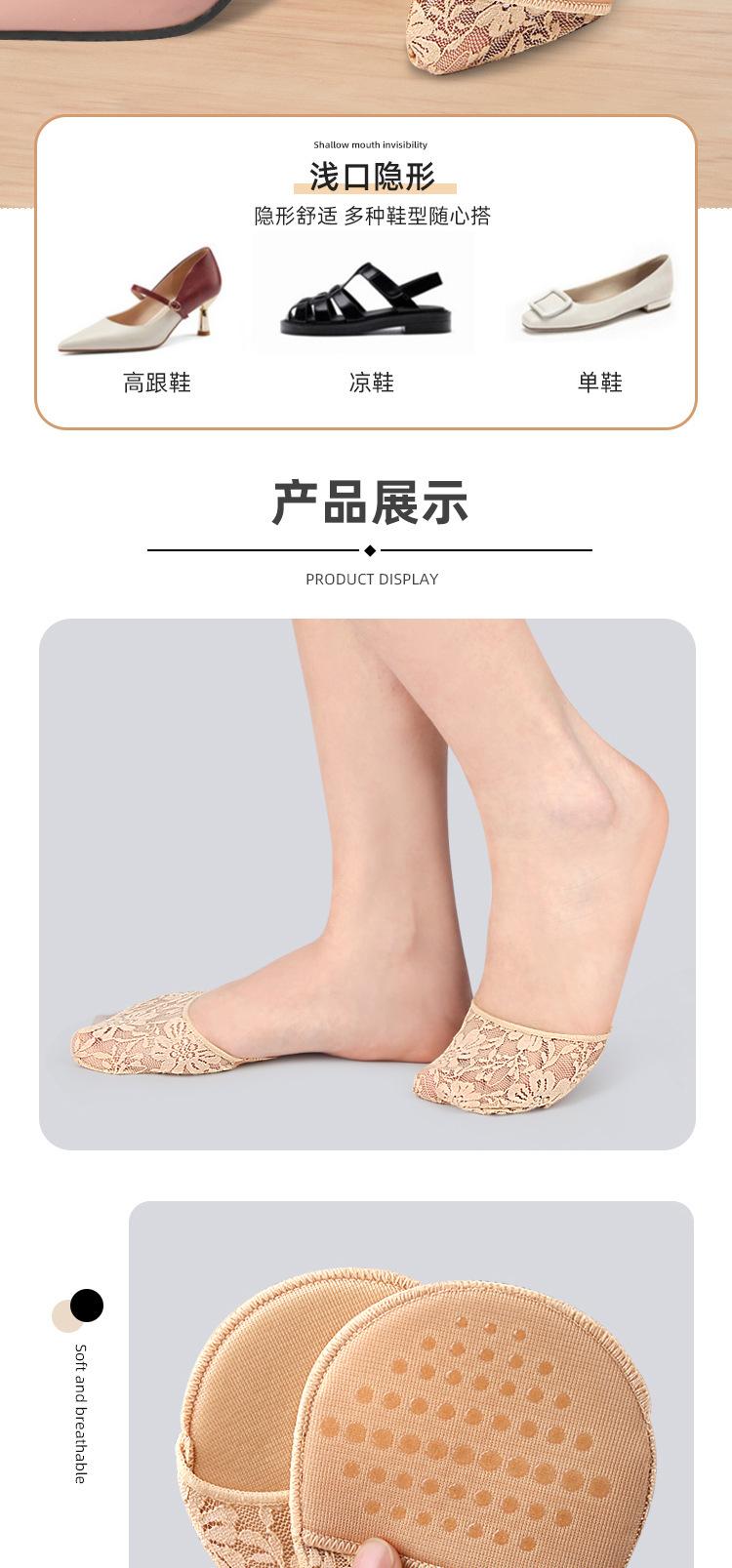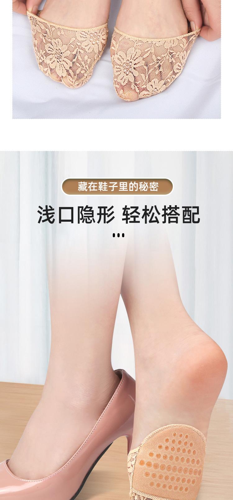 Almohadilla de Encaje de Verano para el Antepié Suave Absorción de Impactos Reducción de Presión Silicona Antideslizante Cubre-Dedos Zapatos de Tacón Alto Calcetines Invisibles Medios