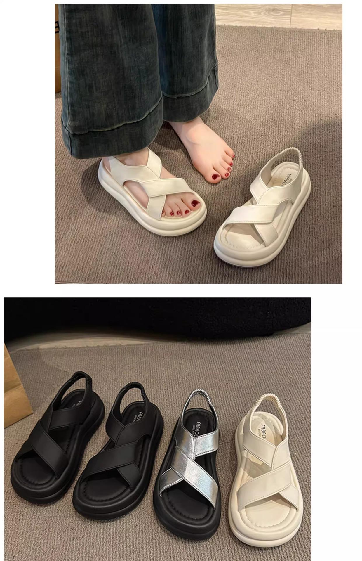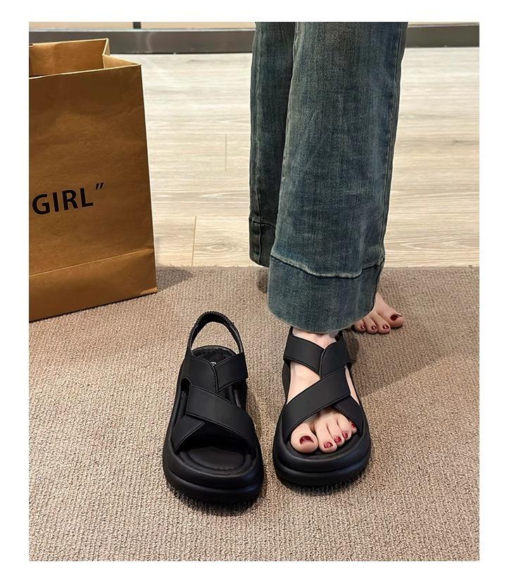 Sandalias y pantuflas de muffin de suela gruesa para mujer verano 2025 nuevo tacón alto suela suave con falda antideslizantes sandalias de playa