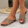 Sandalias planas de playa de pedrería de moda de verano 2024 para mujer, de talla grande con suela gruesa, zapatillas de comercio exterior para mujer