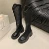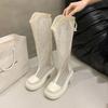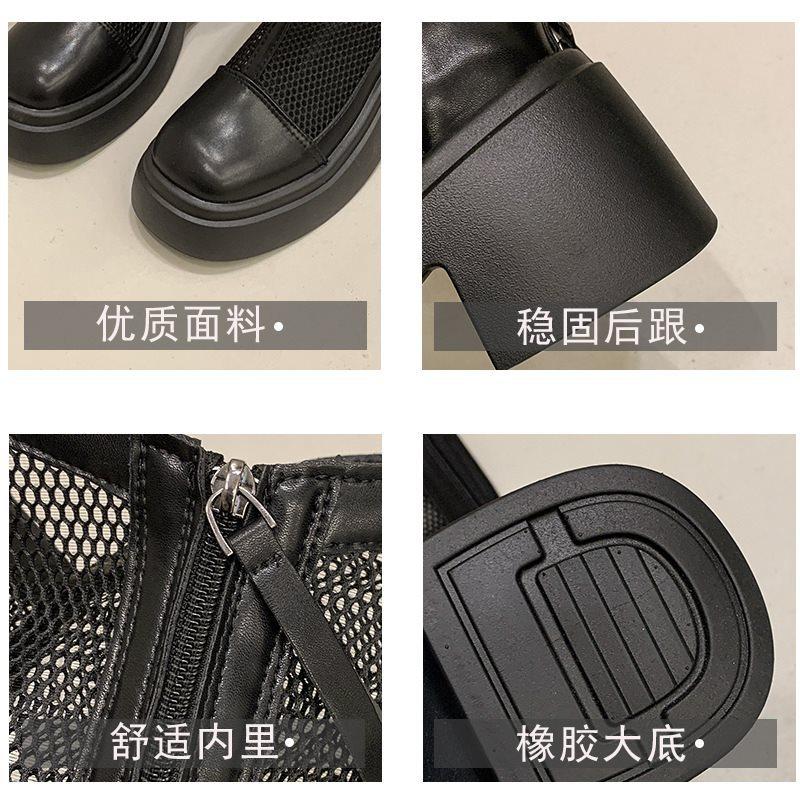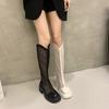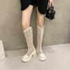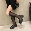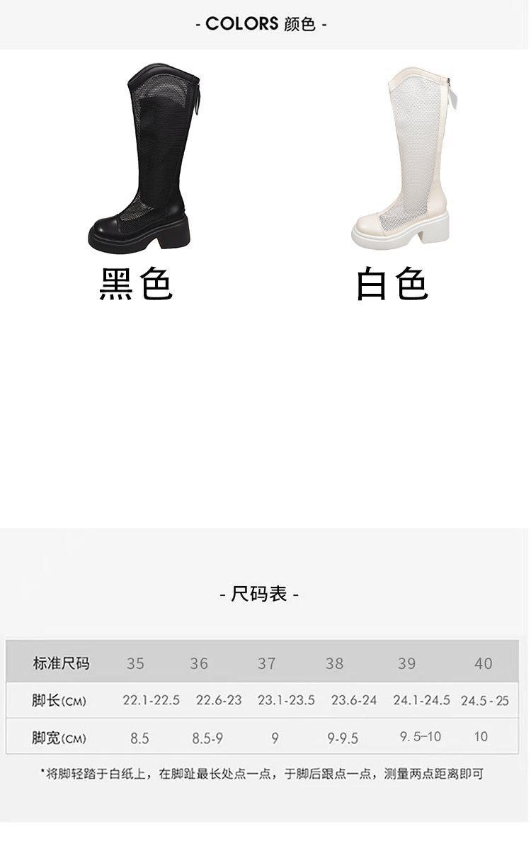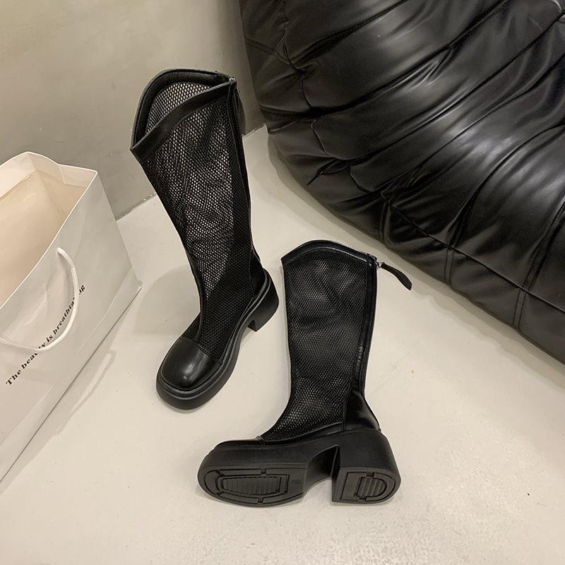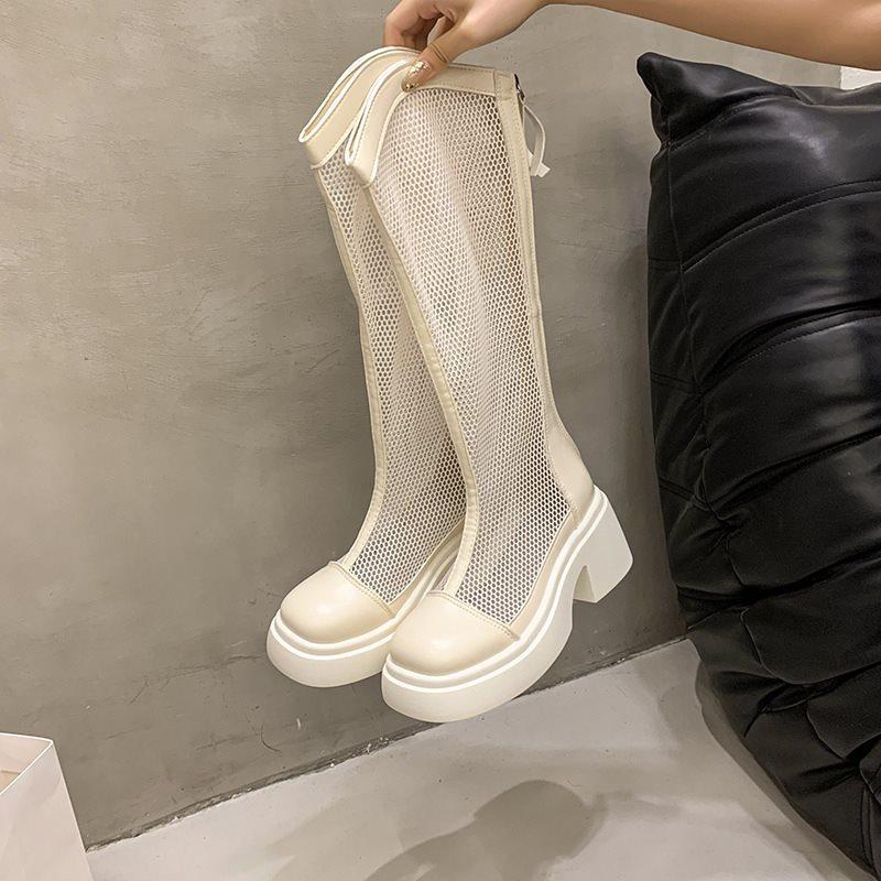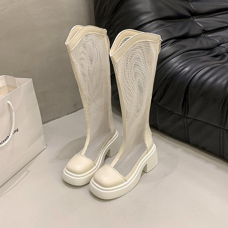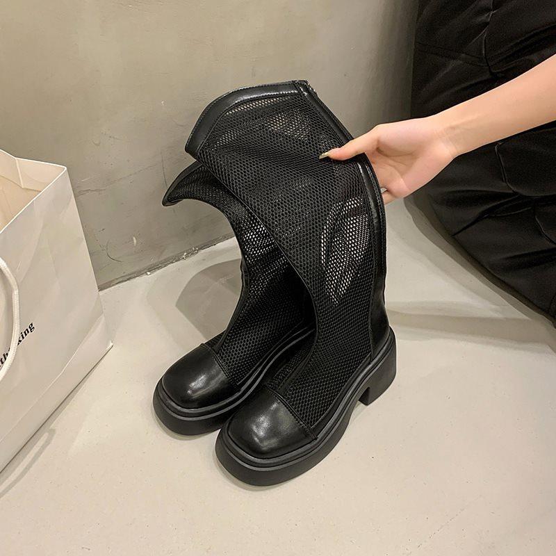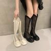 Botas de malla de piel sintética para mujer verano delgadas transpirables huecas botas altas de tubo tacón pequeño pero hasta la rodilla botas de caballero