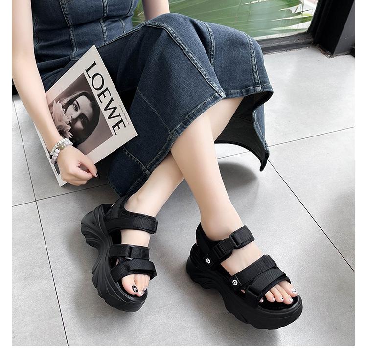Sandalias 2024 Nuevos Zapatos de Playa con Velcro Estilo Verano Zapatos de Pequeño Aroma Zapatos de Mujer de Suela Gruesa Zapatos de Mujer Romanos Verano Casual