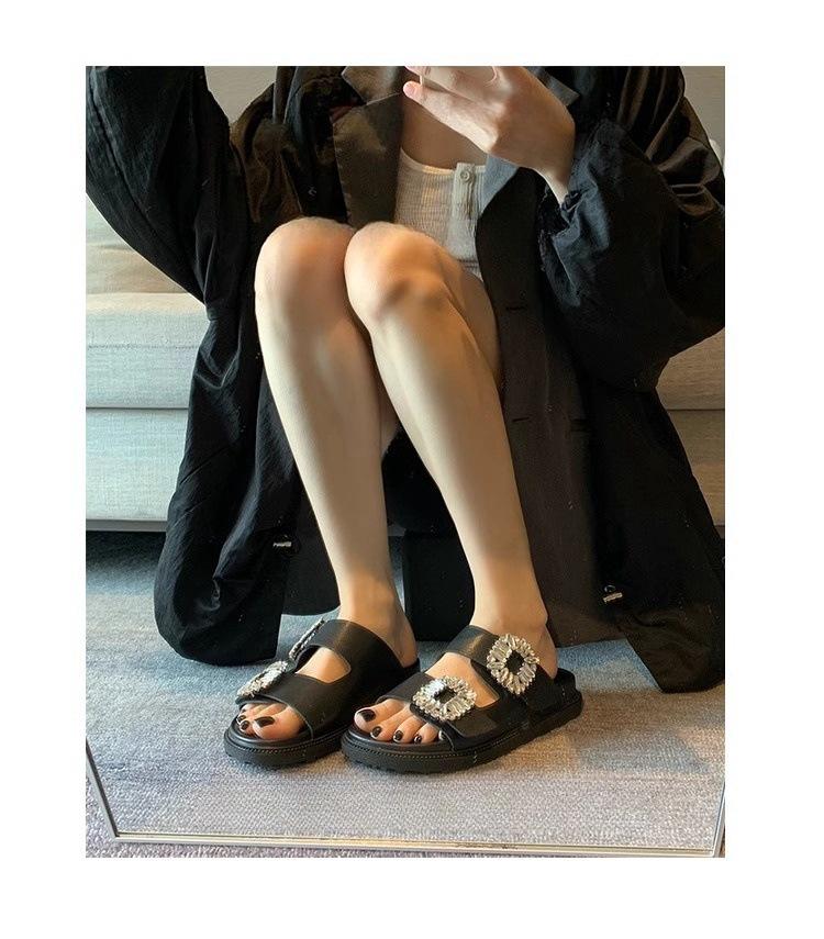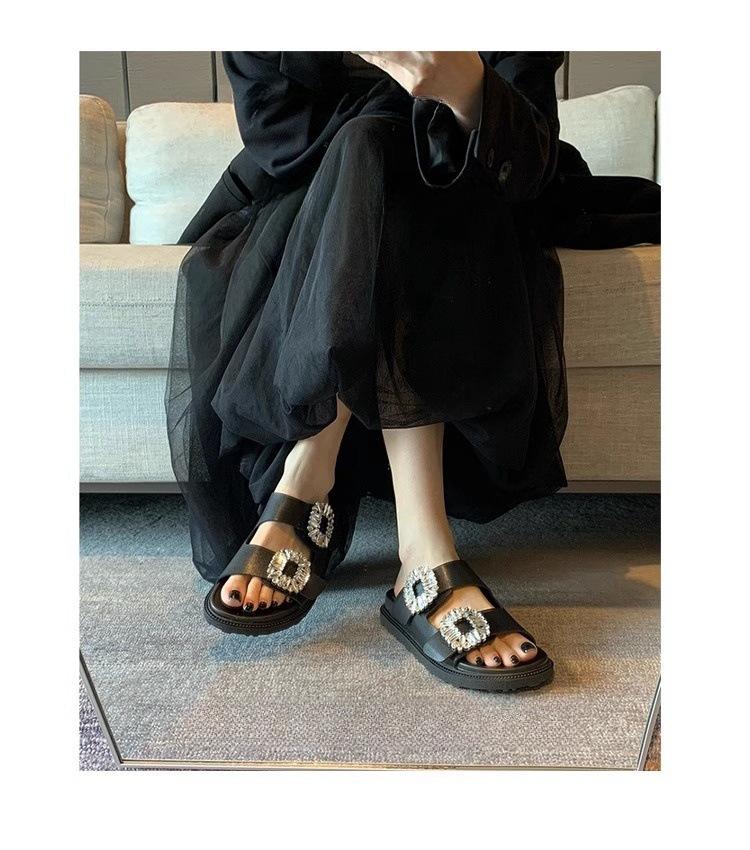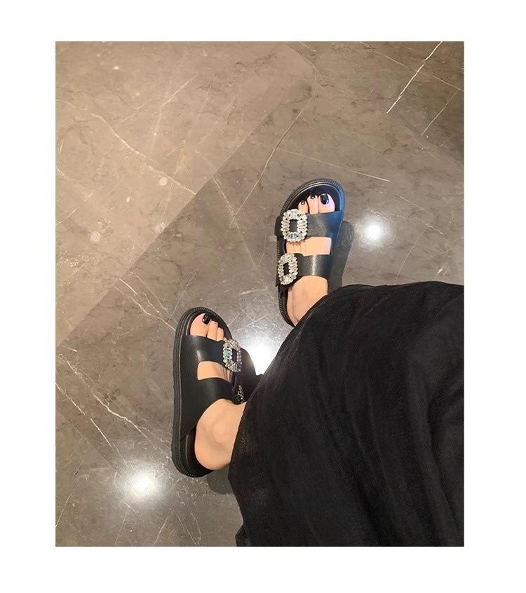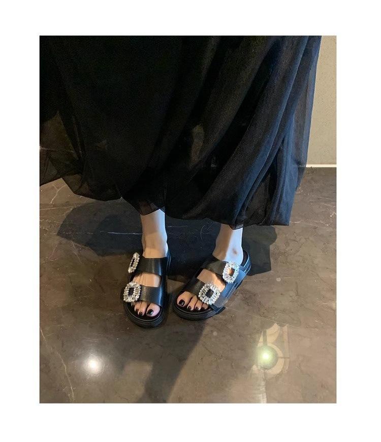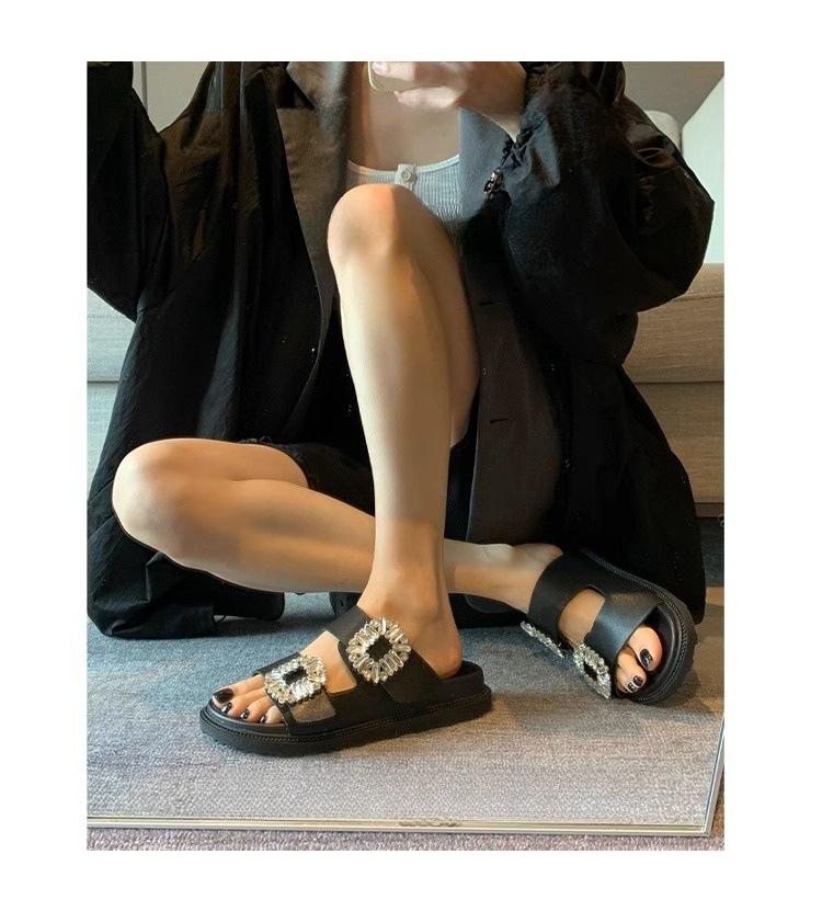 Sandalias de Moda con Hebilla Cuadrada de Pedrería para Mujer Verano 2025 Nuevas para Exterior Pantuflas de Playa de Suela Gruesa Pantuflas Casuales