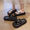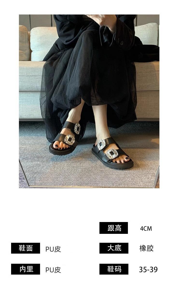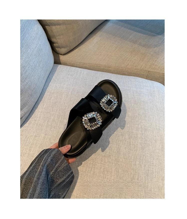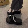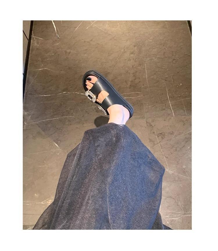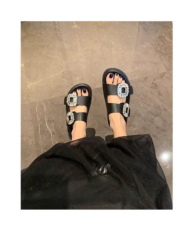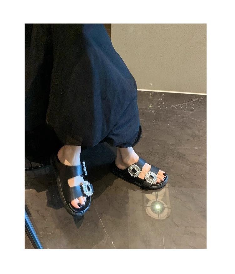 Sandalias de Moda con Hebilla Cuadrada de Pedrería para Mujer Verano 2025 Nuevas para Exterior Pantuflas de Playa de Suela Gruesa Pantuflas Casuales