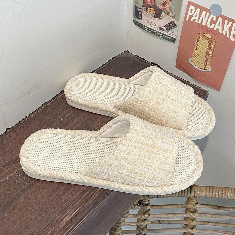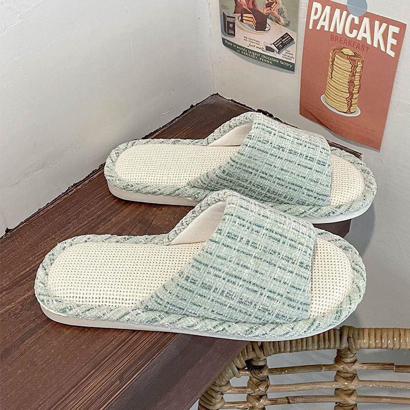Pantuflas de Lino Personalizadas para las Cuatro Estaciones para Interior Antideslizantes Absorbentes del Sudor para el Hogar para Interior y Exterior de Suela Plana de Punta Abierta de Algodón y Lino