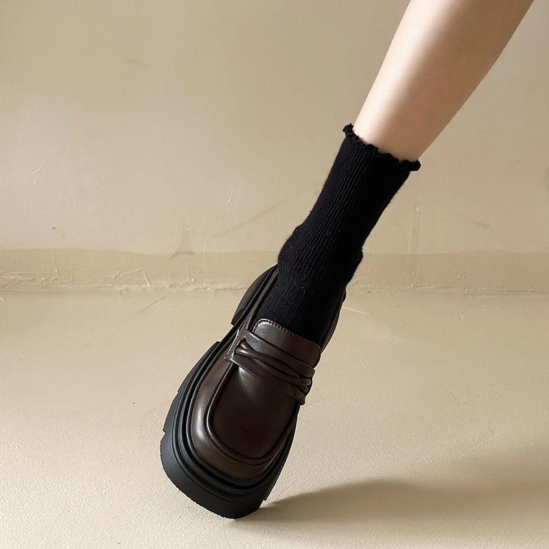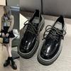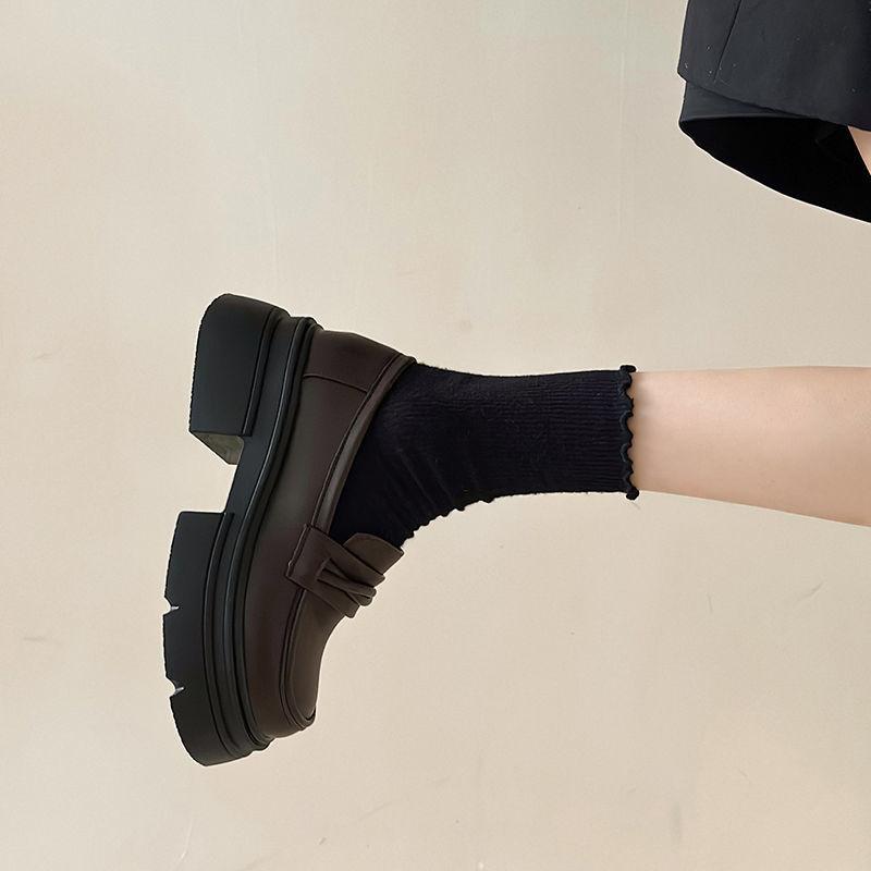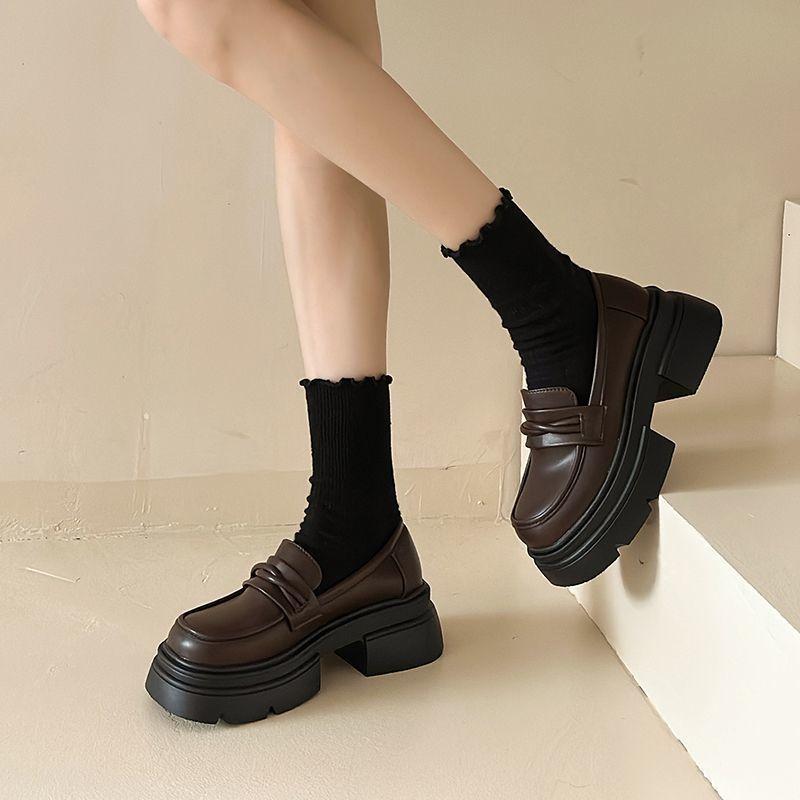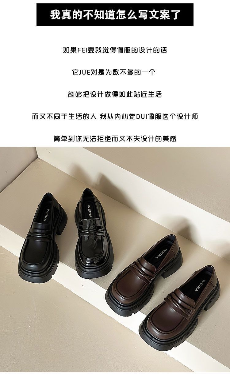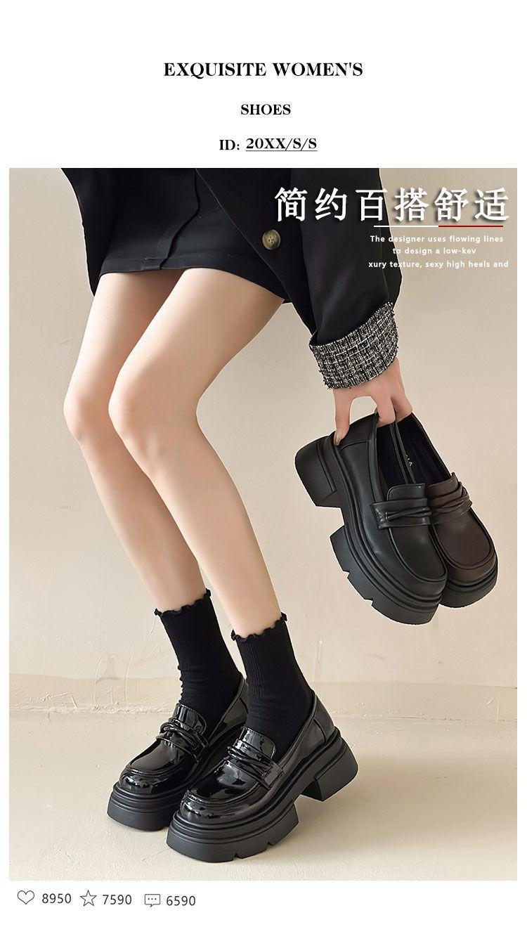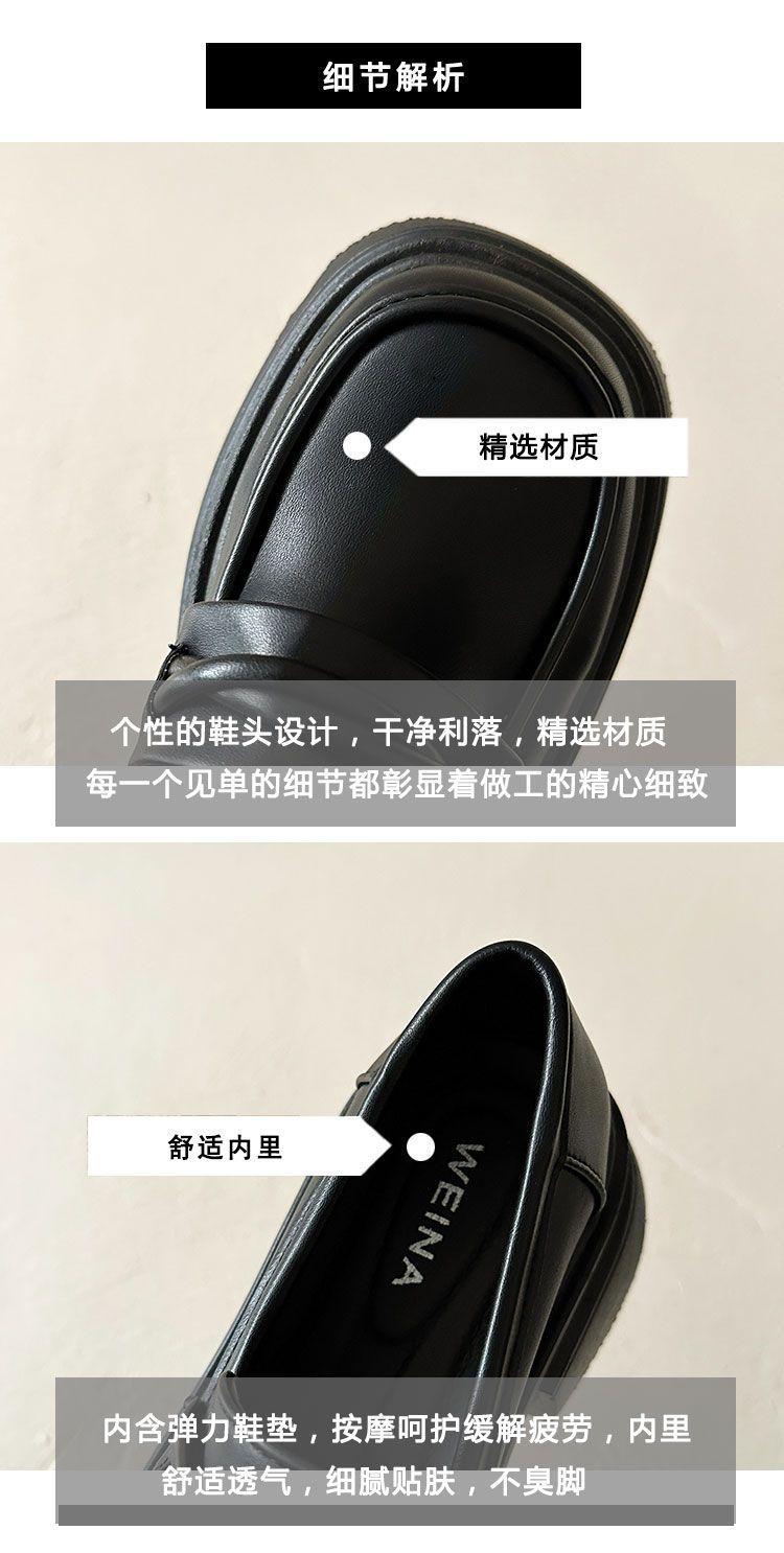 Zapatos de cuero estilo británico para mujer 2023 nuevos otoño e invierno plataforma slip-on mocasines negros zapatos delgados ins