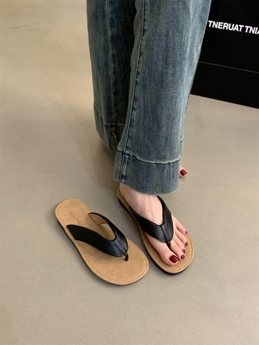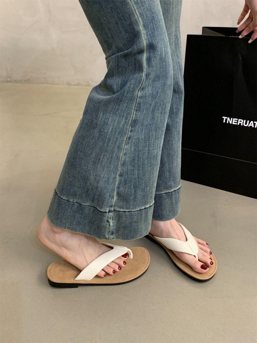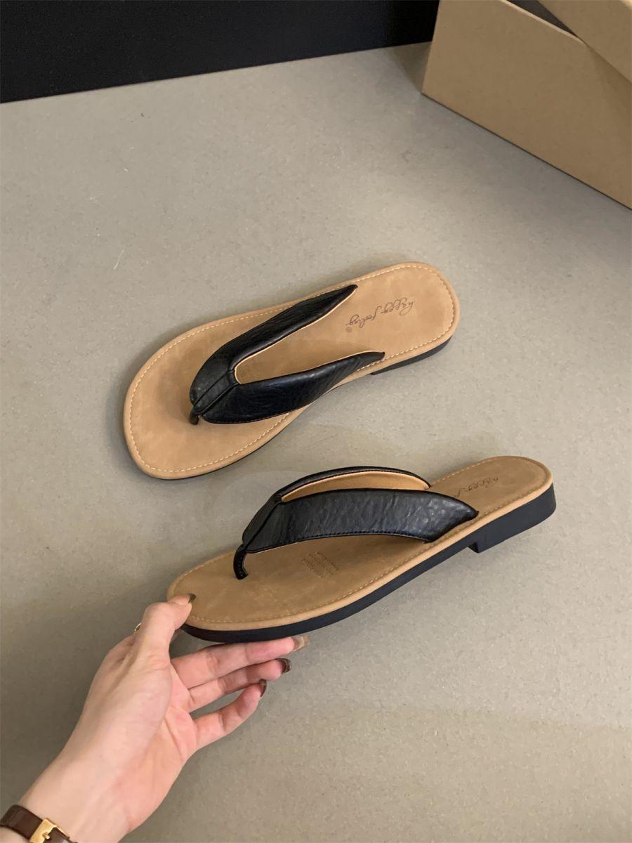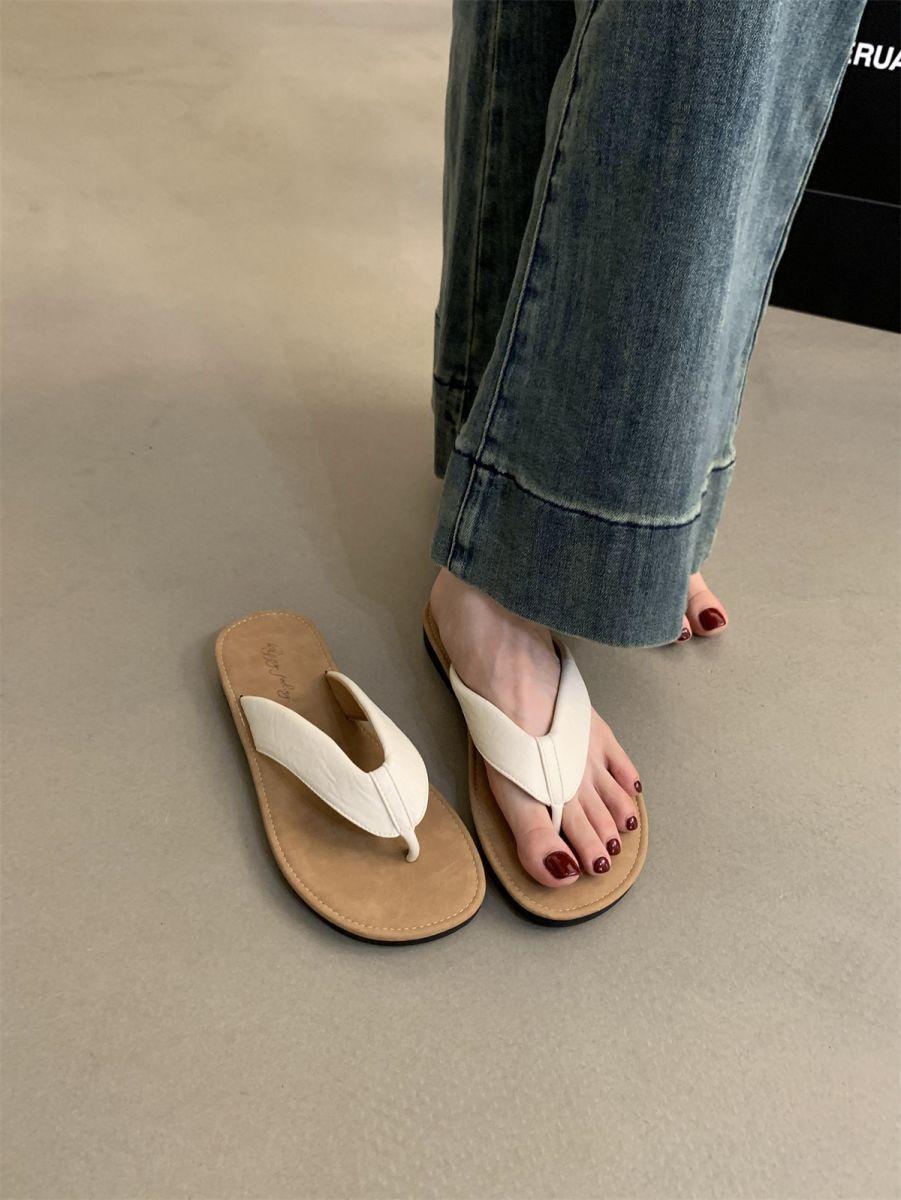 Chanclas de Verano para Mujer para Exterior Nuevo Estilo Coreano Retro Chanclas Vacaciones Hada Orilla del Mar Planas Zapatos de Playa