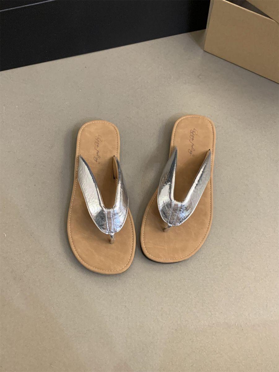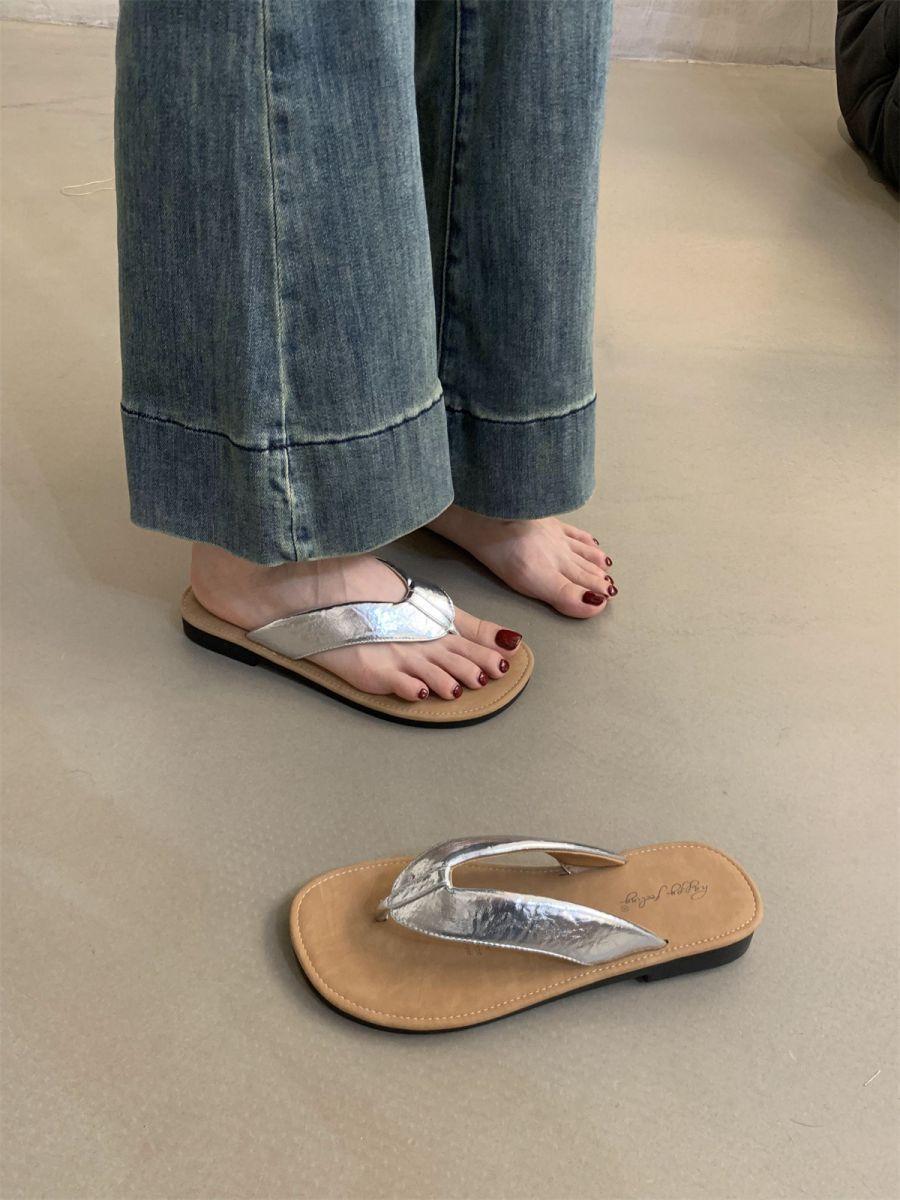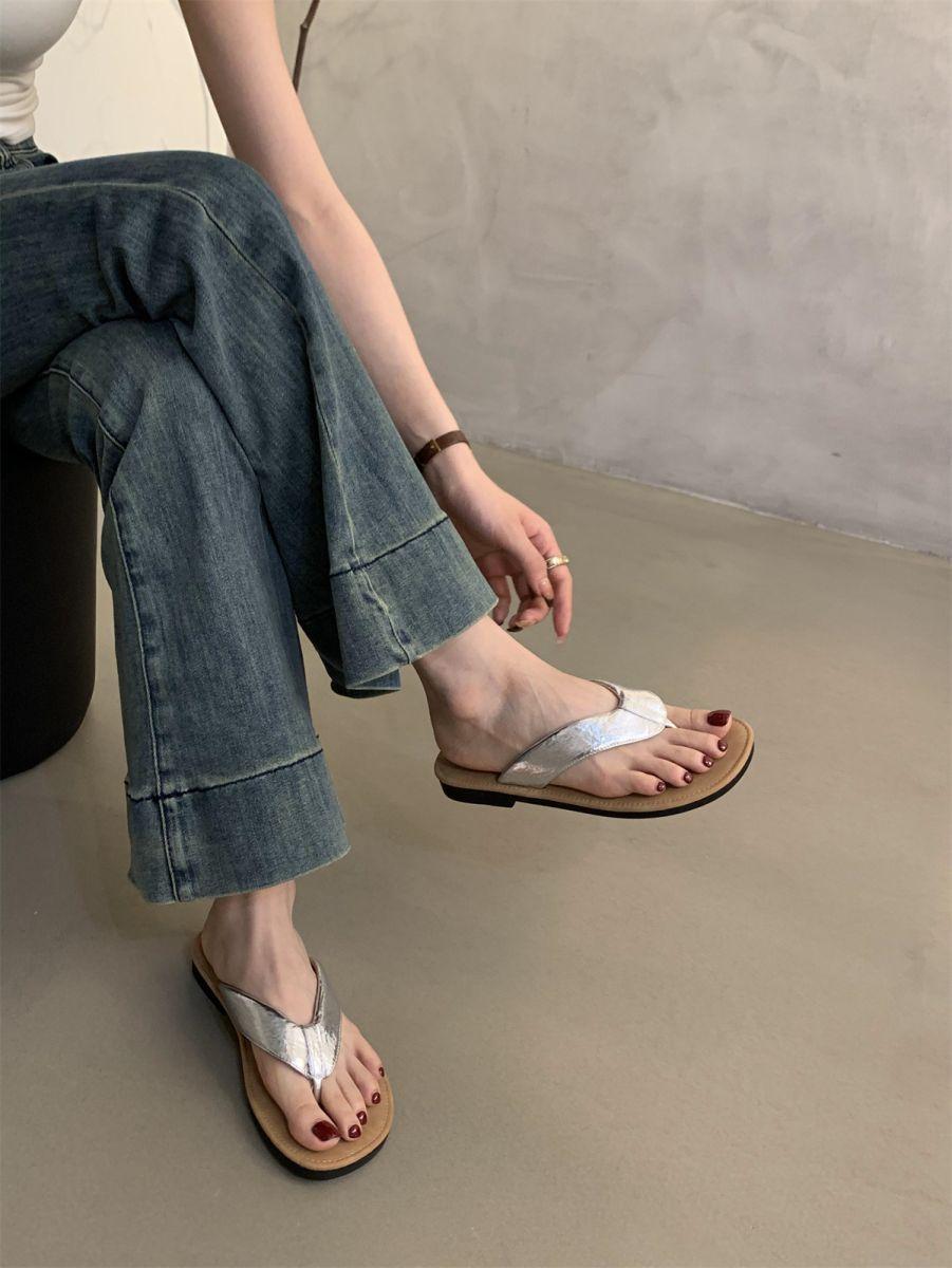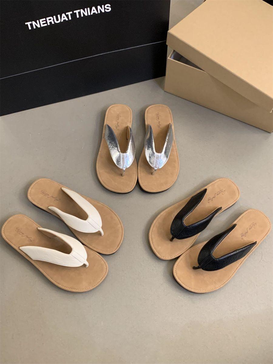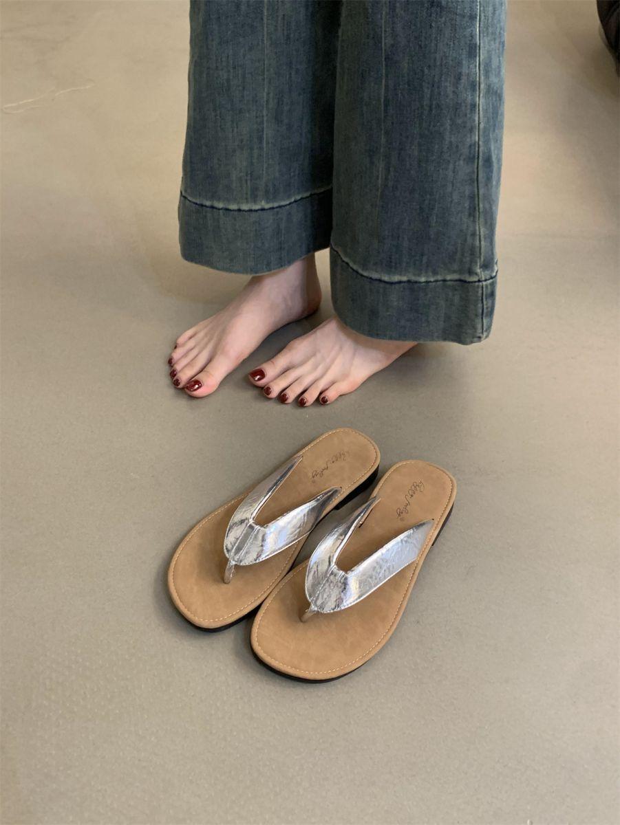 Chanclas de Verano para Mujer para Exterior Nuevo Estilo Coreano Retro Chanclas Vacaciones Hada Orilla del Mar Planas Zapatos de Playa