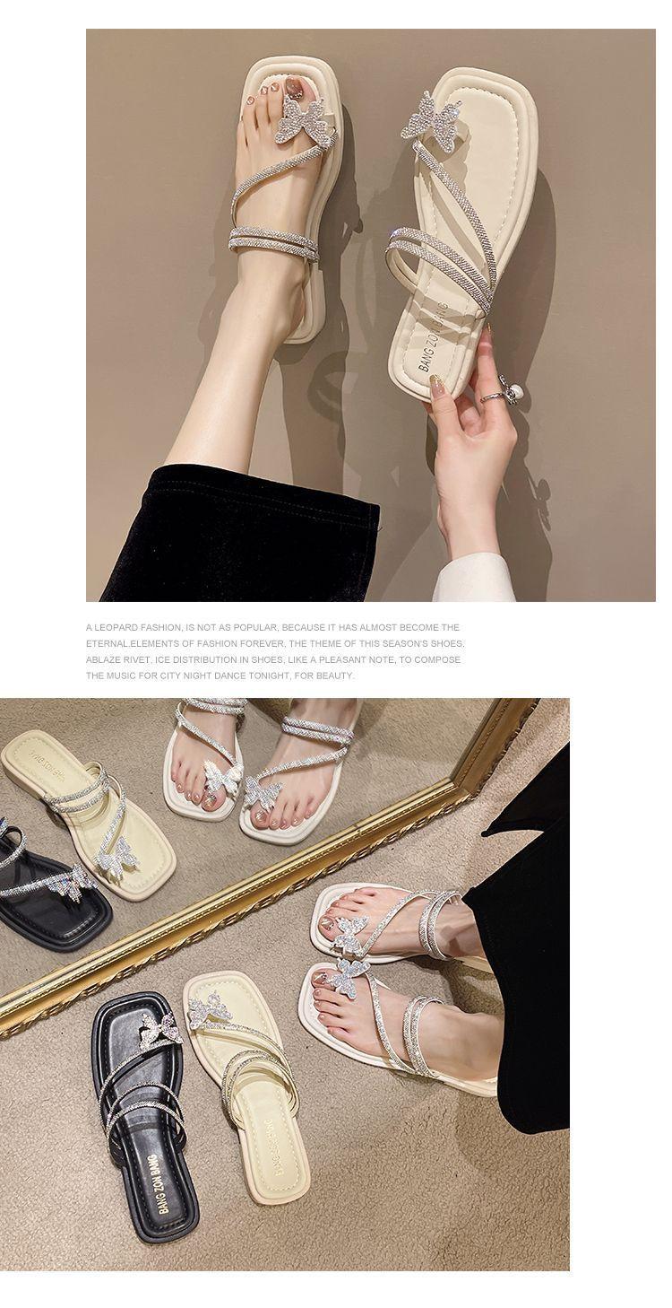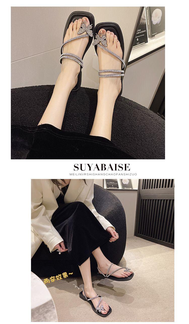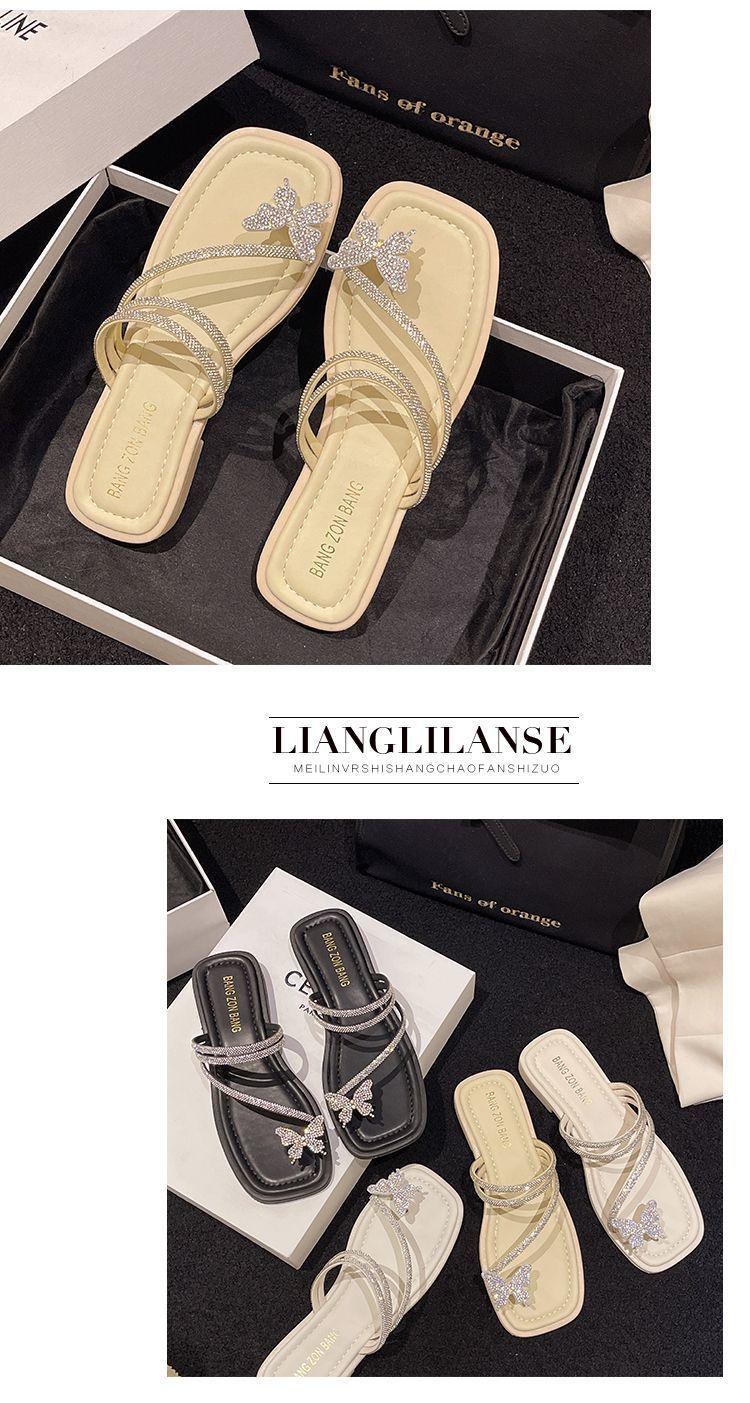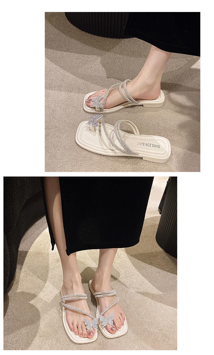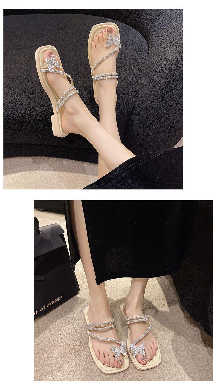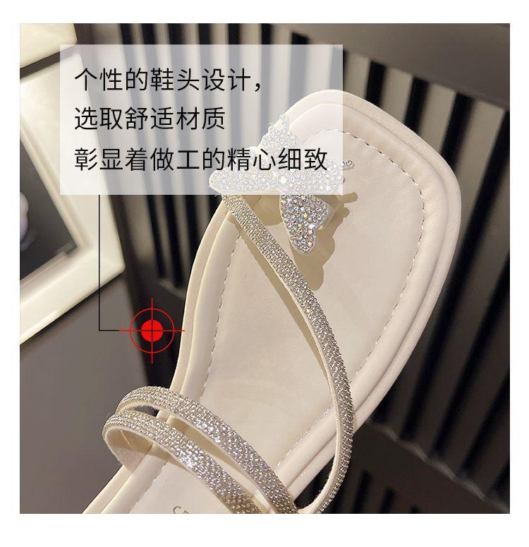 Sandalias de dedo de mariposa con pedrería para mujer, flats de verano de hadas con falda, chanclas de dos usos para playa, ropa exterior, sandalias romanas