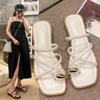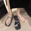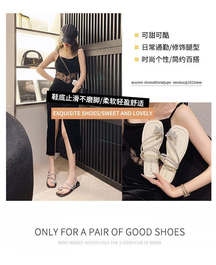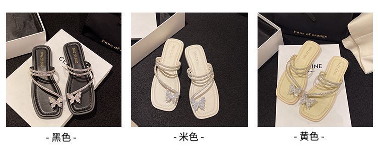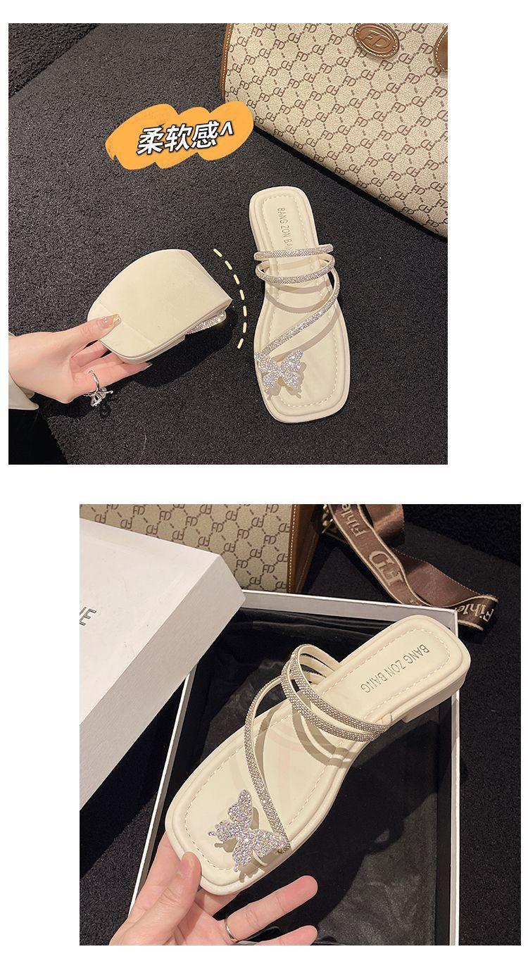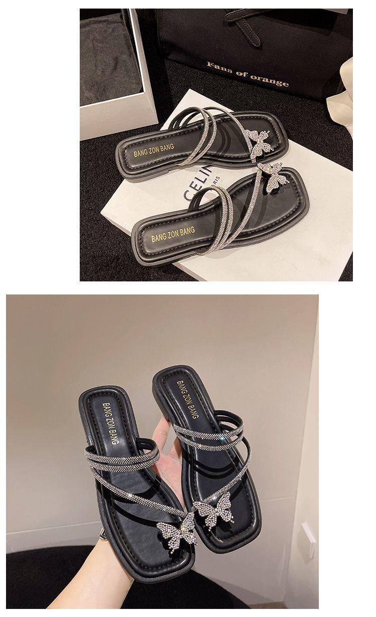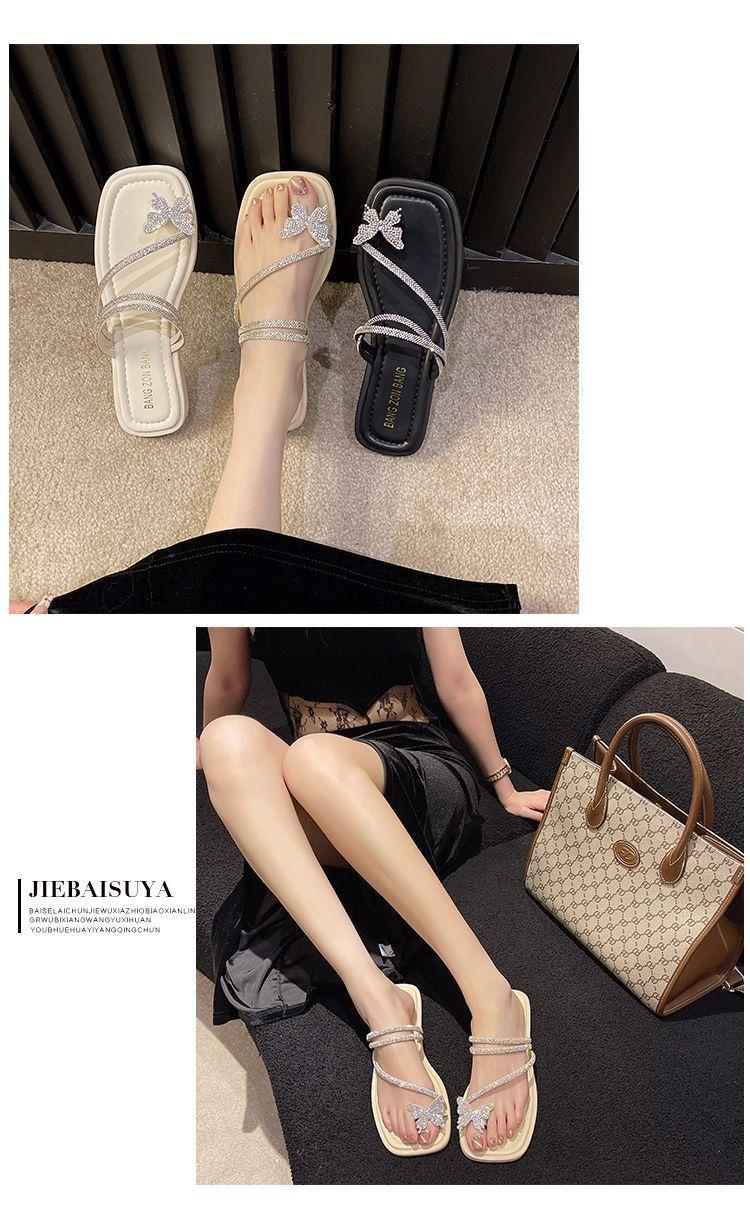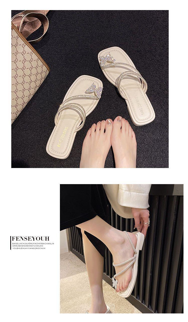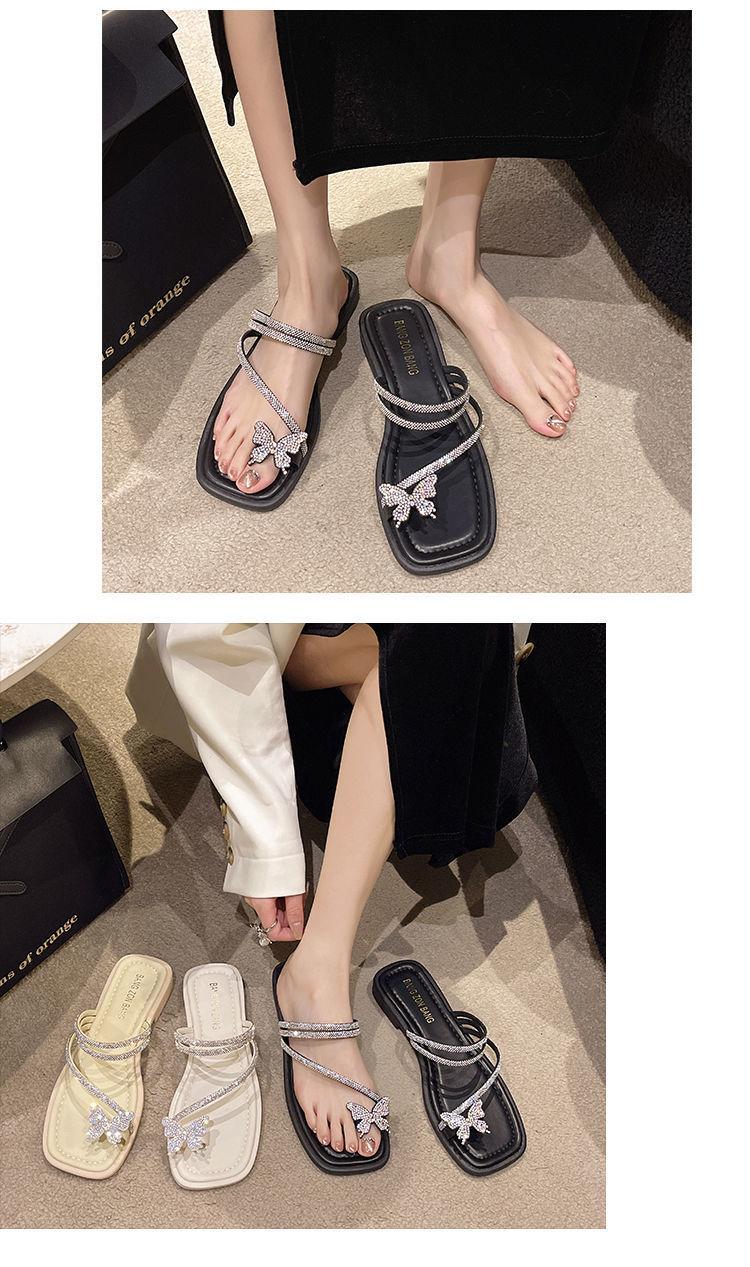 Sandalias de dedo de mariposa con pedrería para mujer, flats de verano de hadas con falda, chanclas de dos usos para playa, ropa exterior, sandalias romanas