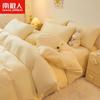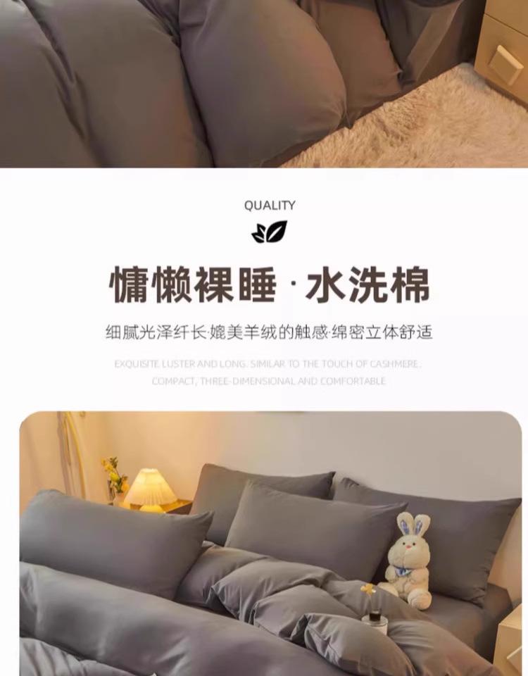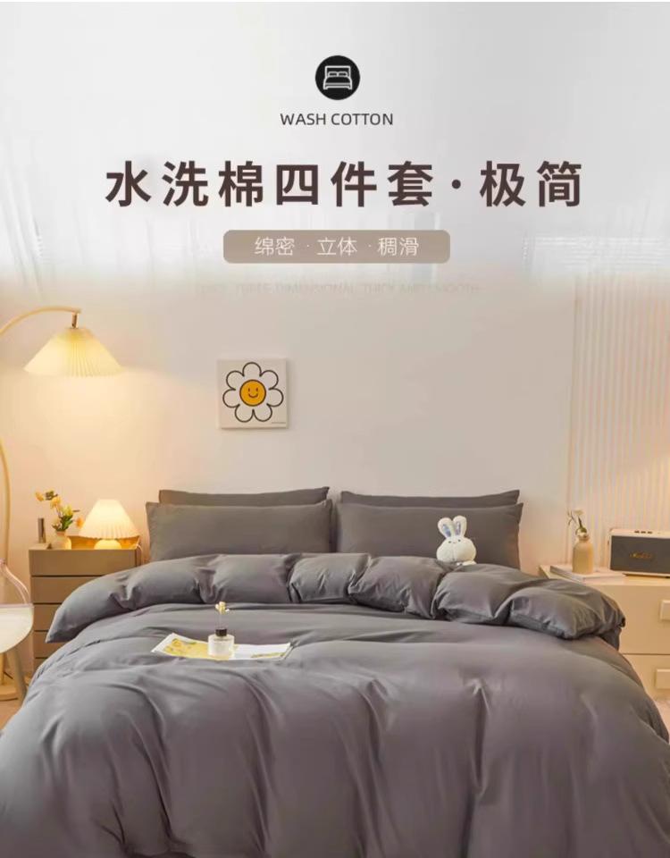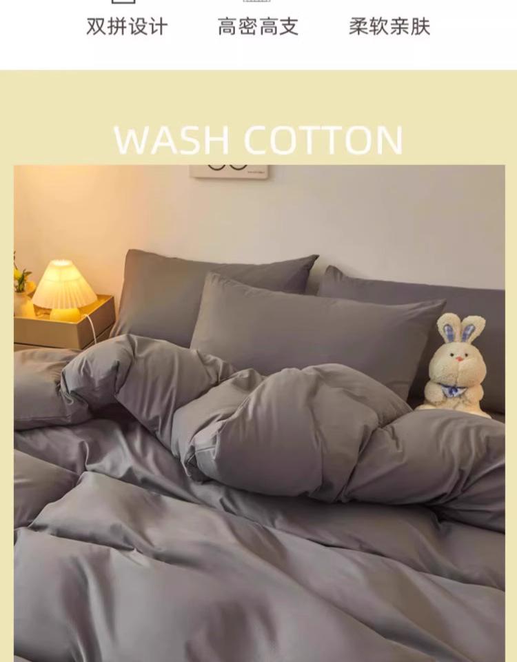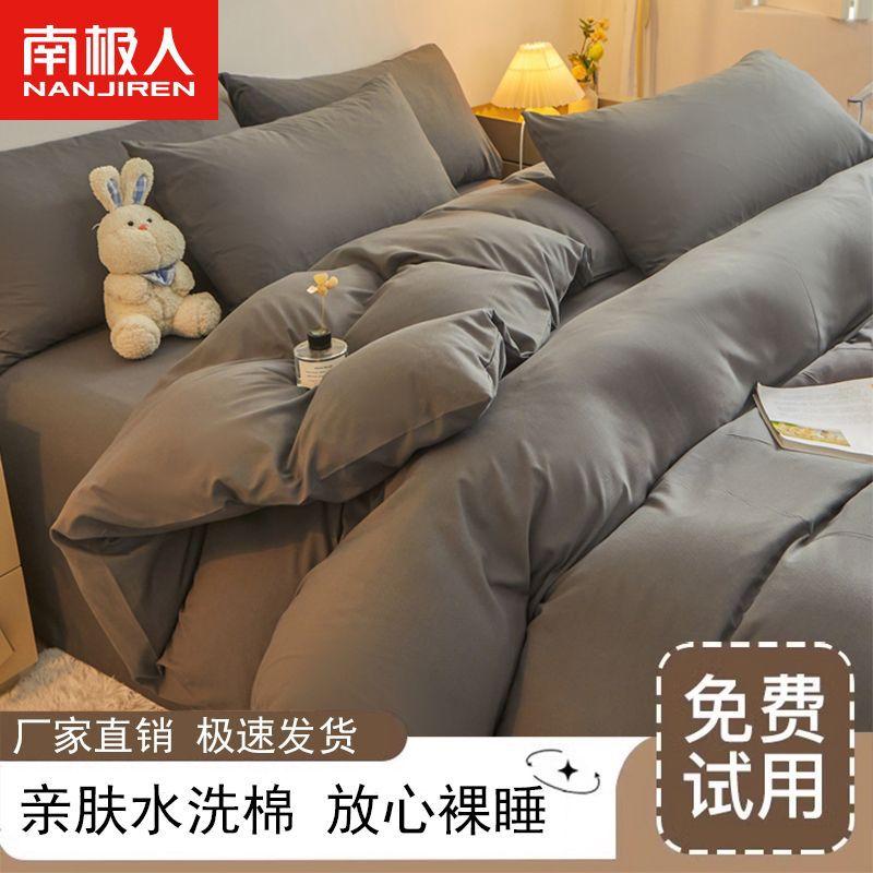 Nanjiren Juego de cuatro piezas de algodón lavado nuevo, Juego de tres piezas de sábana de dormitorio individual para estudiantes con funda de edredón gruesa y lijada para el hogar