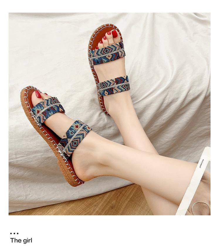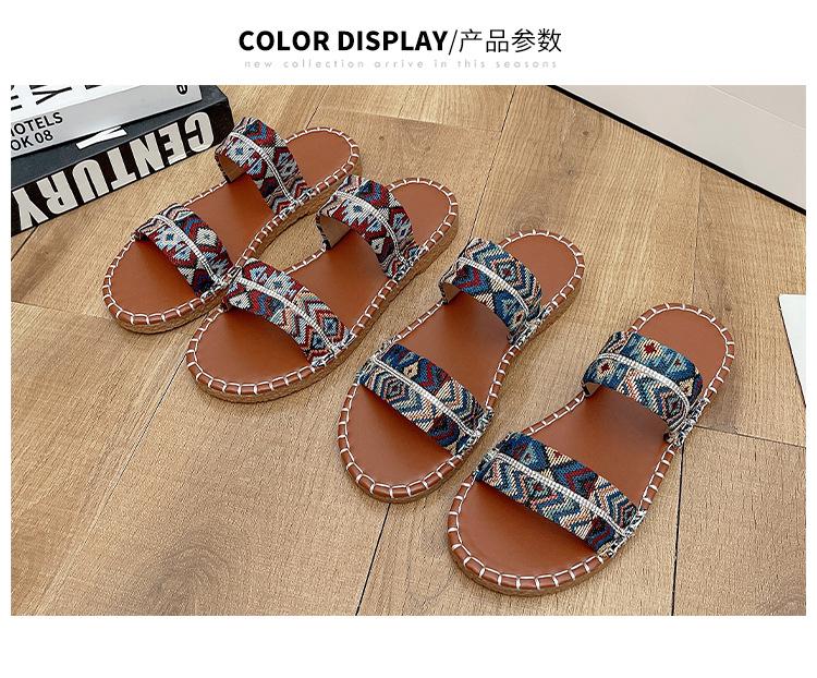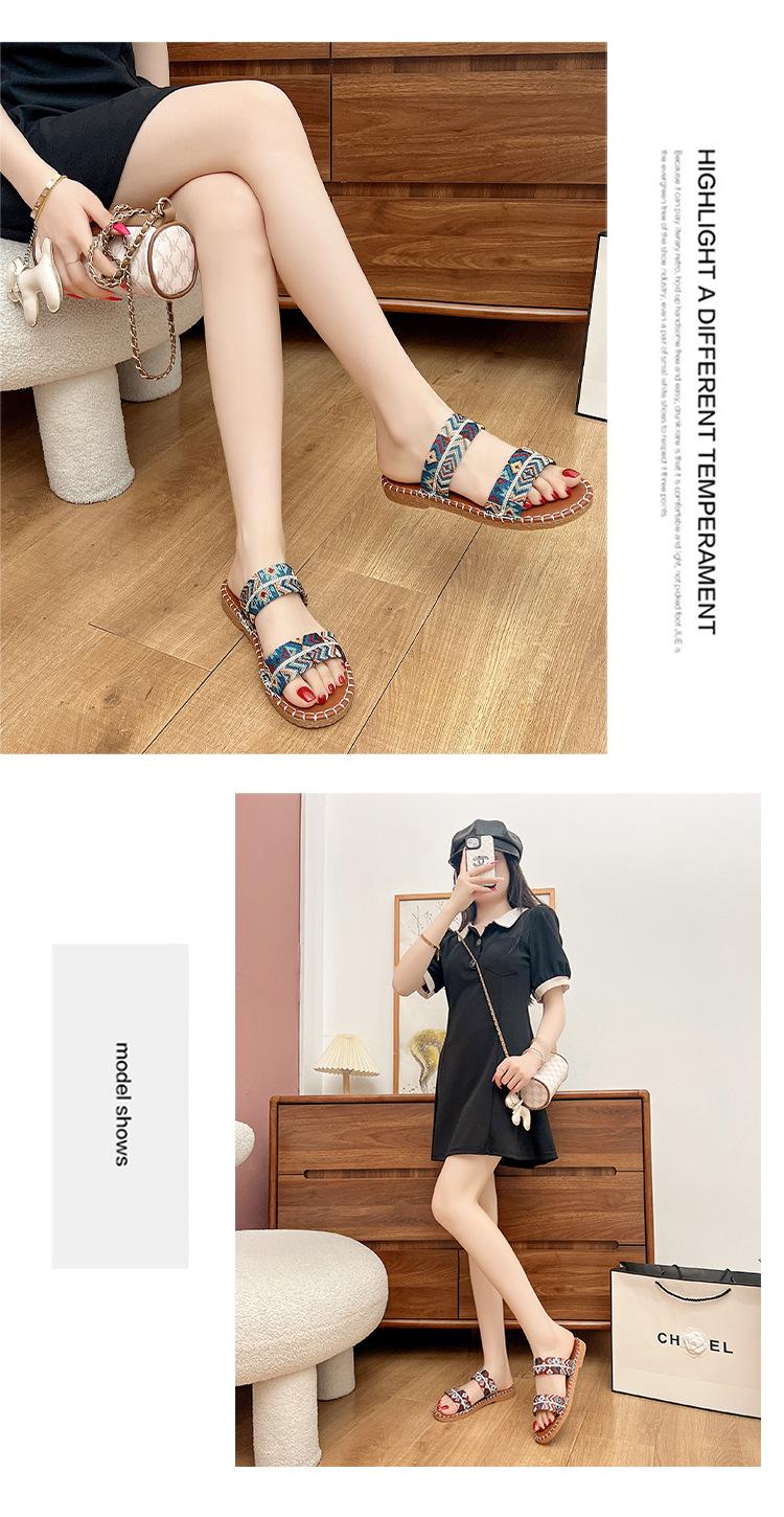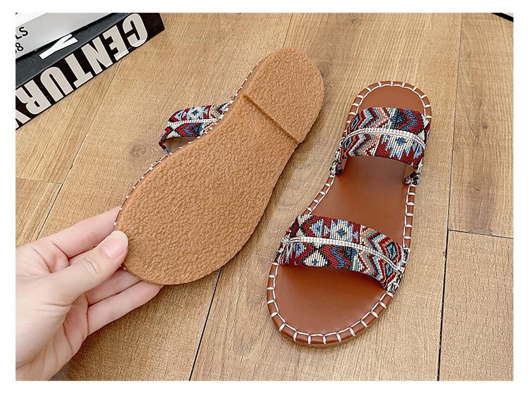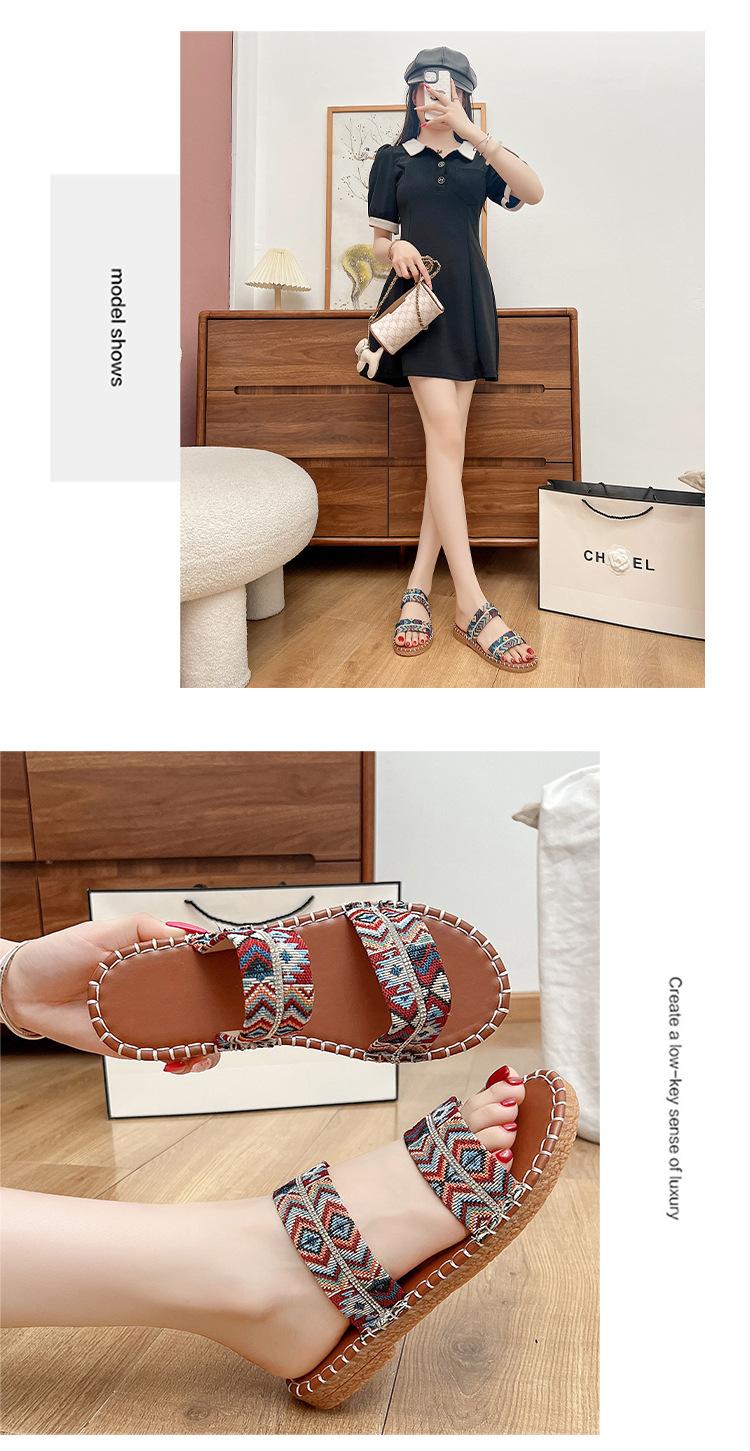 Nuevo Tamaño Grande Ropa Exterior Cómodas Sandalias de Playa de Suela Plana para Mujer Comercio Exterior Bohemias Simples de Doble Correa