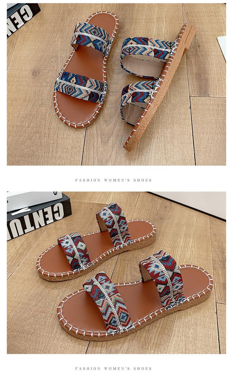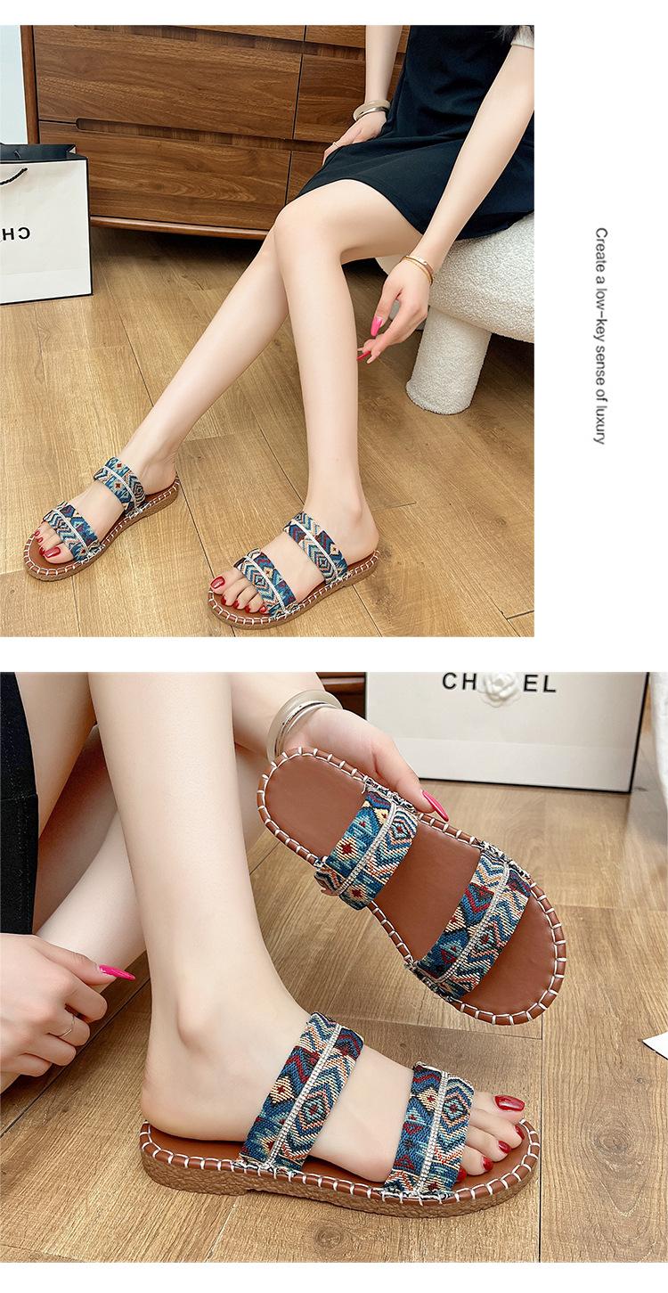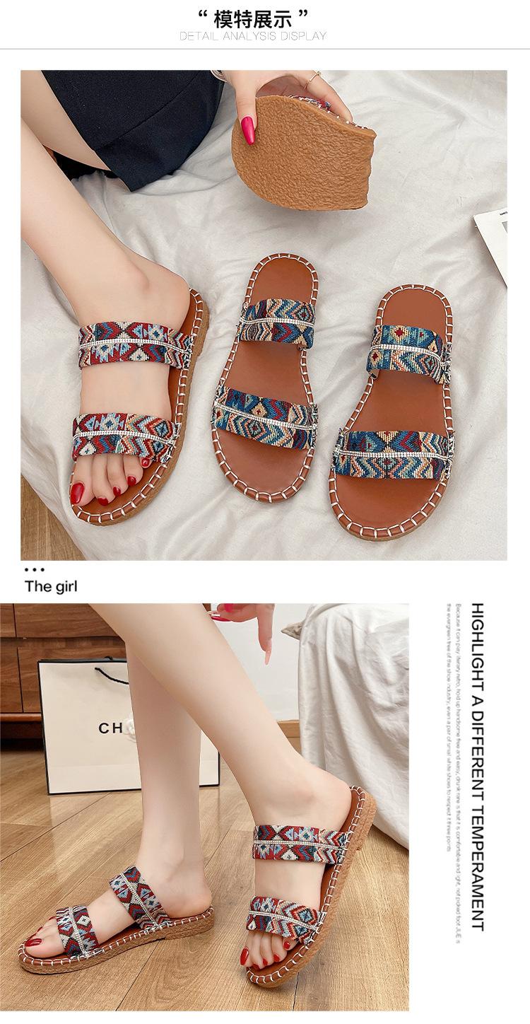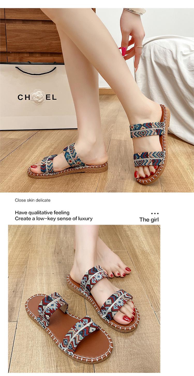 Nuevo Tamaño Grande Ropa Exterior Cómodas Sandalias de Playa de Suela Plana para Mujer Comercio Exterior Bohemias Simples de Doble Correa