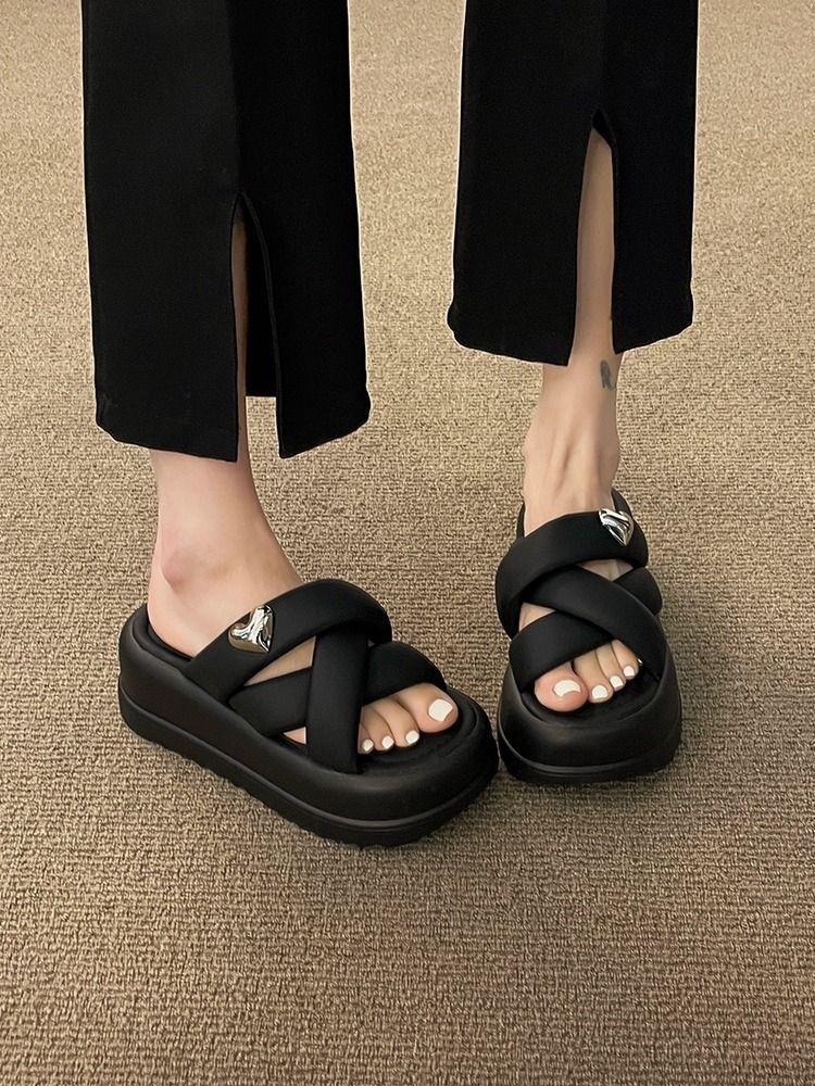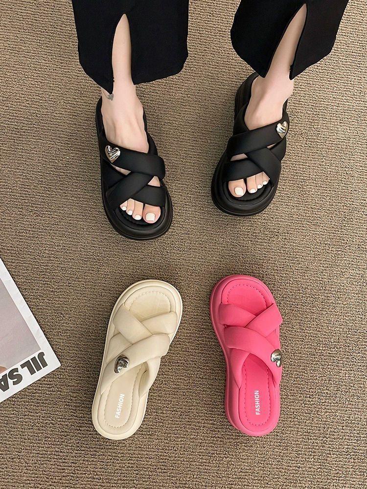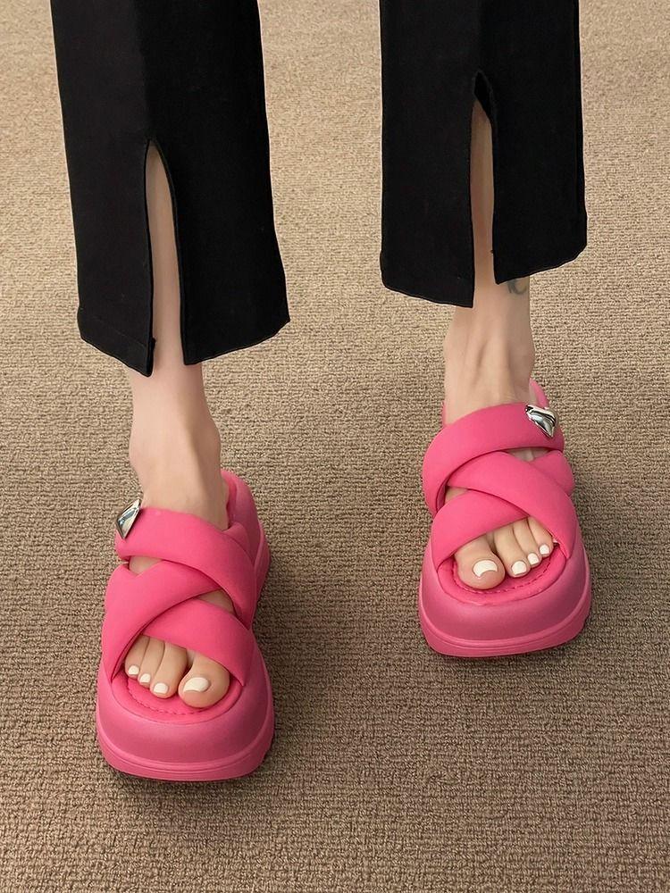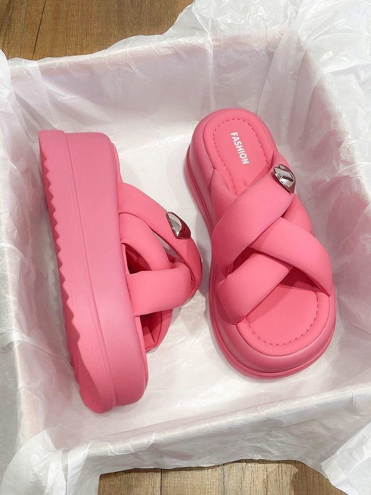 Pantuflas de Verano para Interior para Mujer, Uso Casual para Exterior con Suela Gruesa, Pantuflas Pequeñas Antideslizantes de Suela Suave que Aumentan la Altura