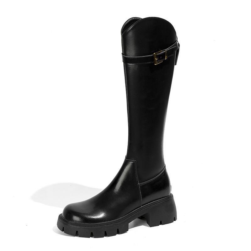 Botas Largas con Boca en V para Mujer Otoño e Invierno 2025 Forradas de Felpa Botas Altas de Suela Gruesa Botas de Caballero de Tacón Grueso para Mujer
