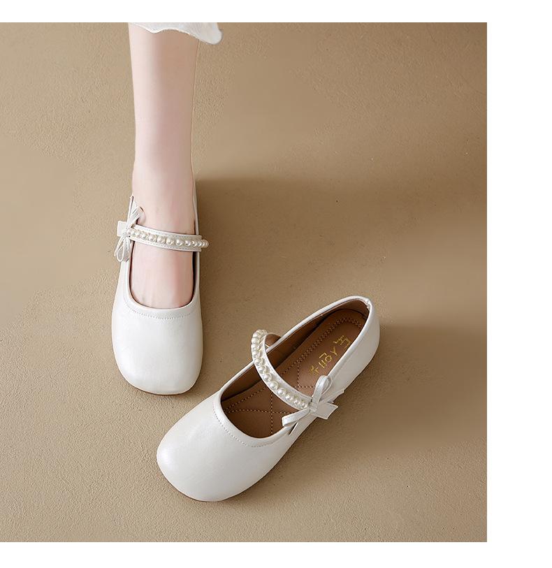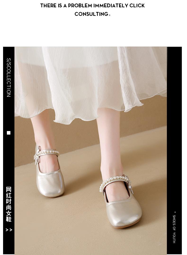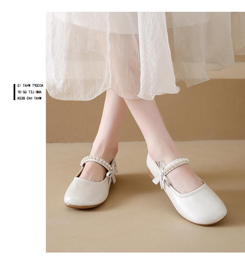 Zapatos Mary Jane de Perla Francesa de Hada para Mujer 2025 Verano Nuevo Estilo Mocasines Versátiles con Falda Flats de Estilo Suave