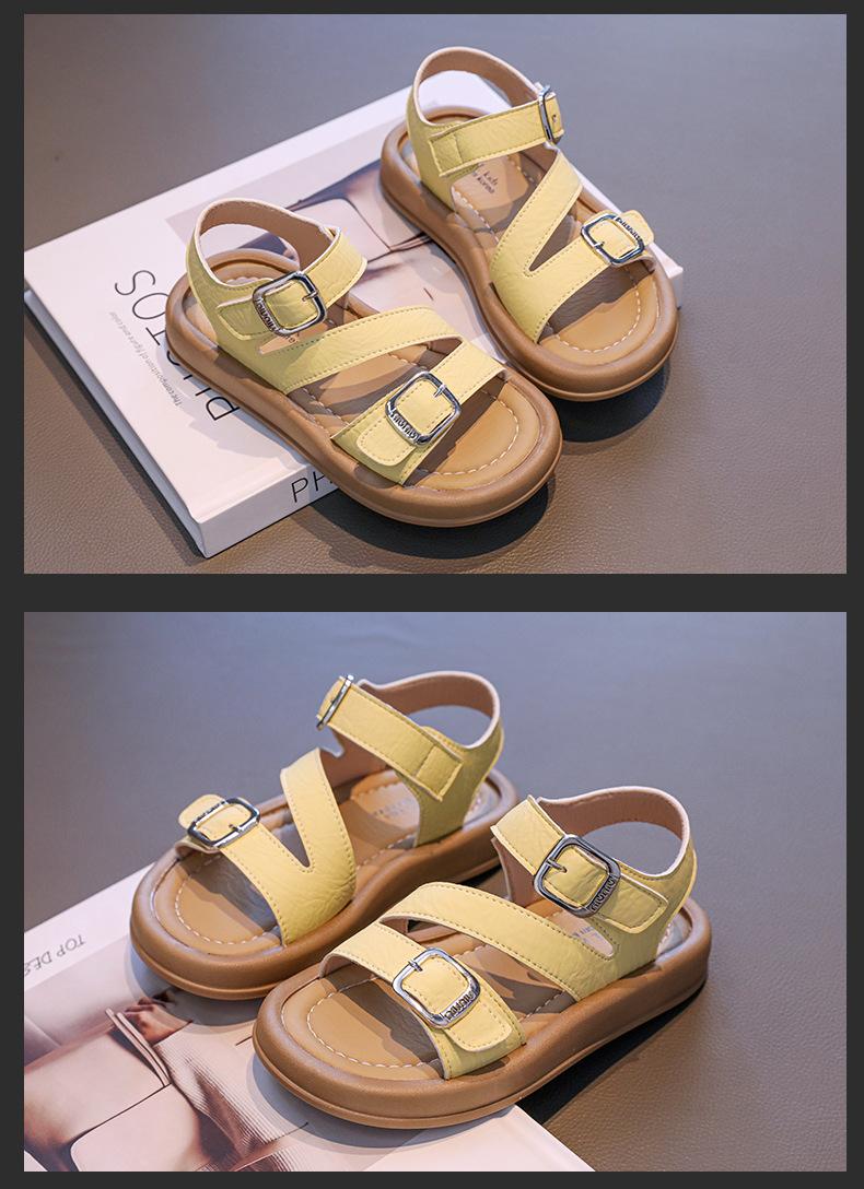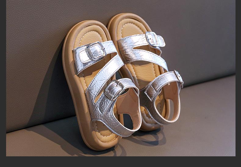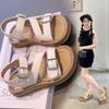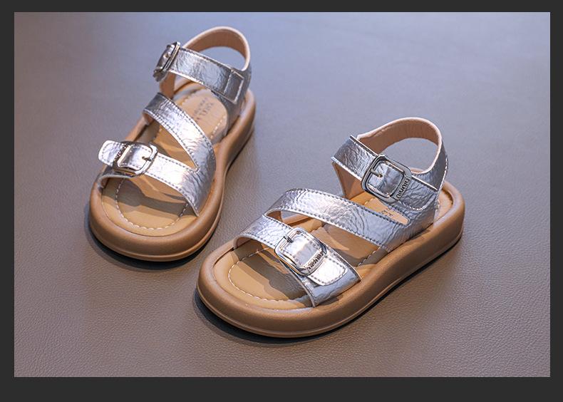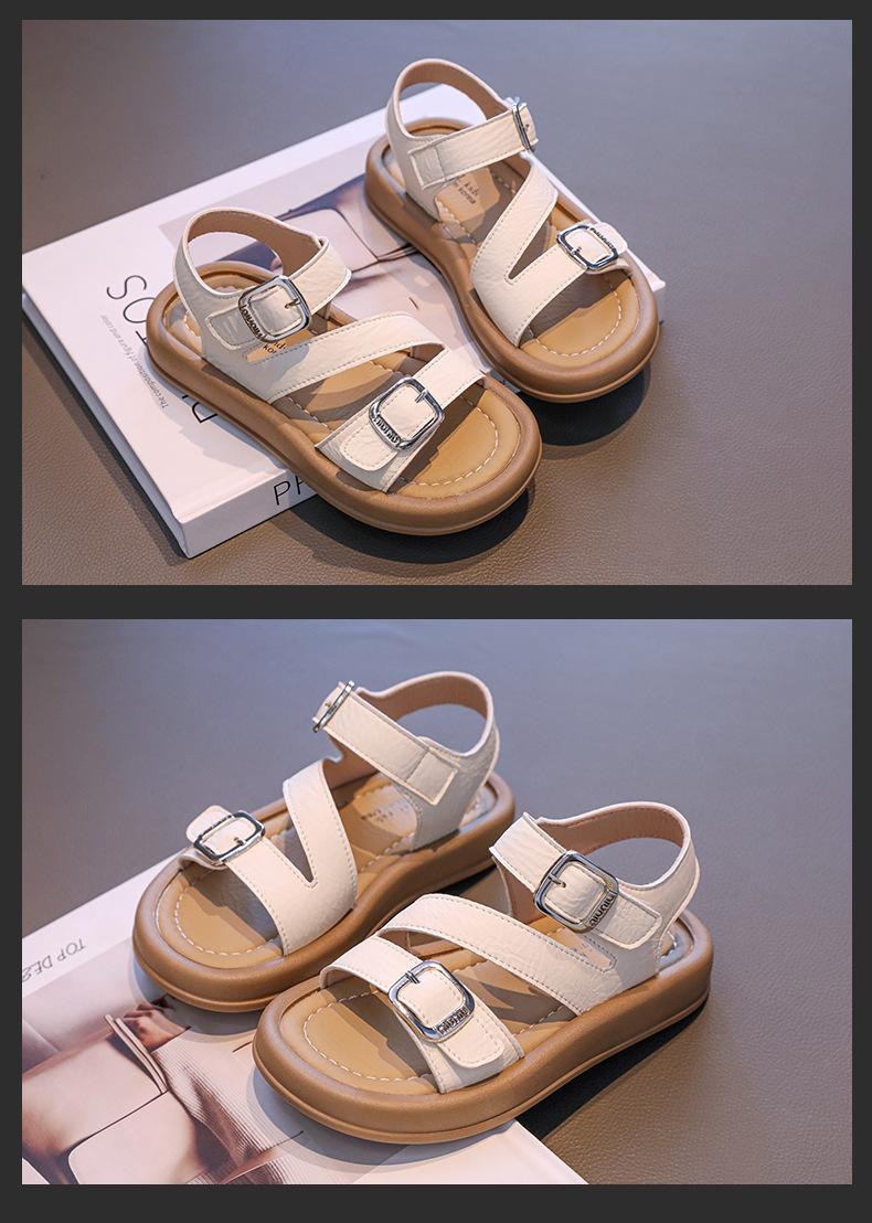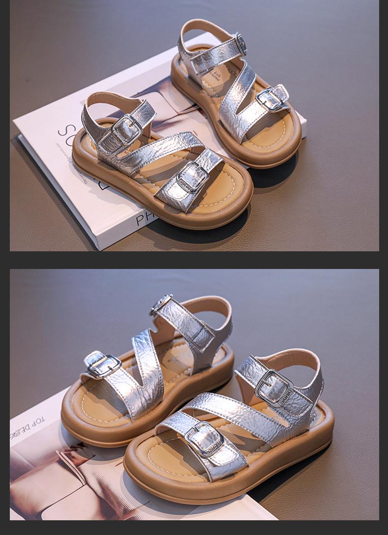 Zapatos Romanos para Niñas 2025 Verano Nuevos Zapatos de Princesa para Niñas Medianos y Grandes Suela Blanda Estampado a Cuadros Zapatos de Playa Sandalias para Niños