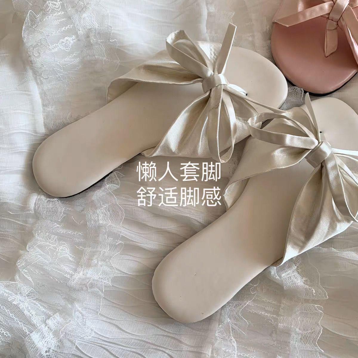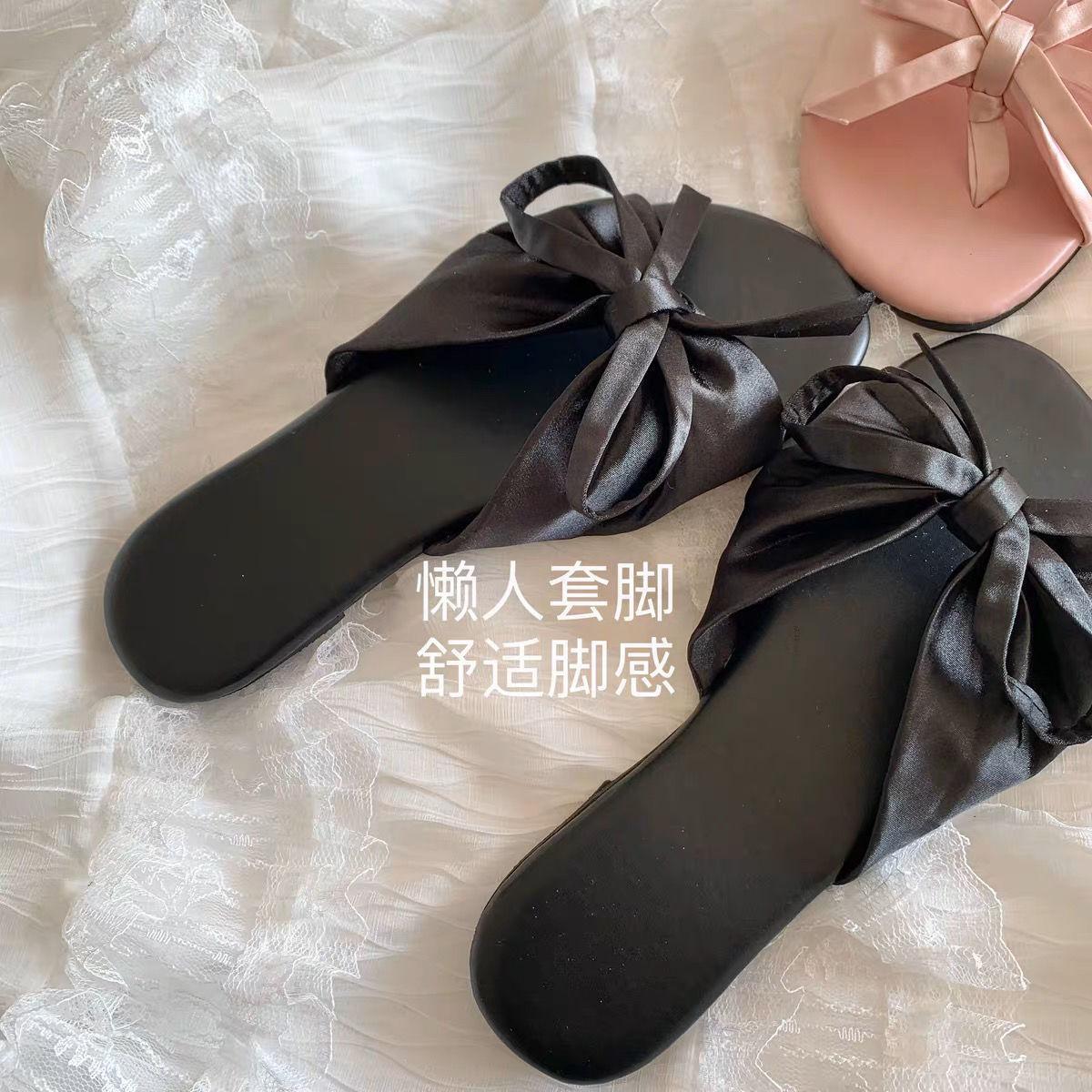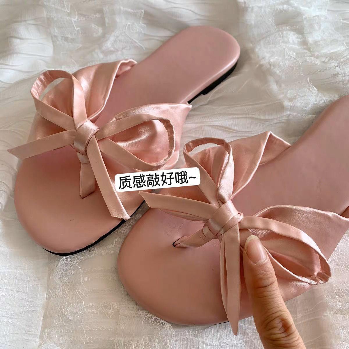 Sandalias Elegantes de Estilo Francés Lazy 2025 Nuevas para Exterior Suaves de Suela Plana con Lazo Sandalias de Playa de Punta Abierta