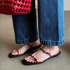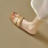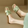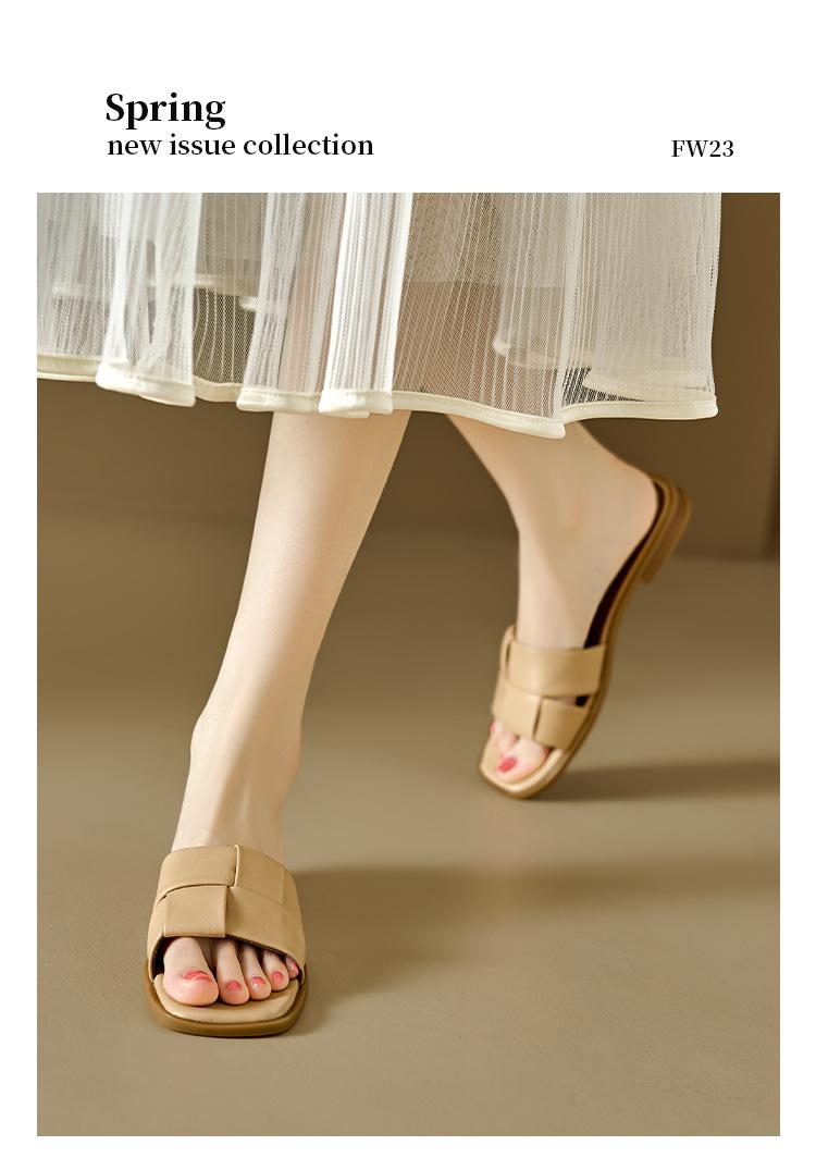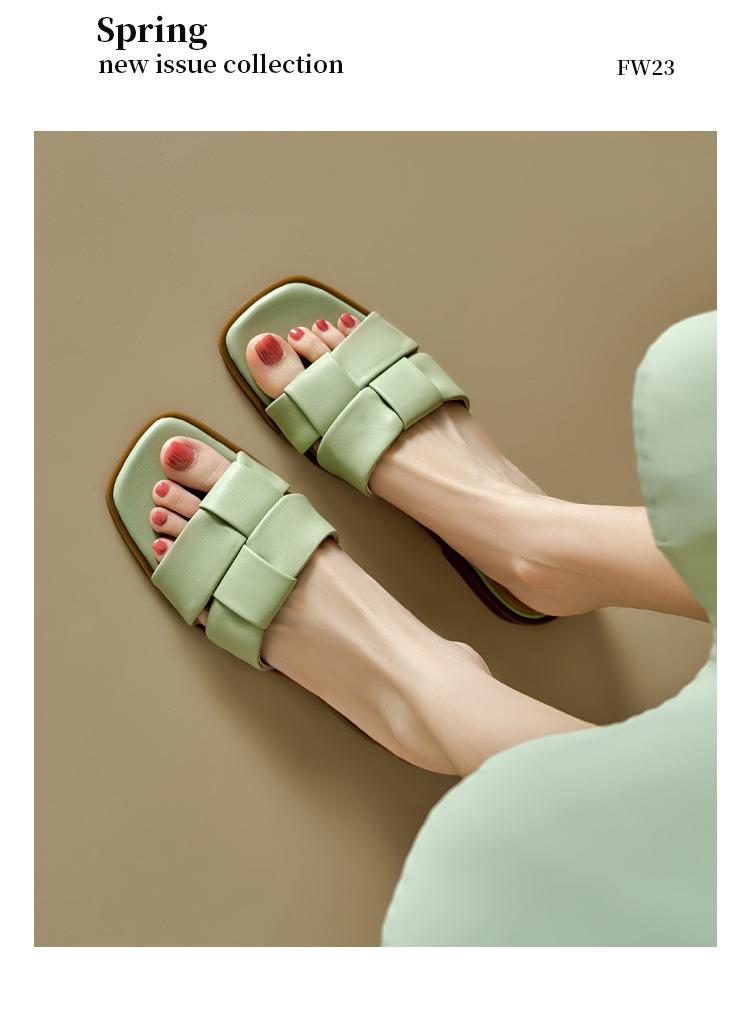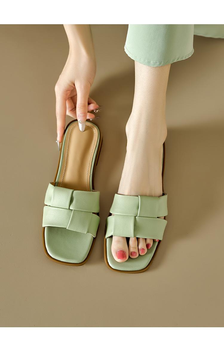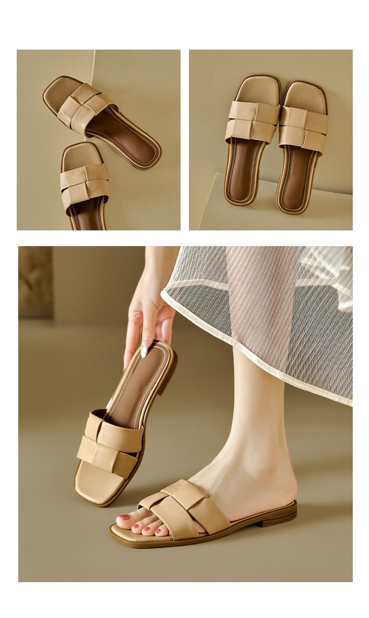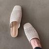 Pantuflas tejidas de lujo ligero estilo francés con punta abierta para mujer 2025 Nuevas sandalias planas de verano de punta cuadrada para estar en casa