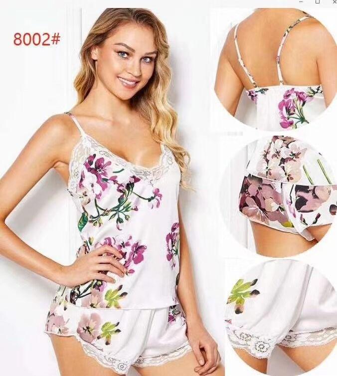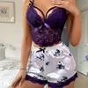 Ropa Interior Sexy Europa y América Explosiones Sexy Encaje Sling Estampado Encaje Shorts Ropa para el Hogar de Mujer Set de Dos Piezas Lote de Origen
