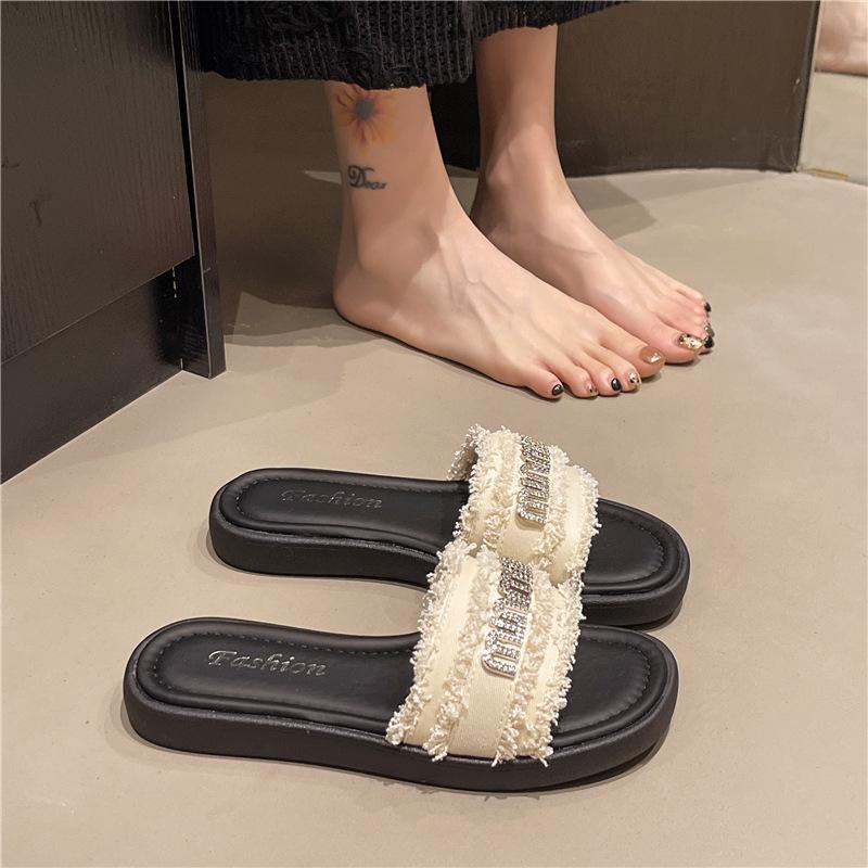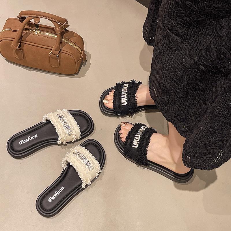 Sandalias planas de playa de vacaciones de estilo francés para mujer, Zapatillas de playa nuevas de verano 2025, Sandalias casuales sin cordones