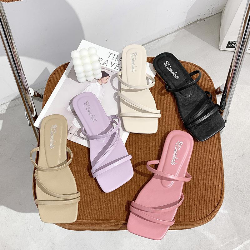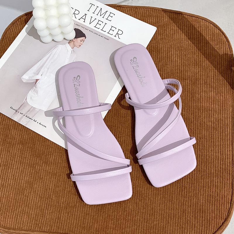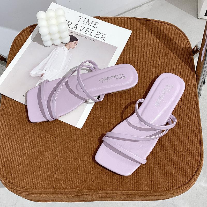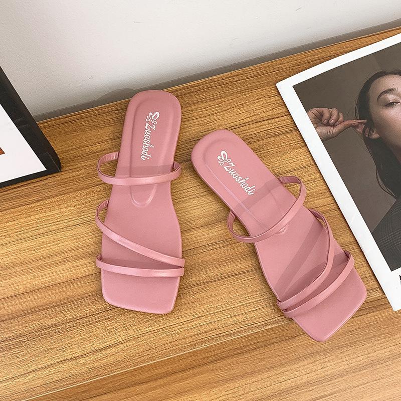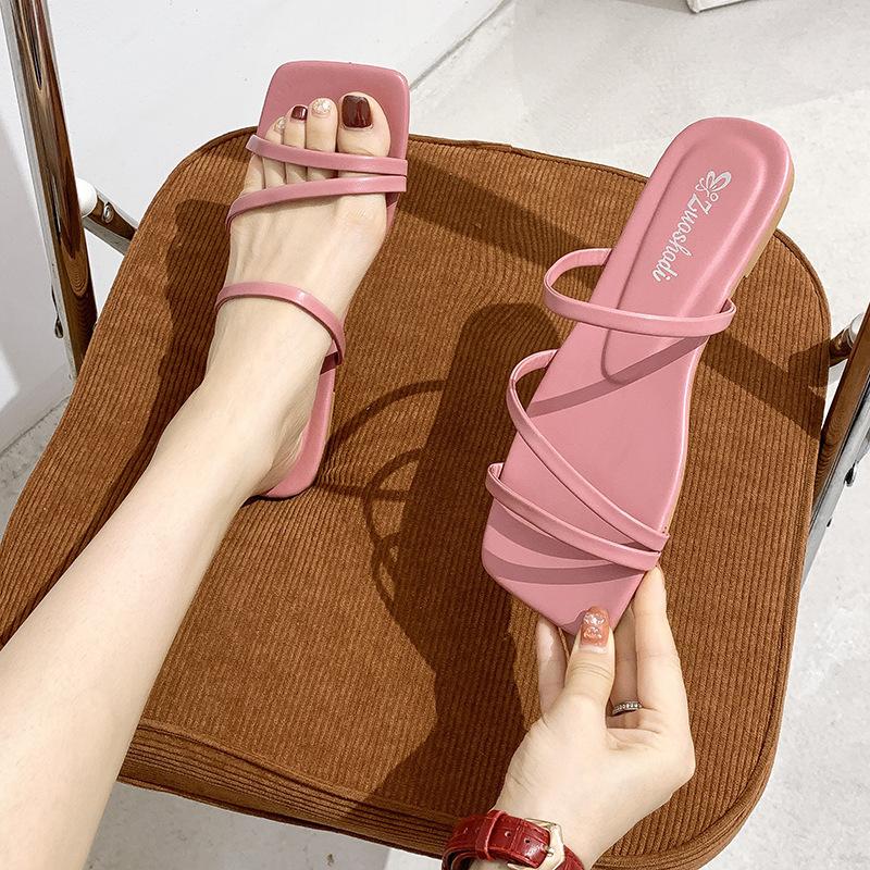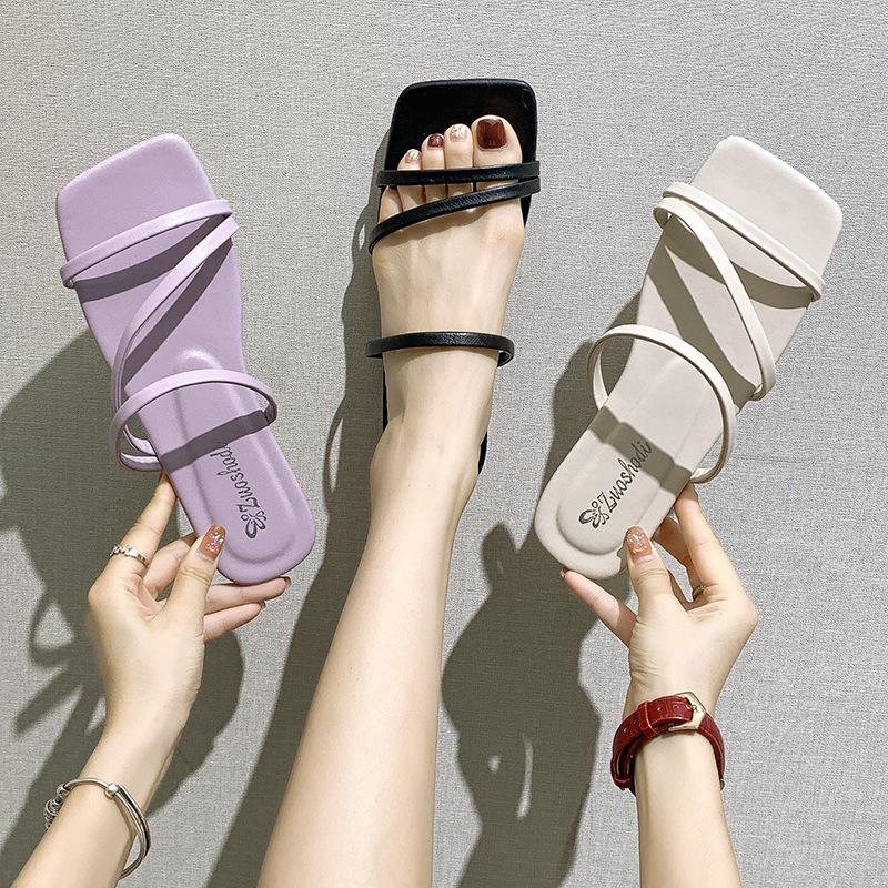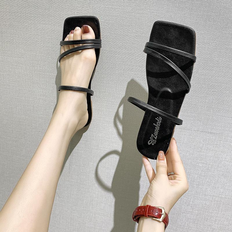 2025 Nuevo Estilo de Verano Estilo Hada Chanclas de Tira Fina de Una Línea Chanclas Casuales de Playa Sandalias para Mujer Planas para Exterior