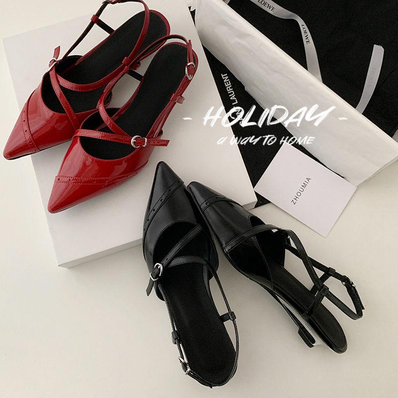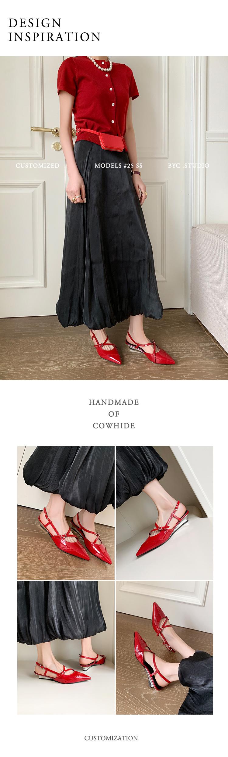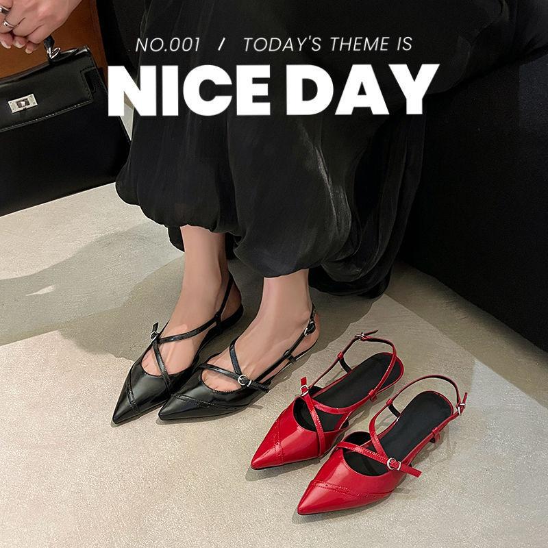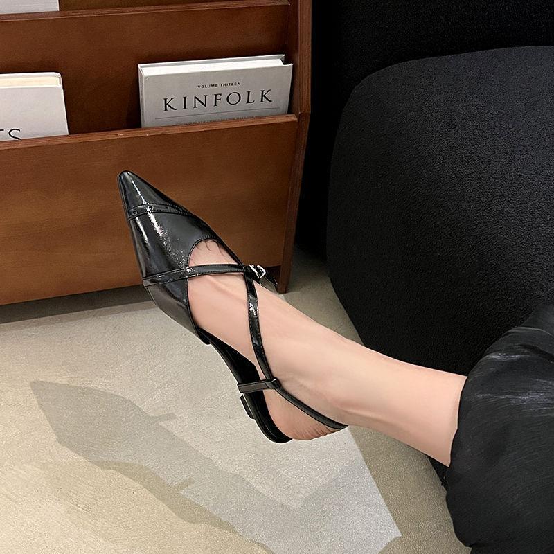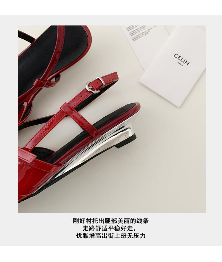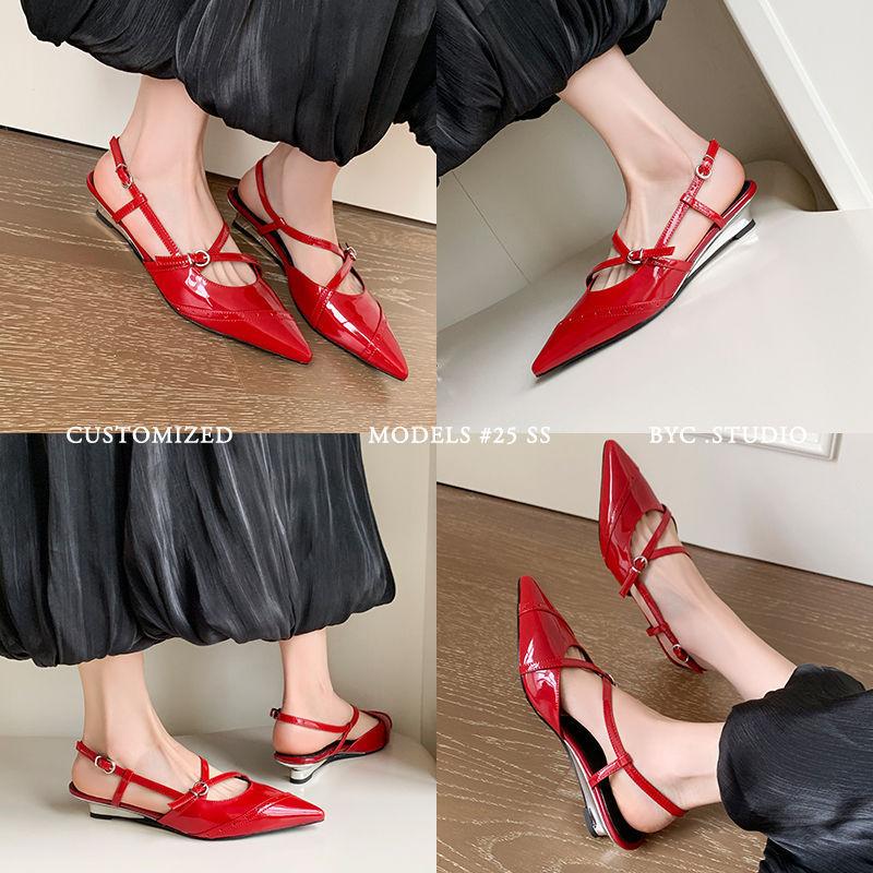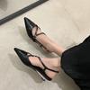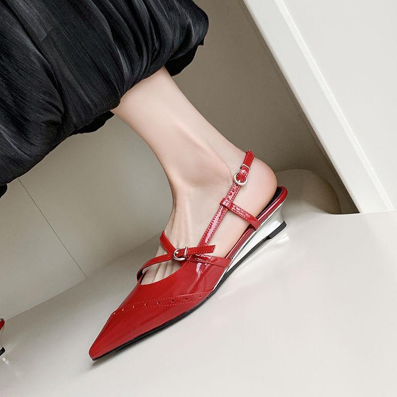 Zapatos de Tacón de Cuña de Punta Nueva Primavera 2025 para Mujer Diseño Nicho Sentido Negro Sandalias de Mujer Combinables