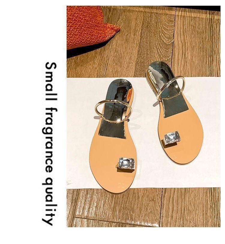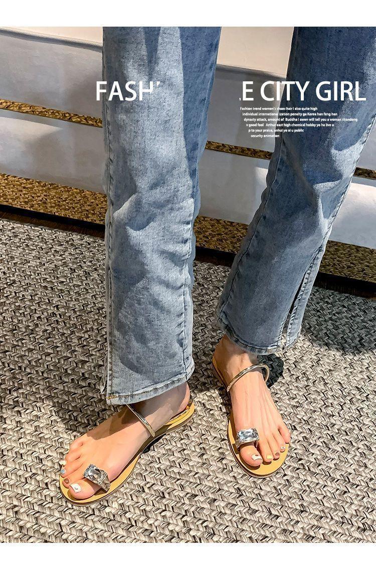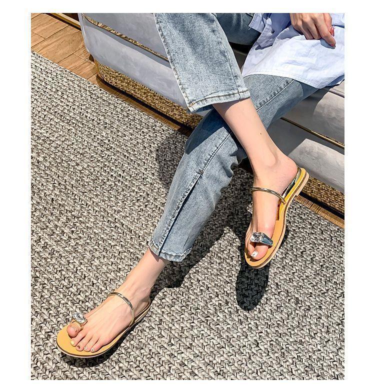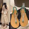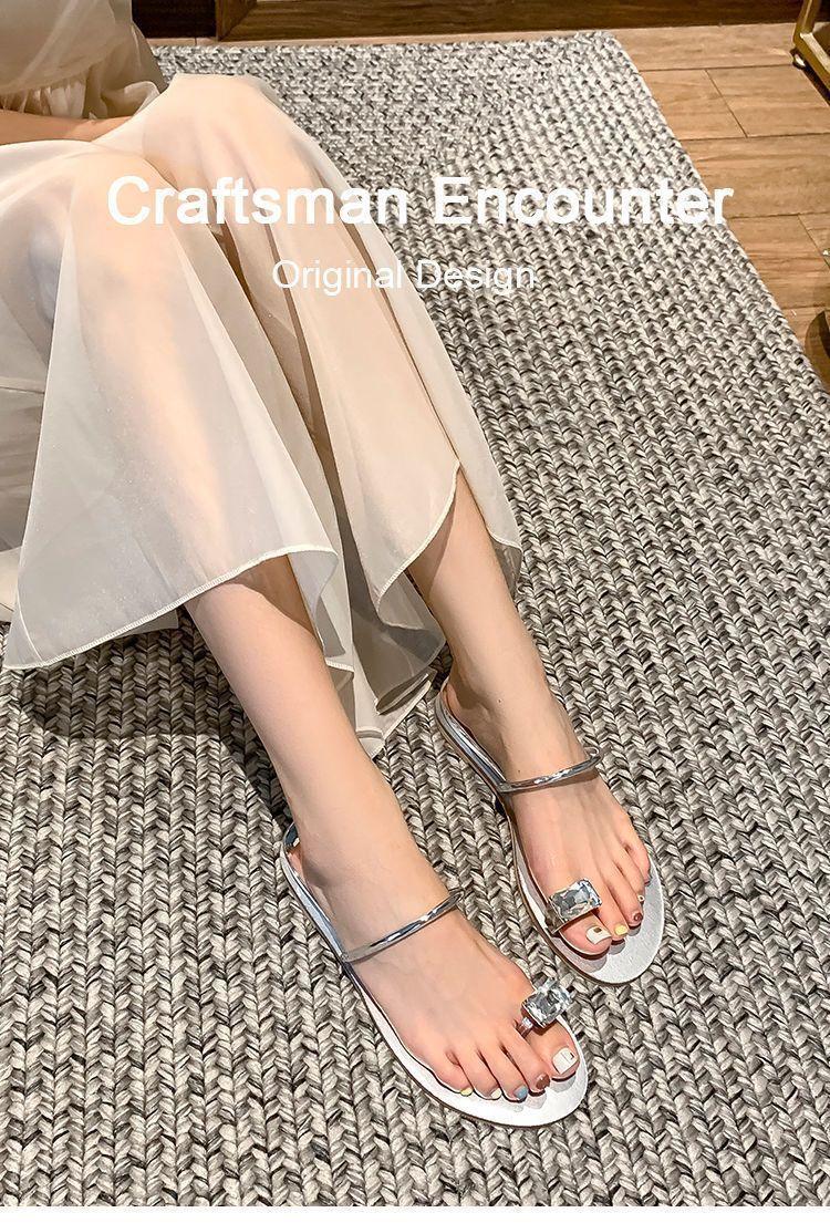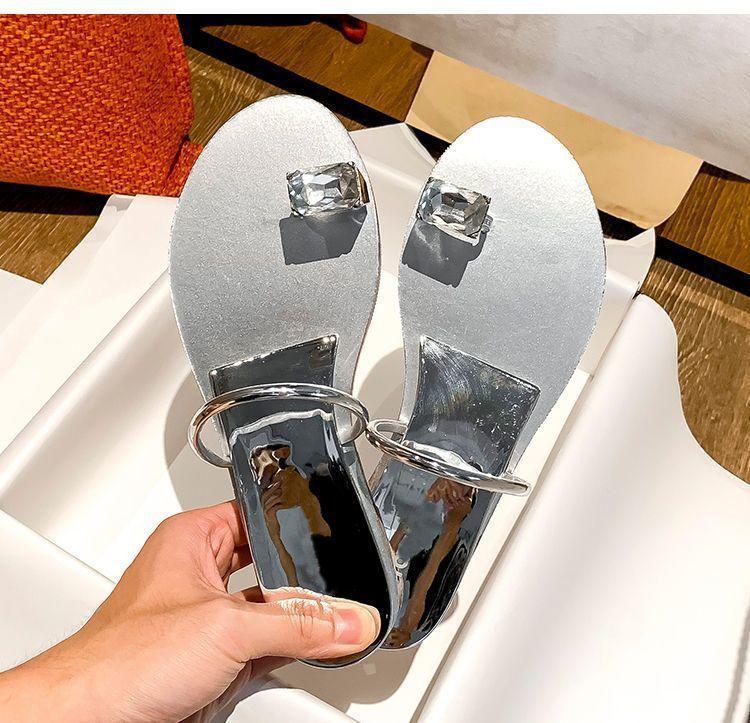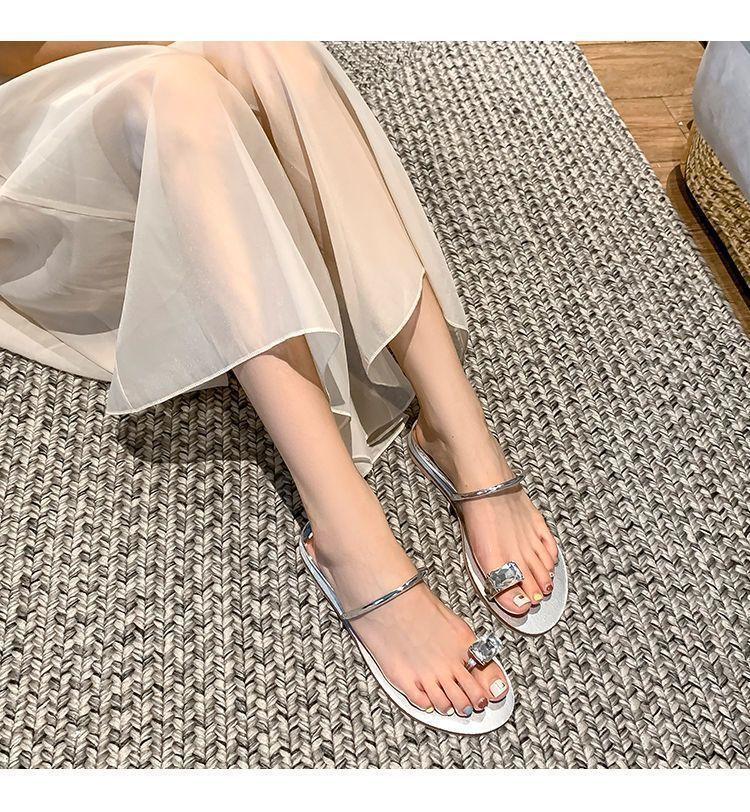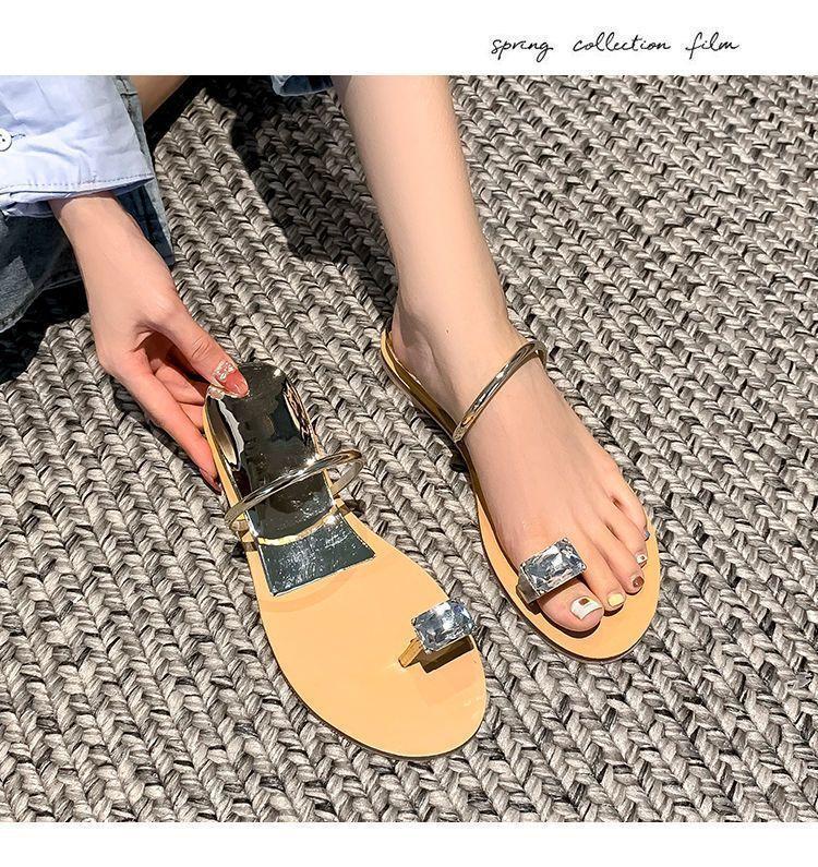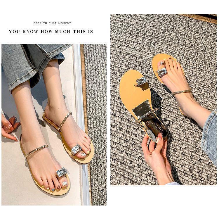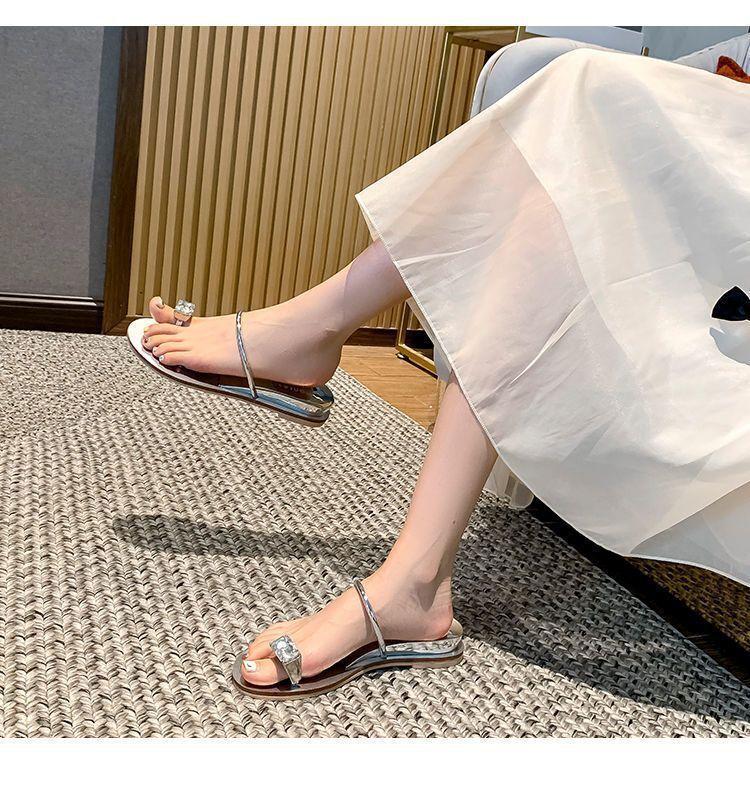 Sandalias Huevo de Paloma con Pedrería para Mujer 2023 Verano Nuevas Chanclas Planas para Mujer para Usar Sandalias de Tanga de Moda con Aumento Interior