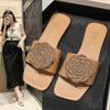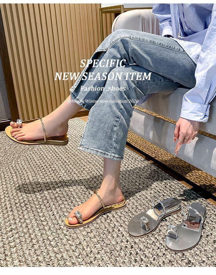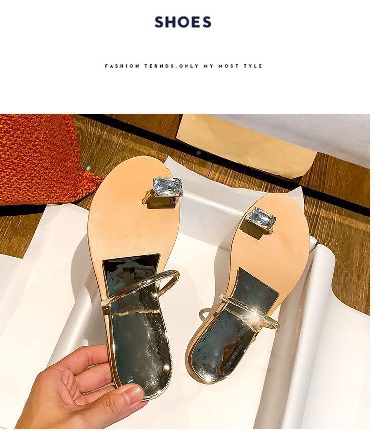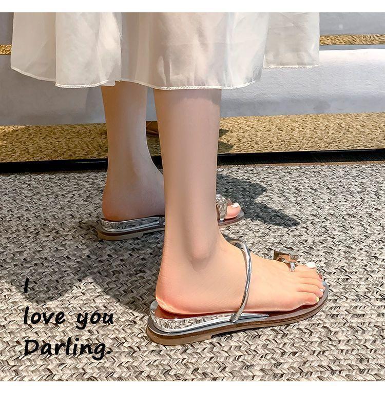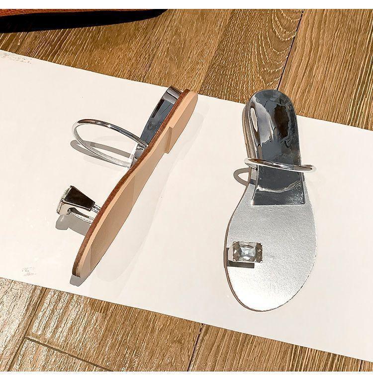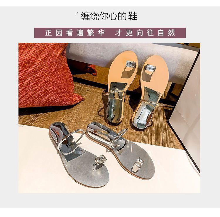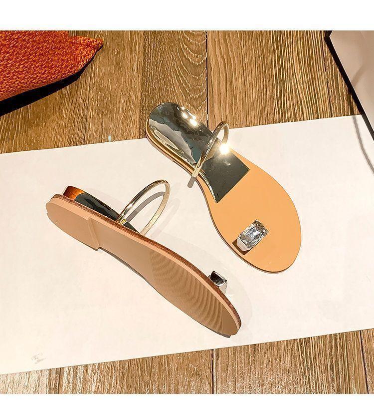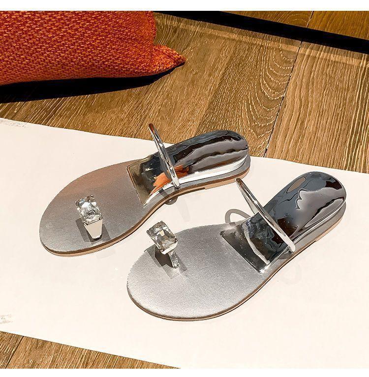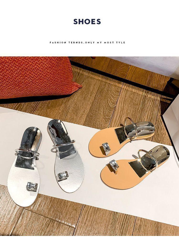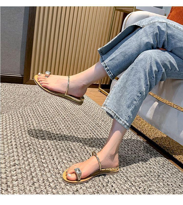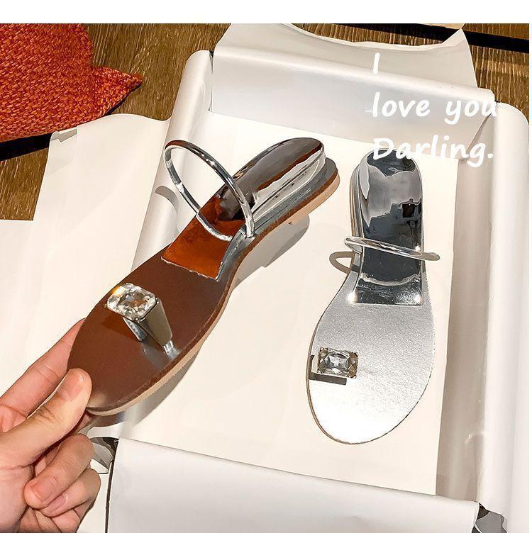 Sandalias Huevo de Paloma con Pedrería para Mujer 2023 Verano Nuevas Chanclas Planas para Mujer para Usar Sandalias de Tanga de Moda con Aumento Interior