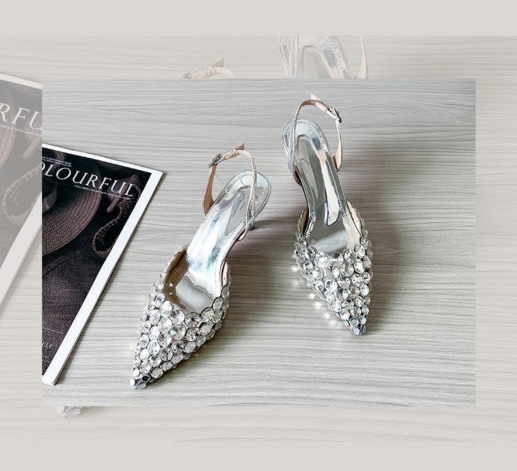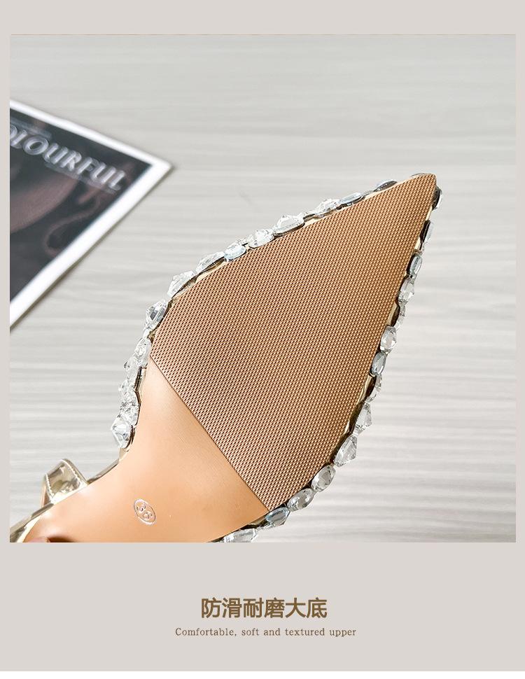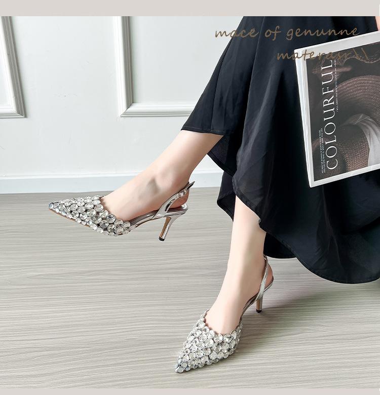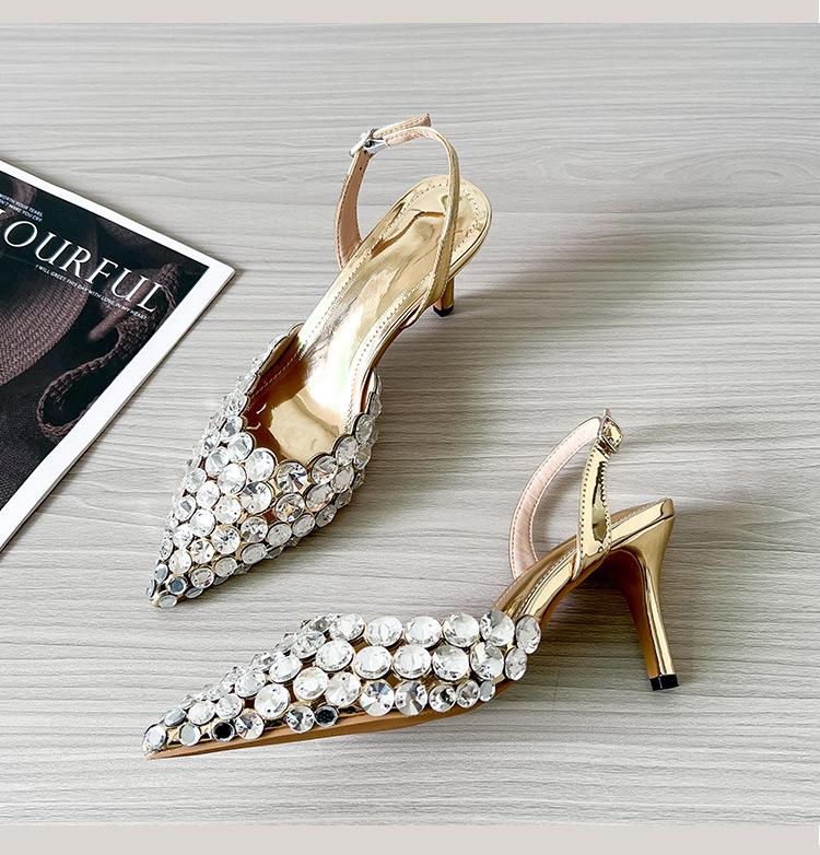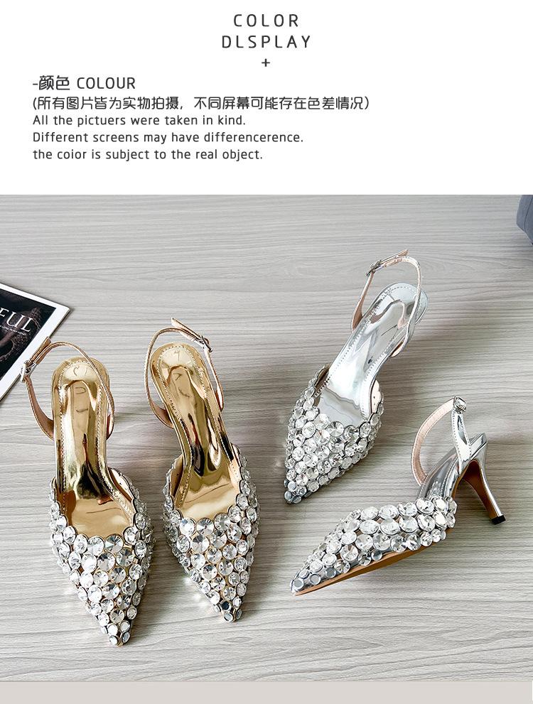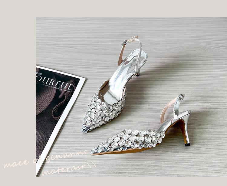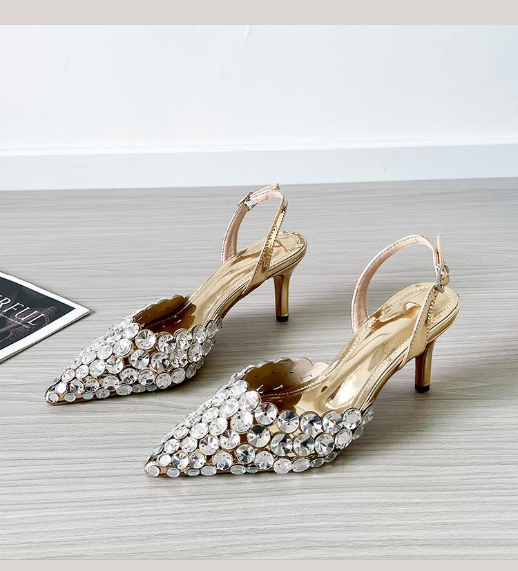 Moda Versátil Transfronteriza de Medio Oriente Verano Nuevo Estilo Zapatos de Tacón de Aguja Baotou Sandalias Sexy de Punta con Pedrería Zapatos de Mujer Franceses