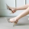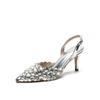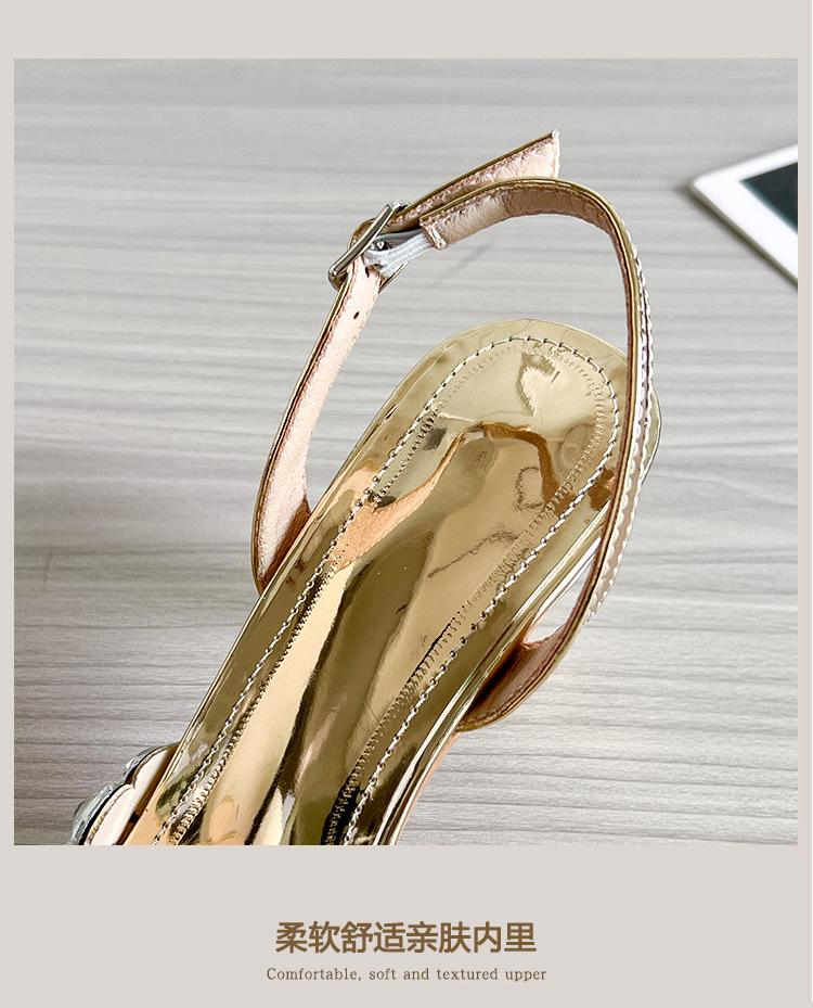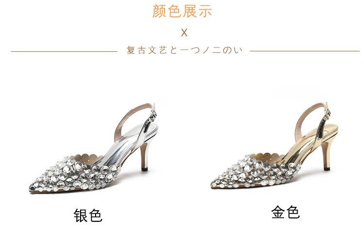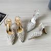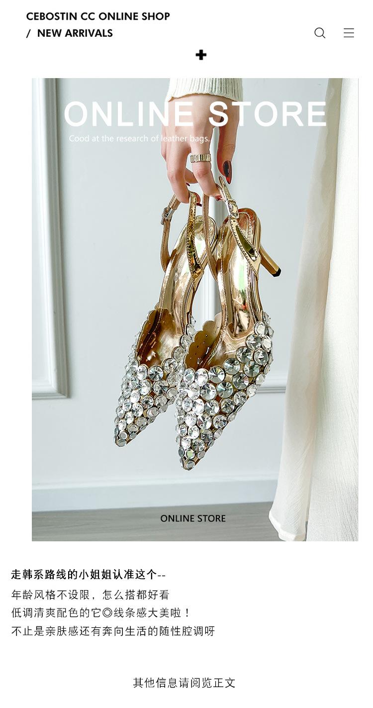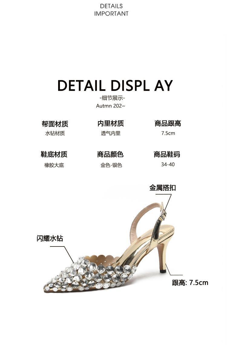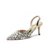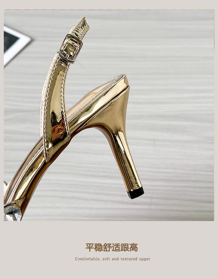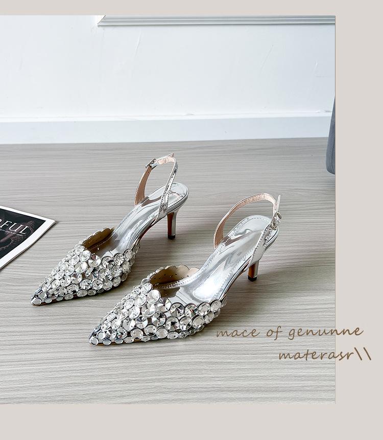 Moda Versátil Transfronteriza de Medio Oriente Verano Nuevo Estilo Zapatos de Tacón de Aguja Baotou Sandalias Sexy de Punta con Pedrería Zapatos de Mujer Franceses