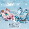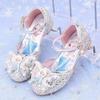 Zapatos de Tacón Alto para Niñas Nuevos Primavera y Otoño Zapatos de Princesa Elsa Sandalias para Niños Zapatos de Cristal de Cenicienta Zapatos Azules de Frozen