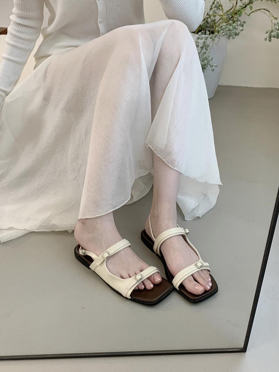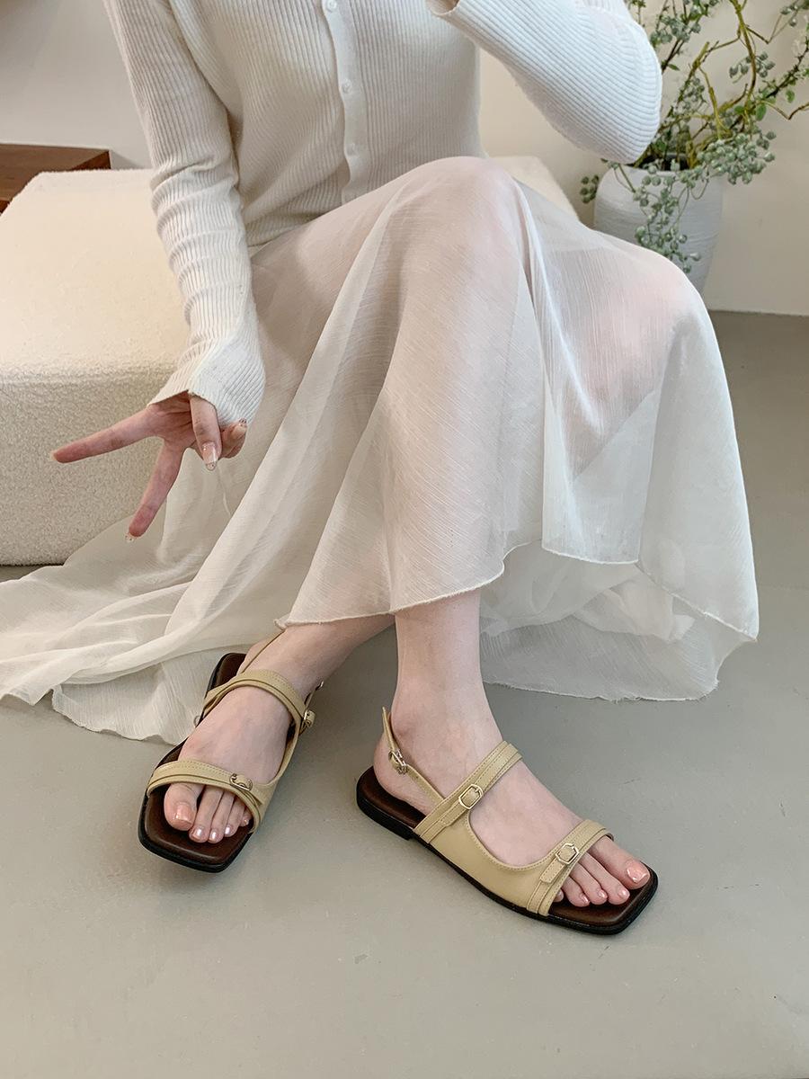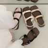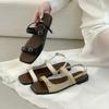 Sandalias planas cómodas para verano para mujer, nuevo estilo francés, hermoso estilo de hada con falda, para viaje, junto al mar, zapatos romanos