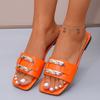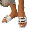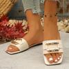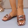 Pantuflas para Mujer para Usar Afuera 2024 Nuevo Exportación Punta Cuadrada Flats Hebilla Metálica Una Línea Sandalias Casuales de Playa para Mujer