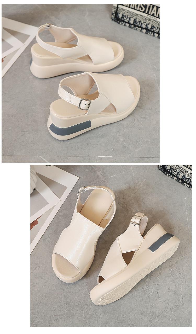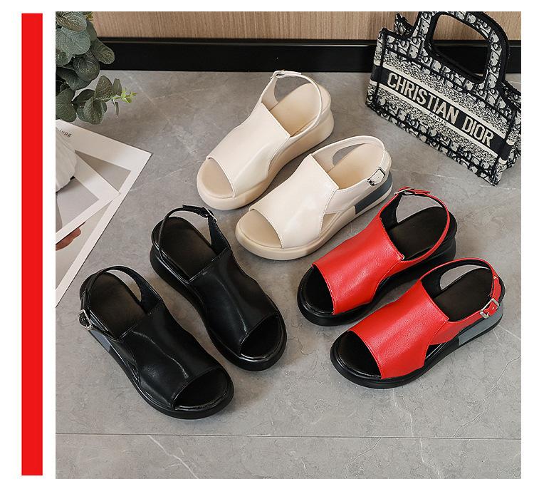 2025 Nuevos Zapatos de Verano de Tacón Alto con Boca de Pez para Mujer Zapatos de Plataforma Elevadora de Cuero Suave Sandalias de Cuña de Suela Gruesa para Mujer