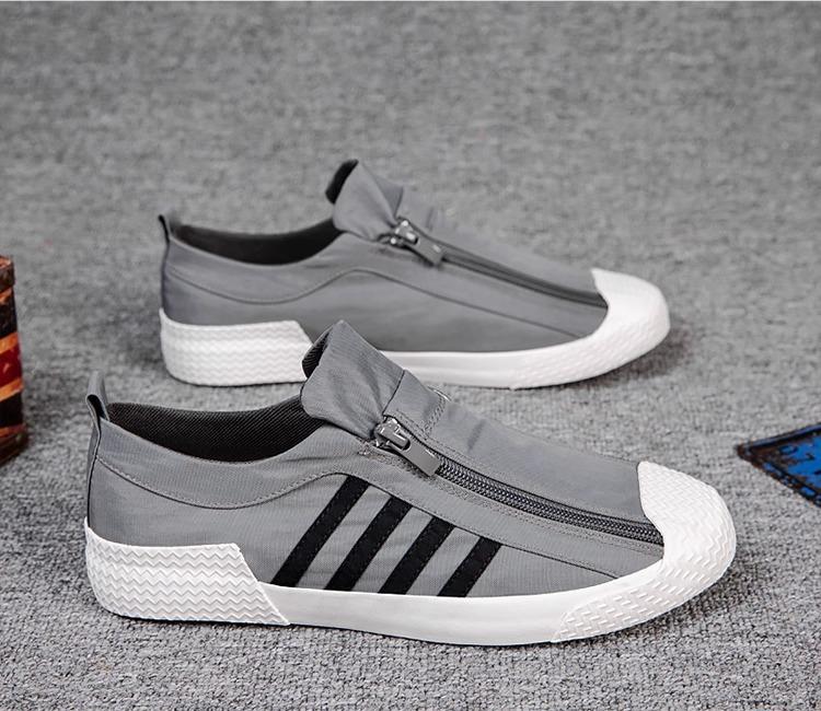 Tenis Casuales de Primavera Nuevos 2025 Zapatos de Hombre Modernos de Caña Baja Zapatos Blancos Cremallera Zapatos de Lona Versión Coreana Modernos Versátiles