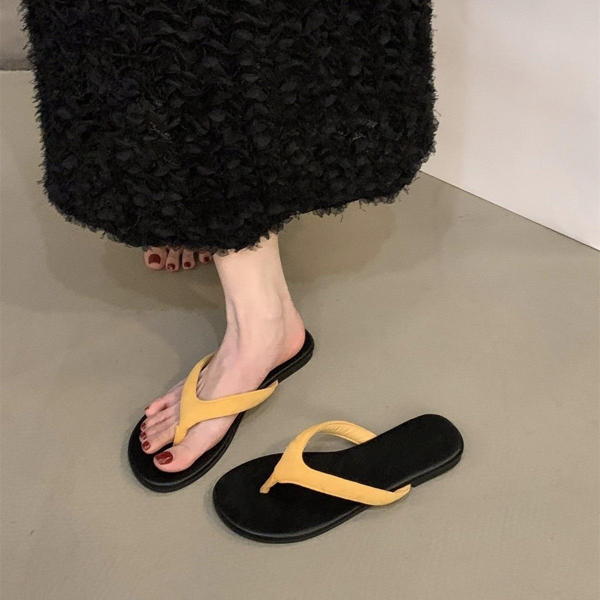 Chanclas planas Zapatos de mujer 2025 Nuevo verano Ropa exterior Playa junto al mar Sandalias francesas pequeñas
